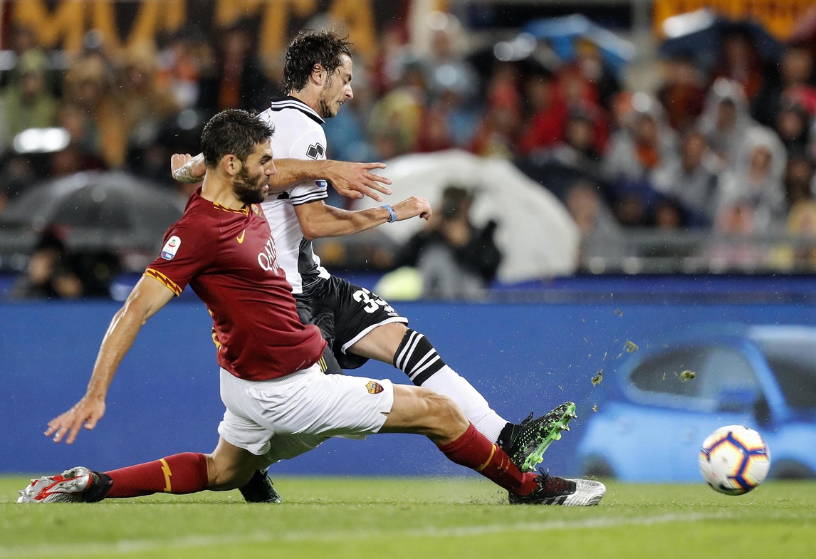 Pellegrini-Perotti, gol e festeggiamenti con De Rossi