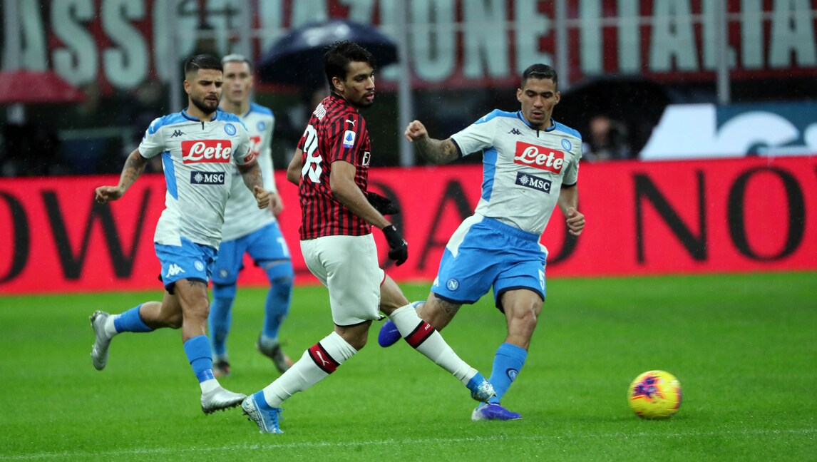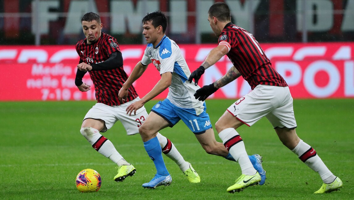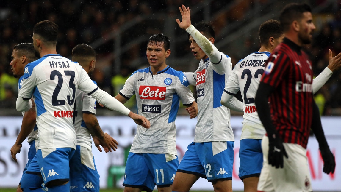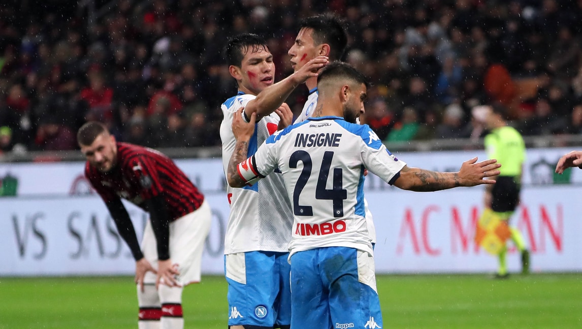 Succede tutto nel primo tempo, gli azzurri passano in vantaggio con la rete di Lozano ma i rossoneri rispondono cinque minuti dopo con il definitivo pari di Bonaventura. Tanti i cori della tifoseria di casa nei confronti del loro ex allenatore che ha risposto salutando con il braccio