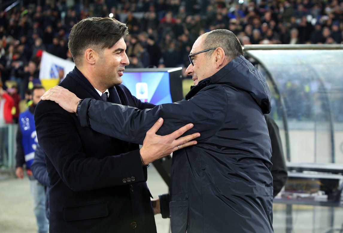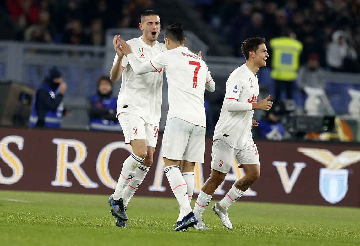 Gol ed esultanza con il bosniaco per l'attaccante portoghese, a segno nella vittoria (1-2) dei bianconeri sul campo dei giallorossi
