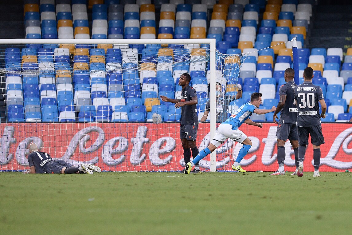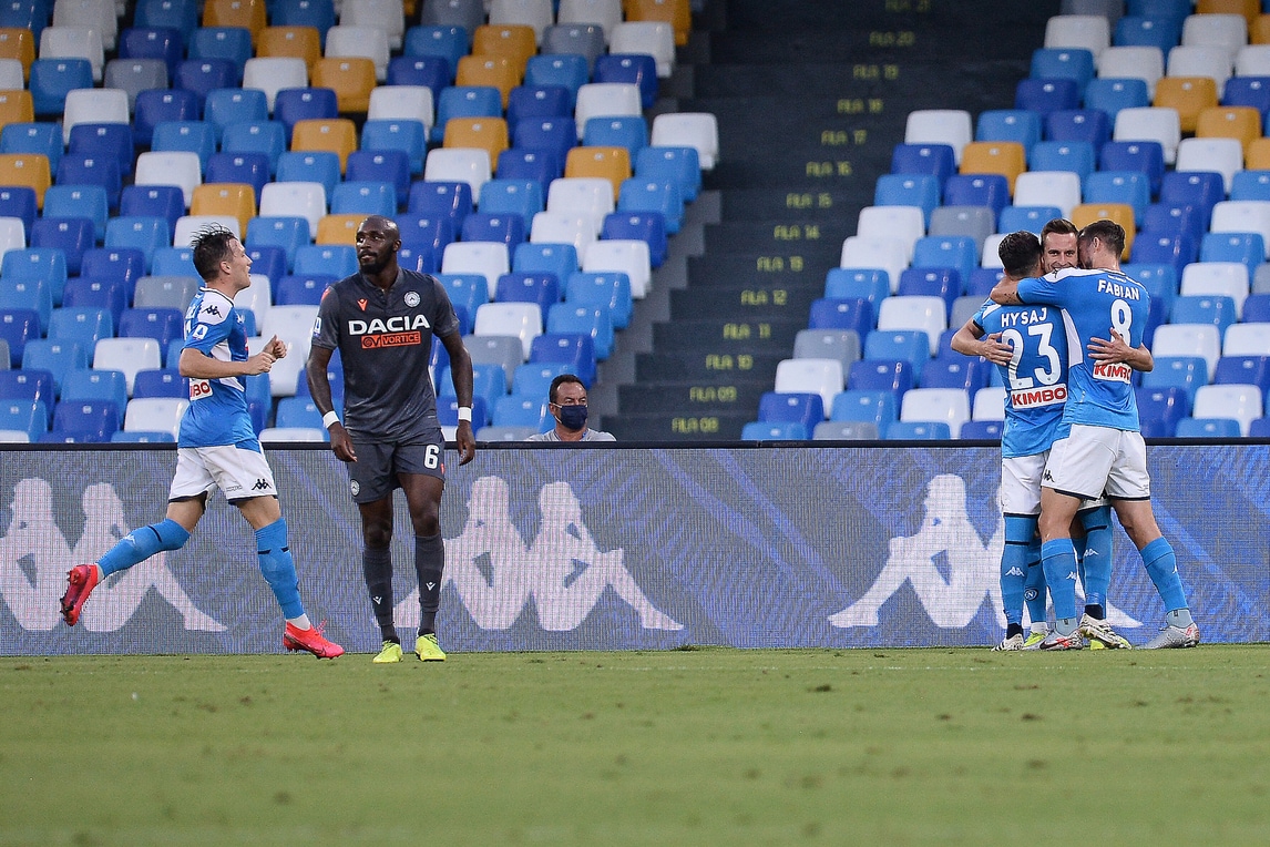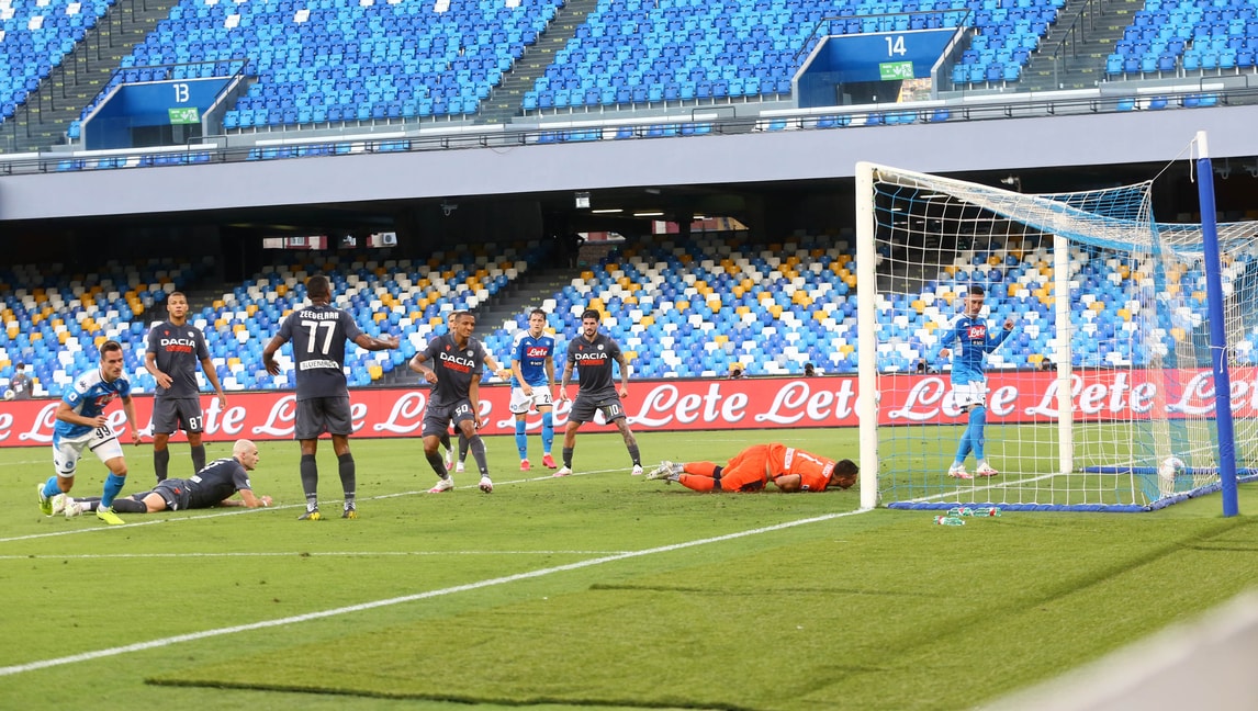 Al San Paolo finisce 2-1 con l'Udinese, decide l'ex Inter nel recupero dopo il vantaggio di De Paul e il pari di Milik
