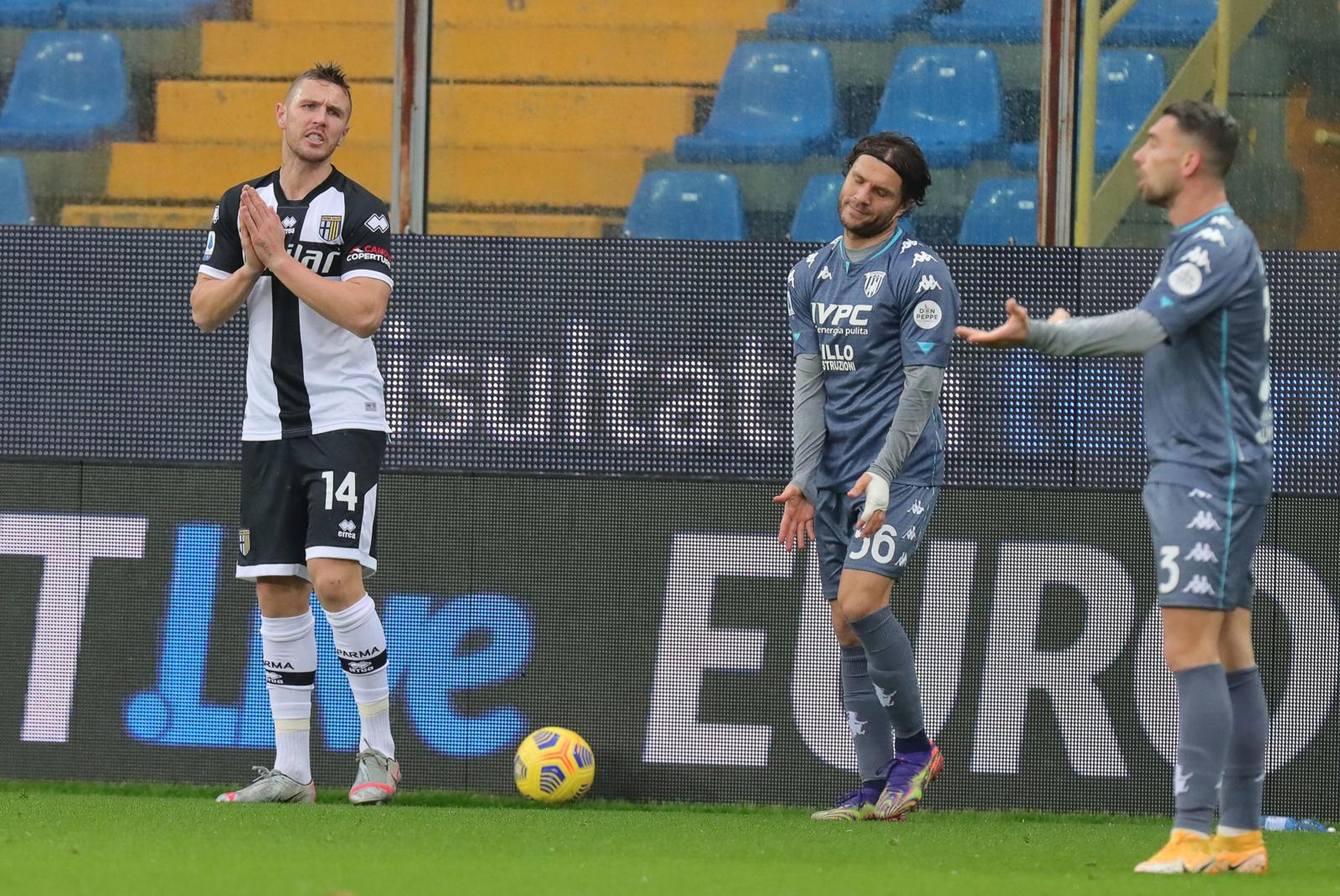 Le foto del pareggio del Tardini, con le due squadre ben messe in campo dai tecnici che si annullano a vicenda e si dividono la posta in palio