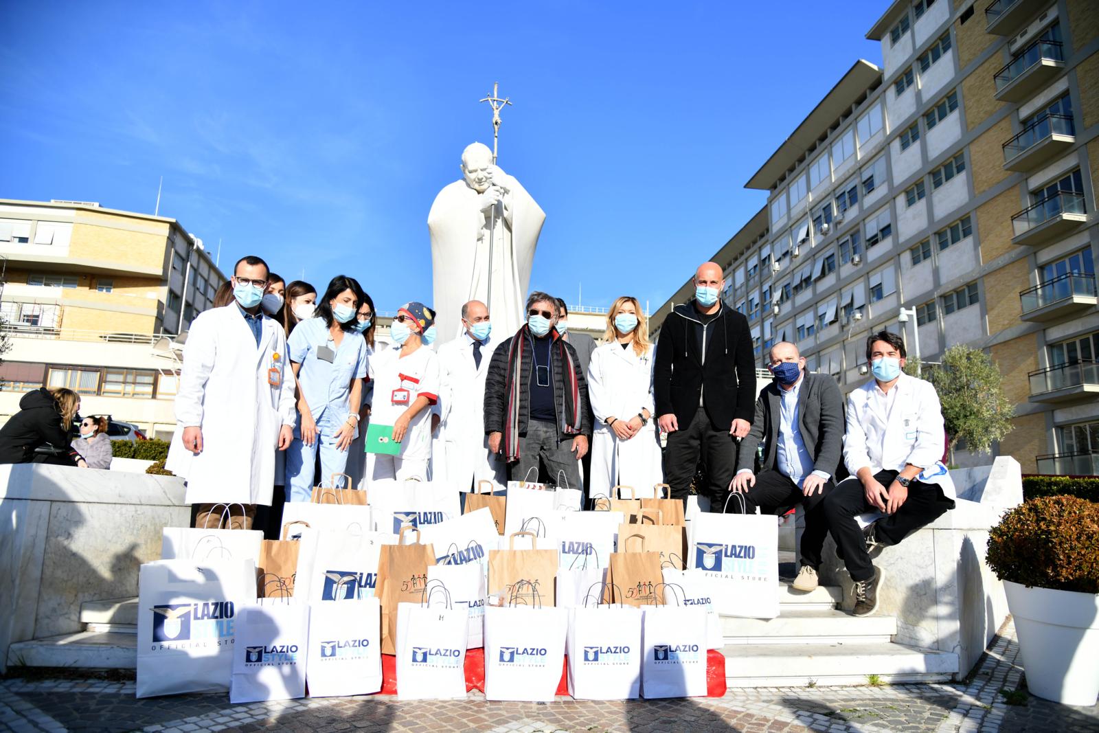 L'iniziativa del club biancoceleste va avanti da anni: doni per i piccoli del Gemelli e Umberto I di Roma