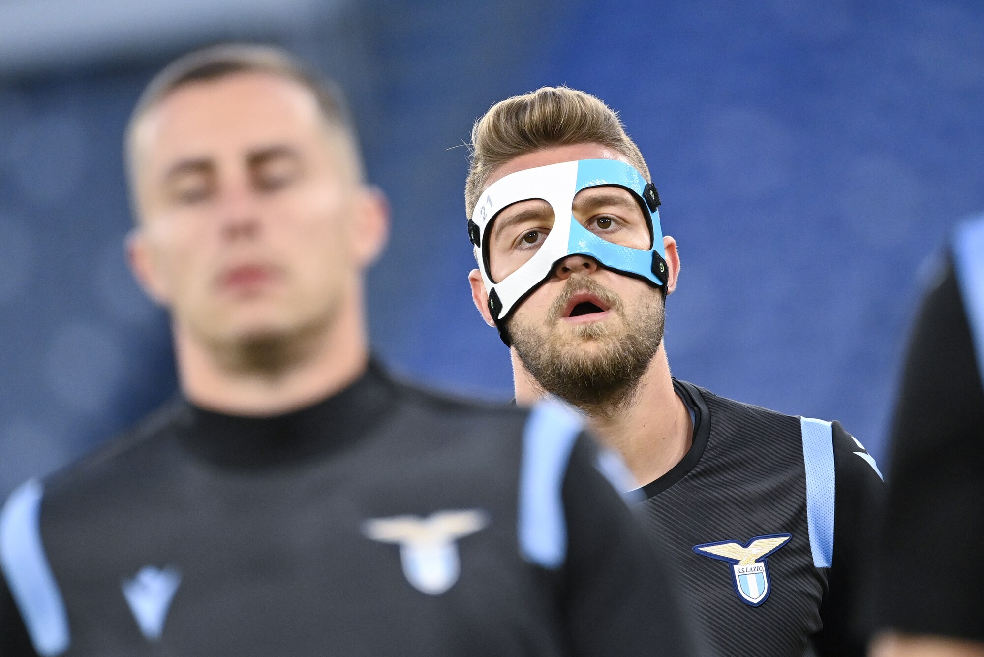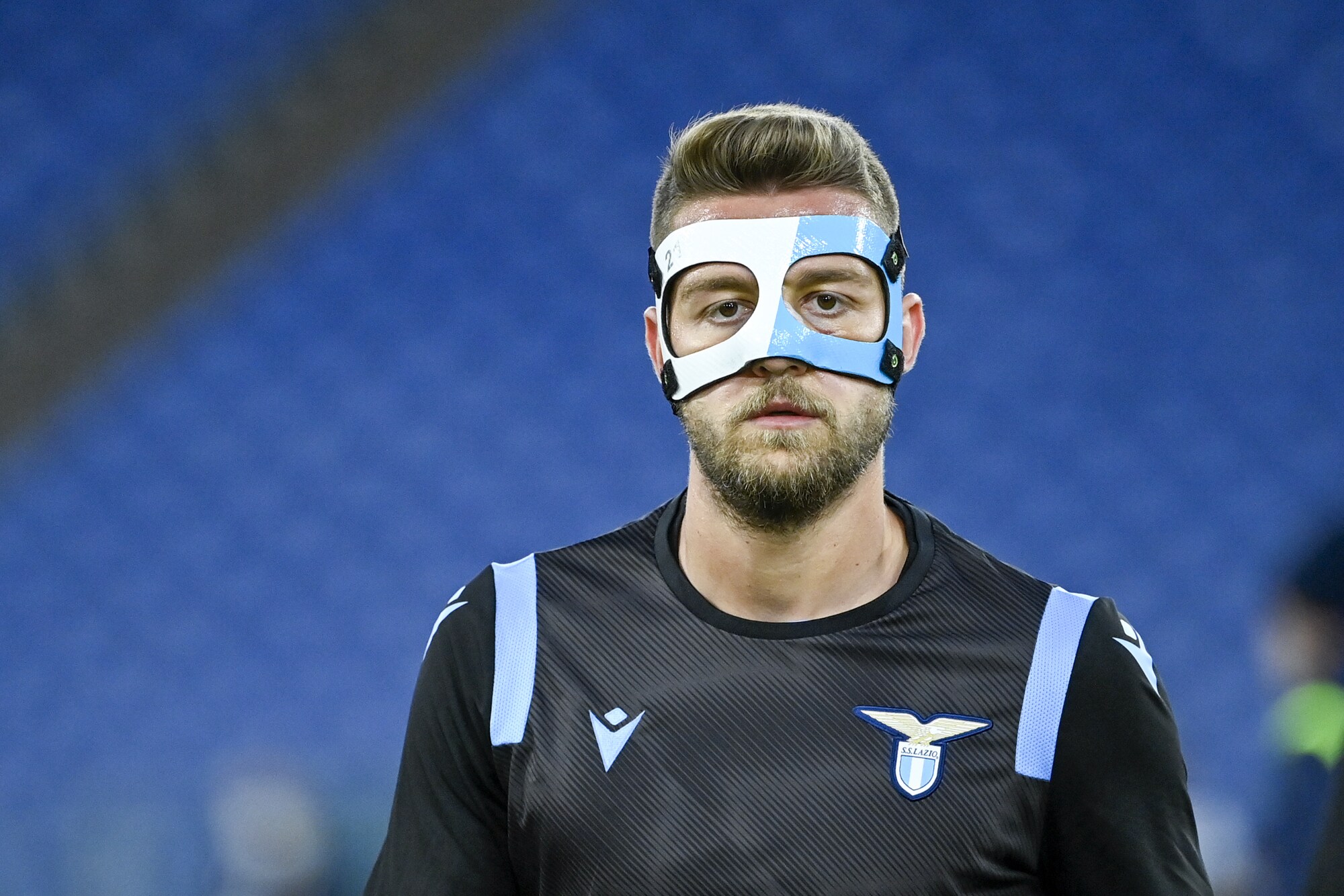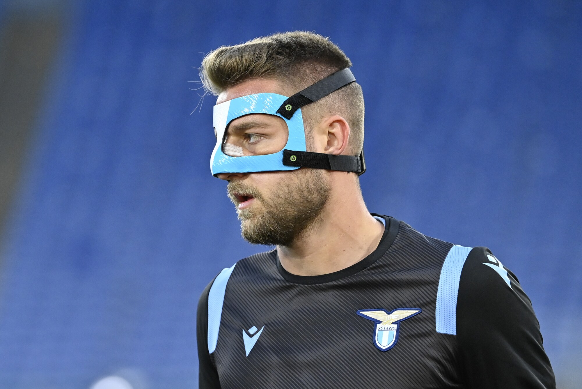 Il Sergente della Lazio, operato al setto nasale, va in campo con una protezione biancoceleste