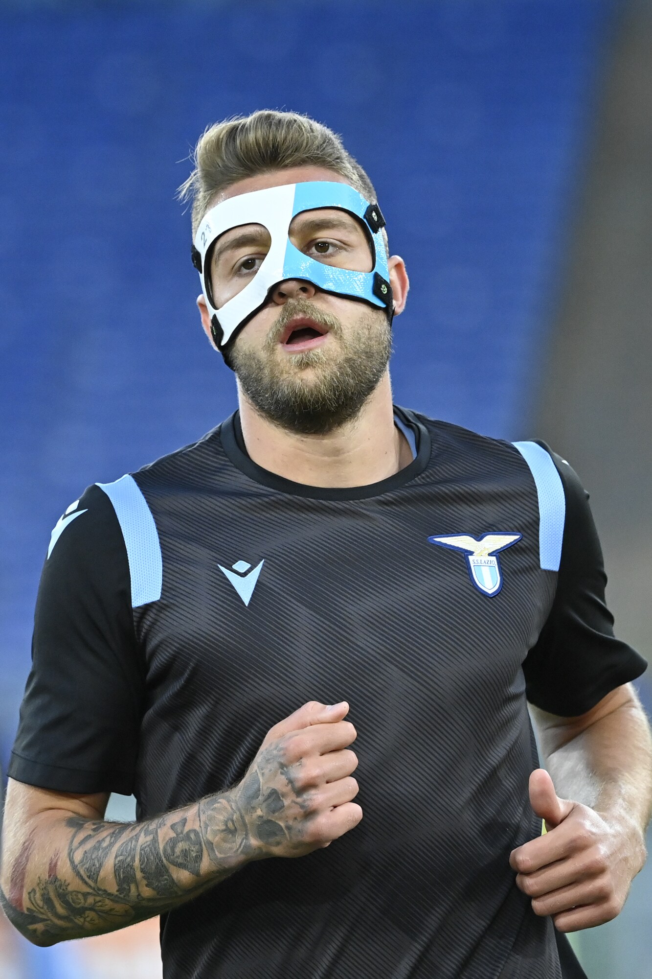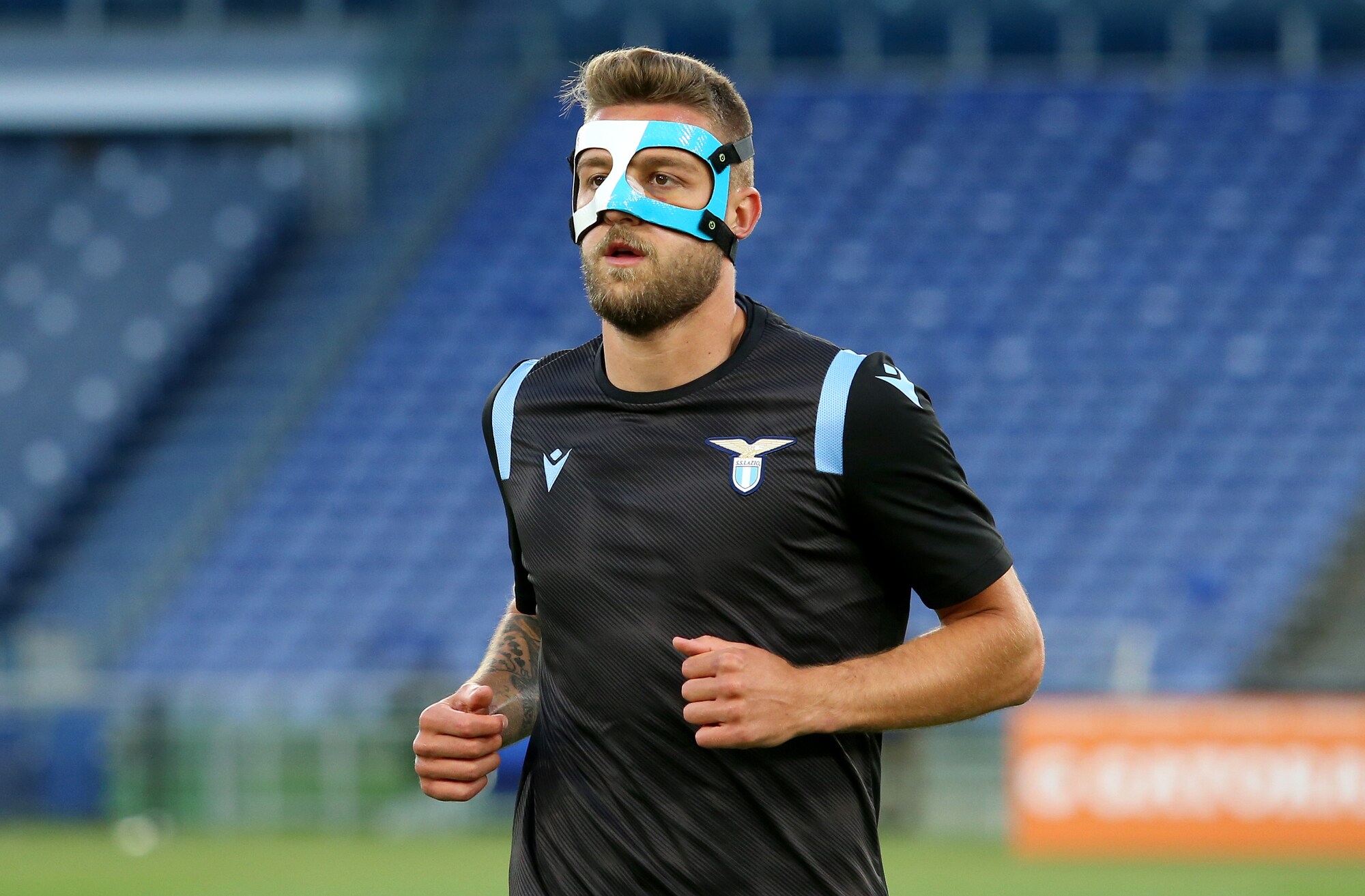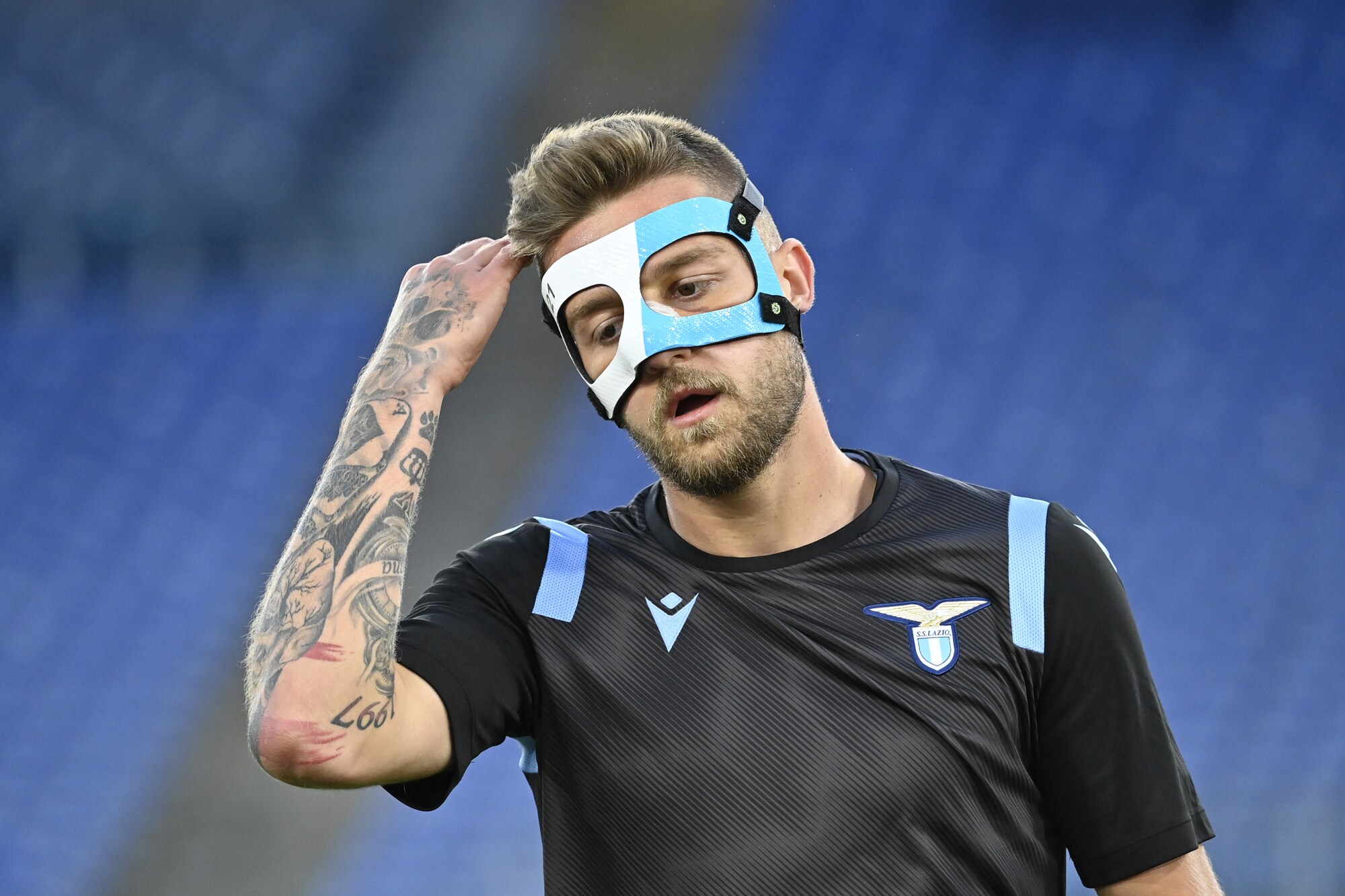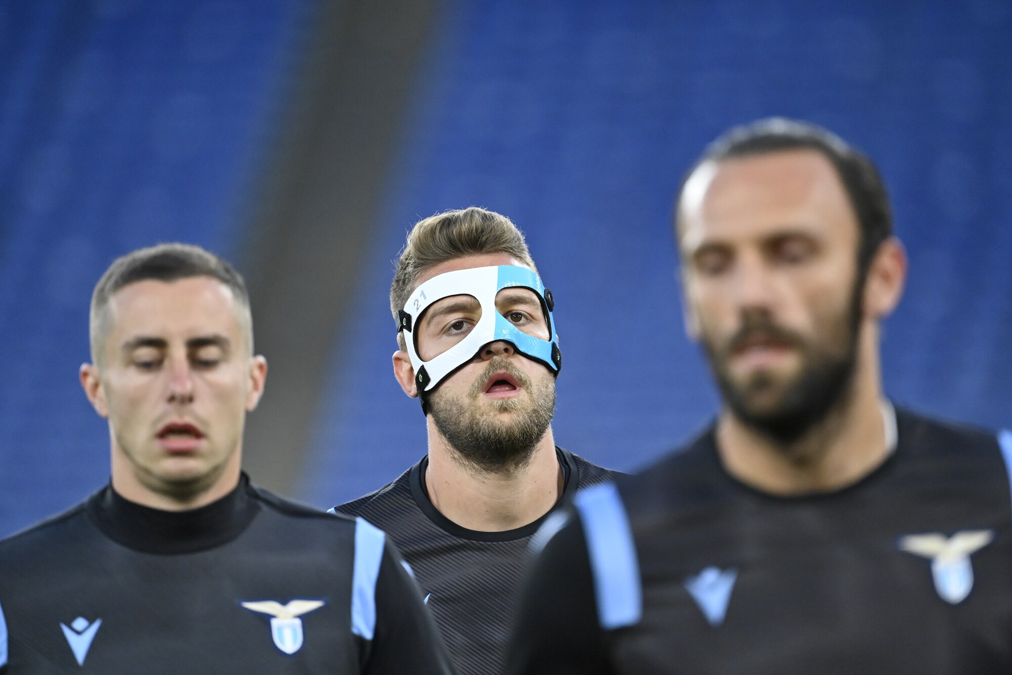 Il Sergente della Lazio, operato al setto nasale, va in campo con una protezione biancoceleste