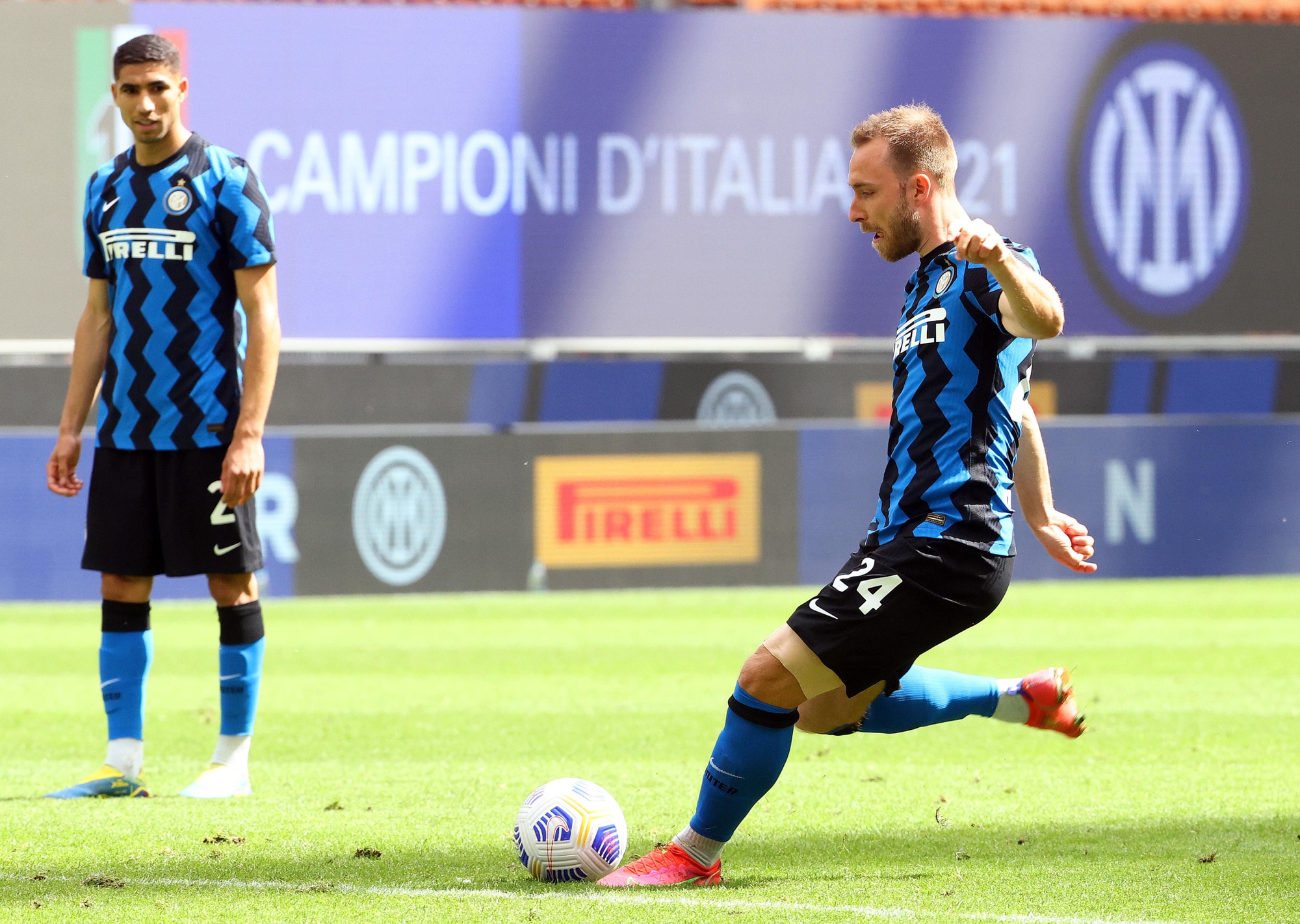 I campioni d'Italia chiudono il campionato battendo 5-1 i bianconeri firmando la 28ª vittoria in stagione: il danese entra al 39' e al 44' firma una punizione con i fiocchi. A segno anche Young, Perisic ed il duo Lautaro-Lukaku