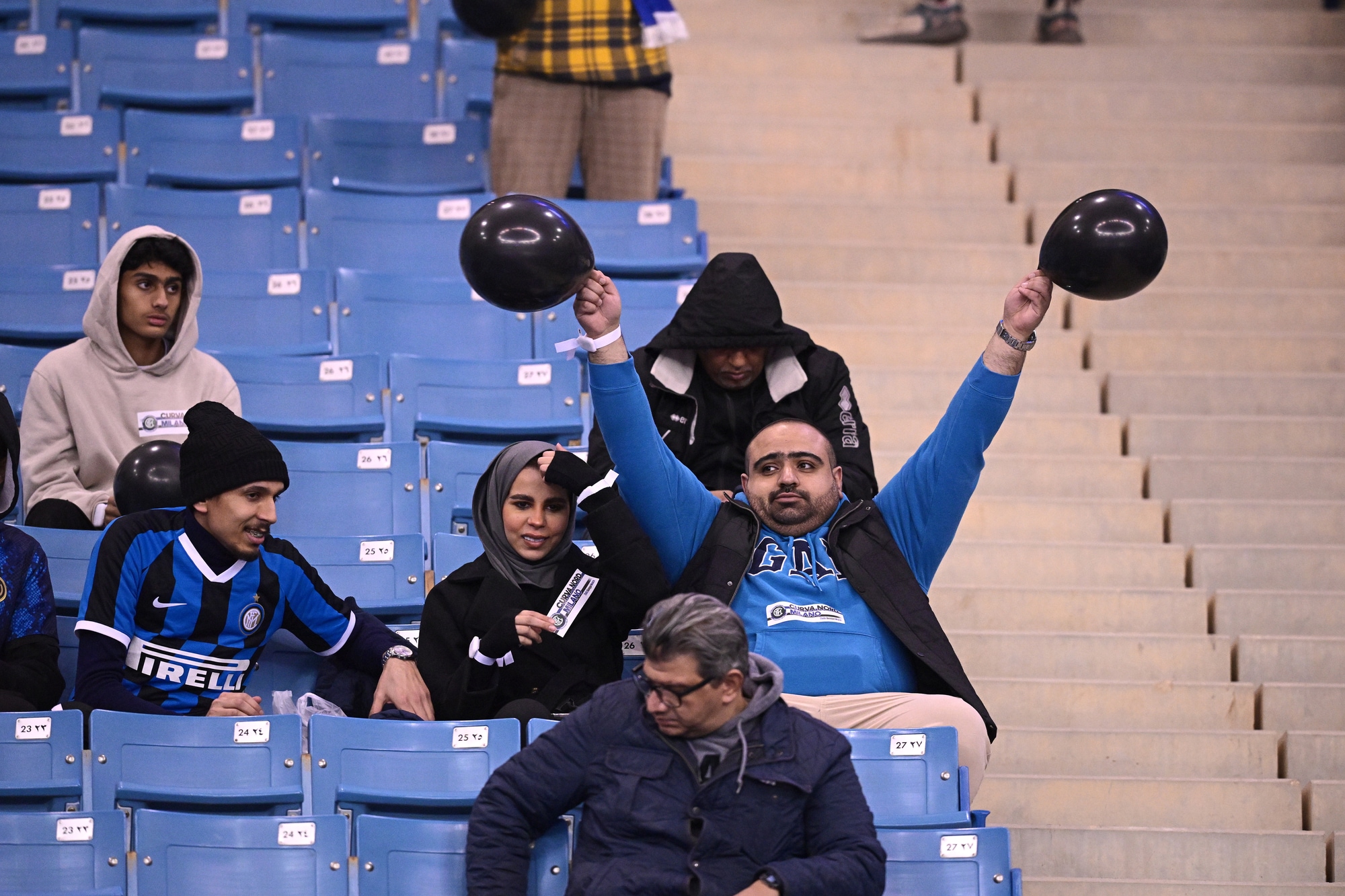 A Riyadh è comunque Italia sugli spalti, con tanti ex calciatori presenti e una colorata rappresentanza di tifosi nerazzurri e rossoneri