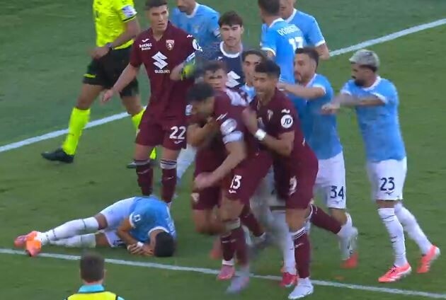 Il rigore su Noslin scatena una mega rissa: caos finale in Lazio-Torino