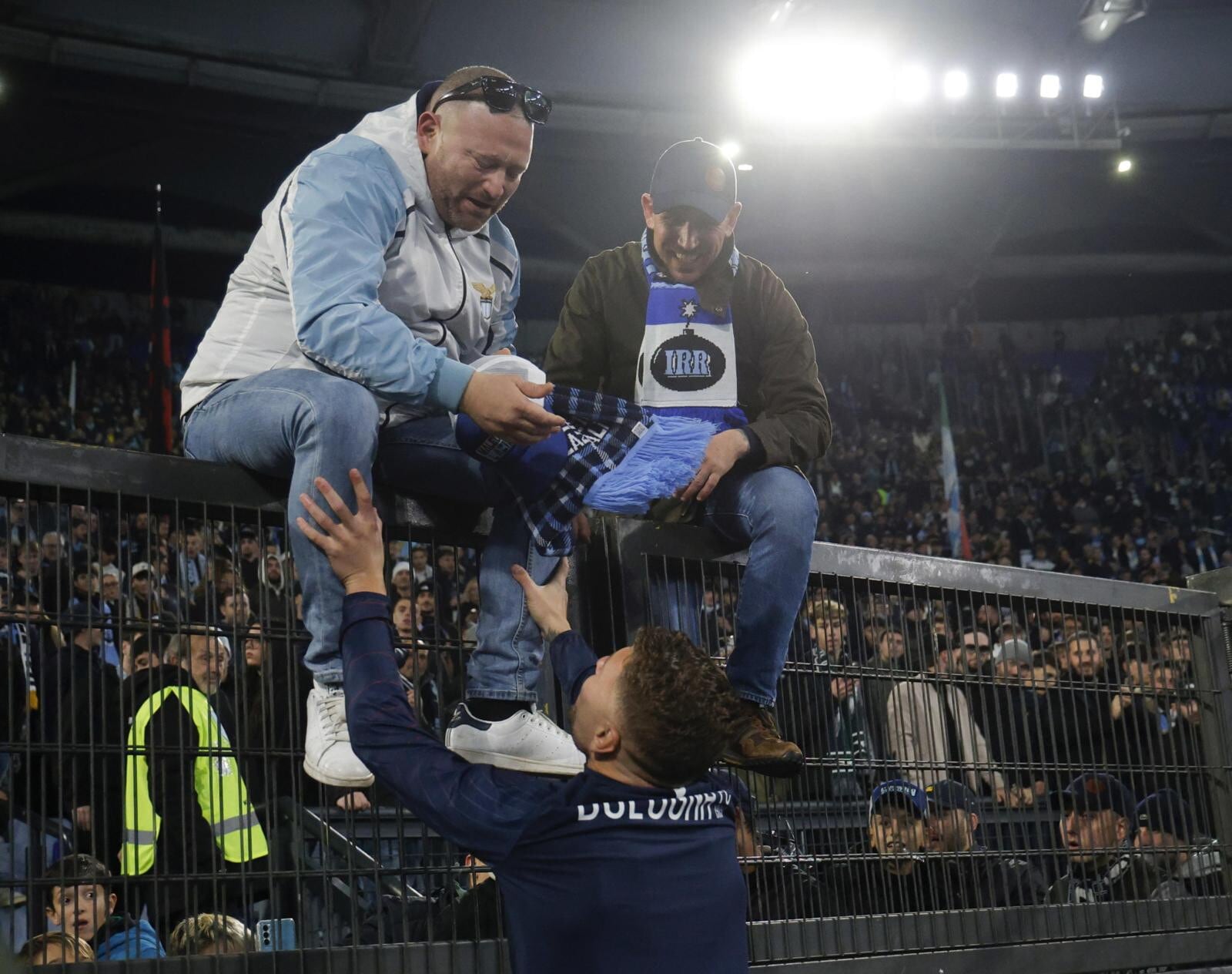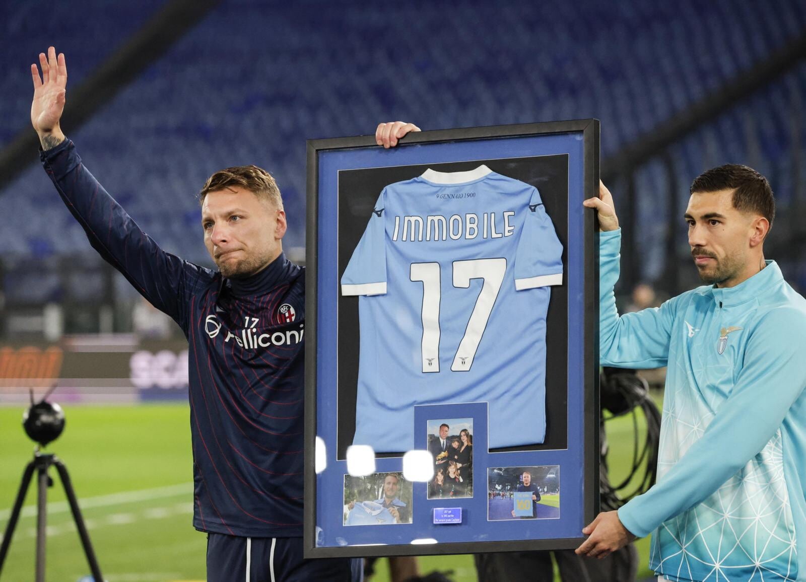 Il saluto dei tifosi biancocelesti al loro ex capitano, rientrato dall'infortunio proprio in occasione della sfida dell'Olimpico: per lui anche una maglia celebrativa