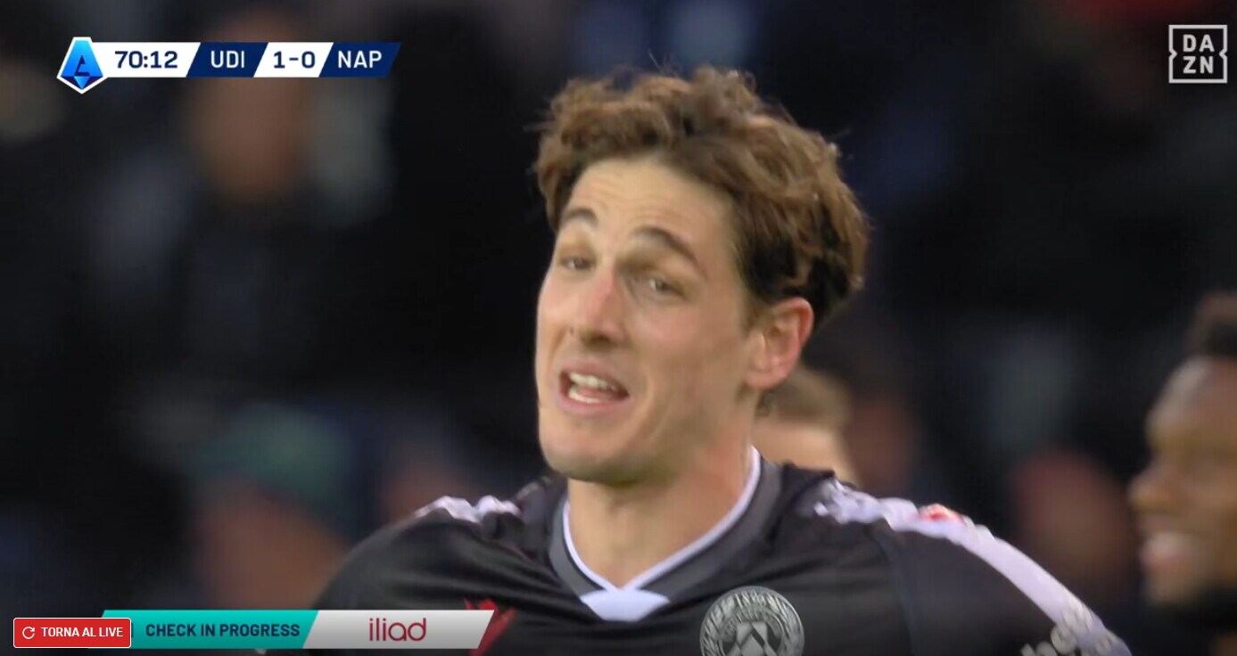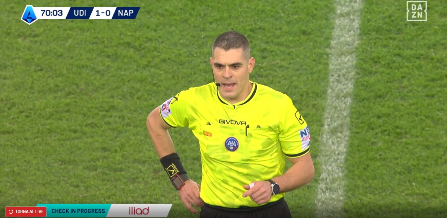 NapoliConte faccia a faccia con il quarto uomo dopo il rigore assegnato all'Inter, Doveri estrae il rosso: la fotosequenza