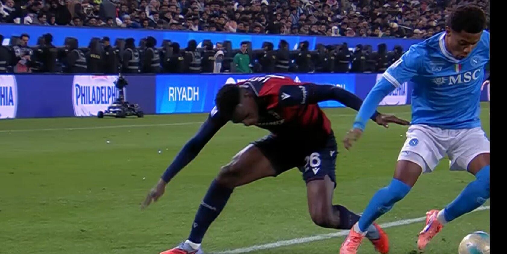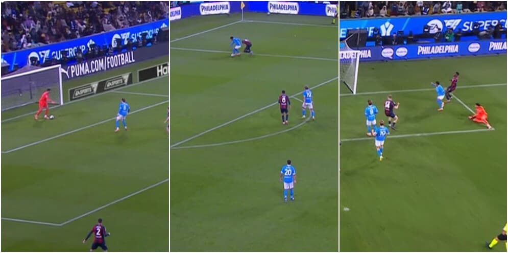 Disastro Ravaglia e Lucumì, Neres e il Napoli ringraziano: la fotosequenza del pasticcio in difesa del Bologna