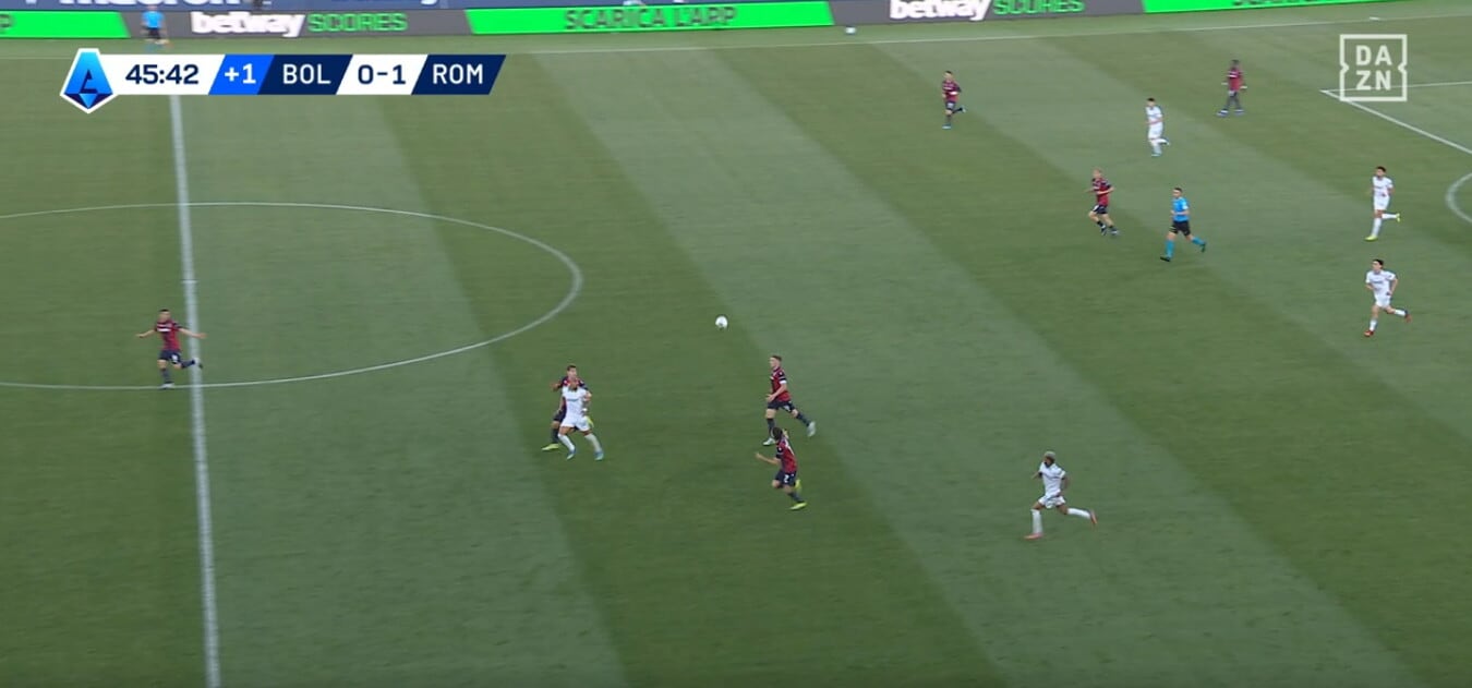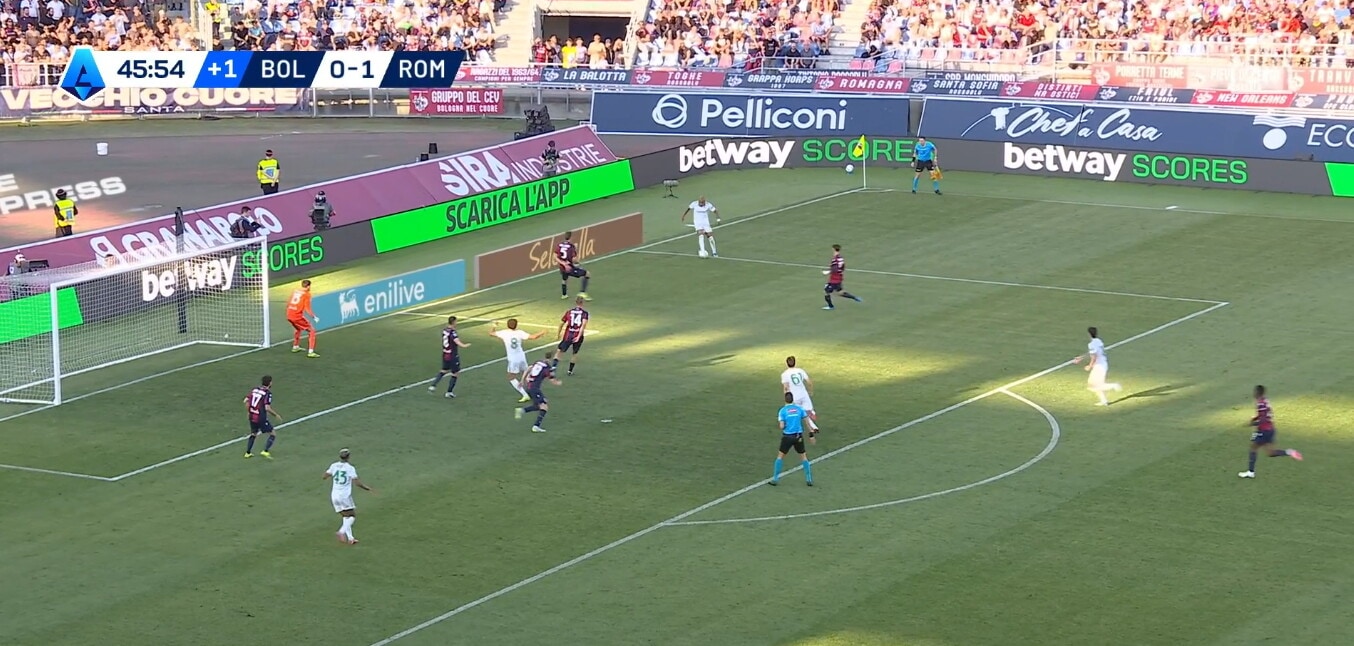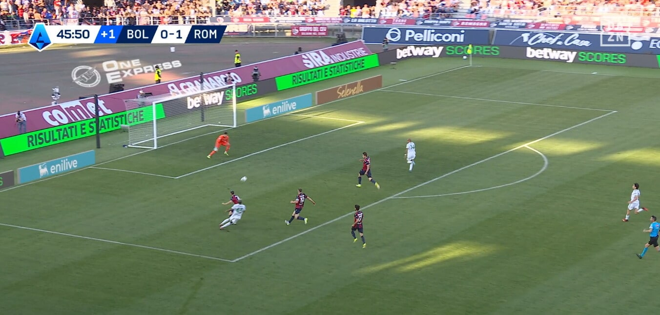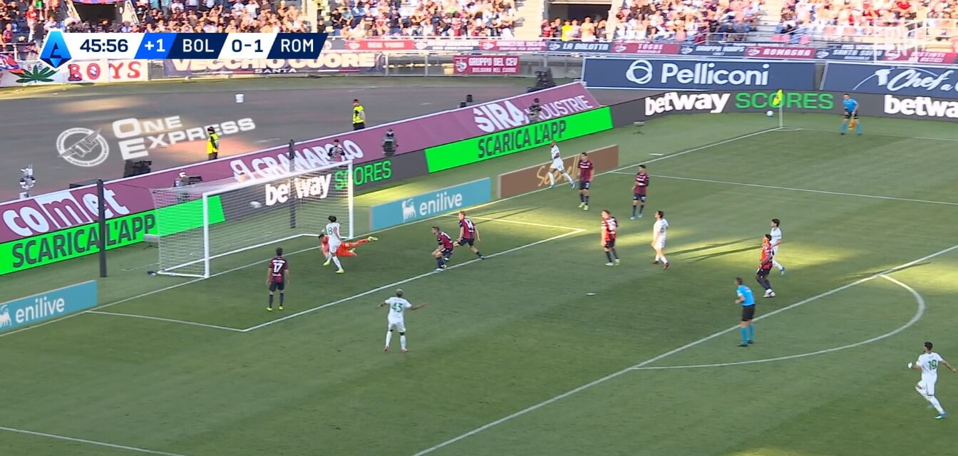 Colpo di tacco, trivela e assist per El Aynaoui: Malen show in Bologna-Roma, la fotosequenza