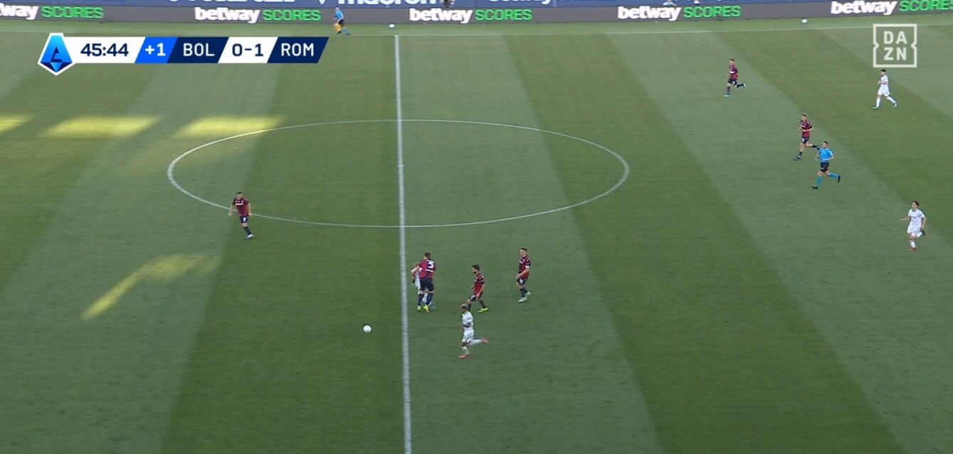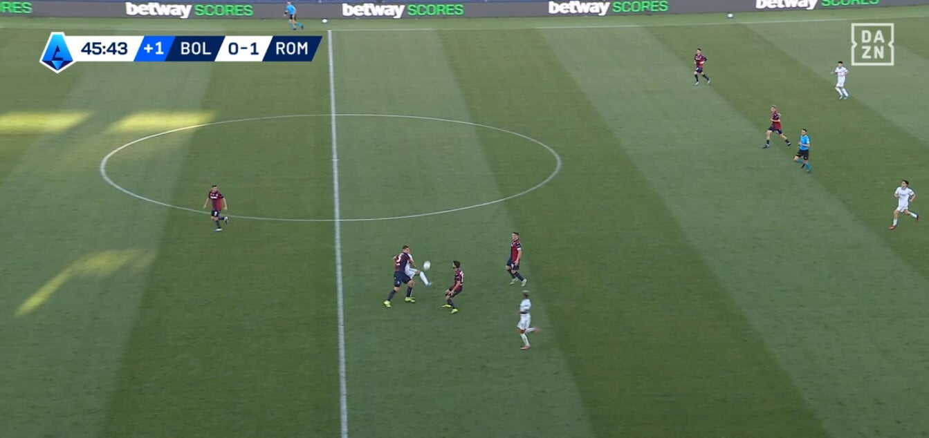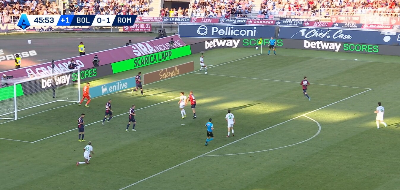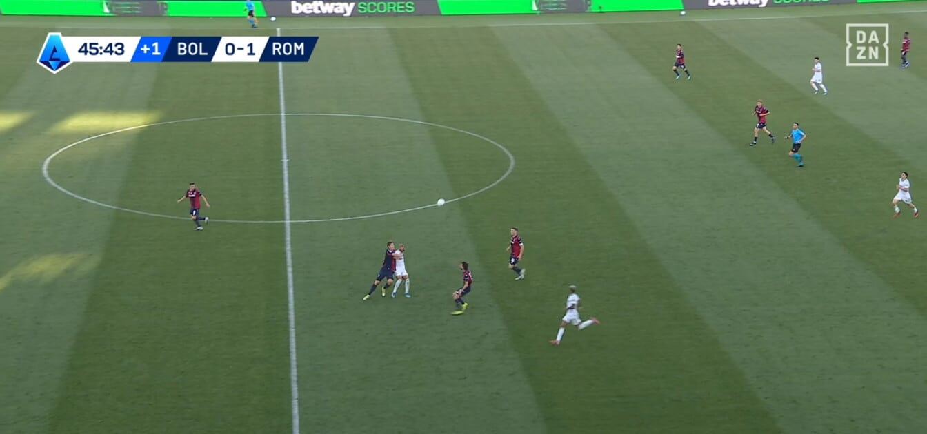 Dopo il gol con cui ha sbloccato la partita al Dall'Ara, l'attaccante olandese ha innescato e rifinito l'azione che ha permesso ai giallorossi di raddoppiare