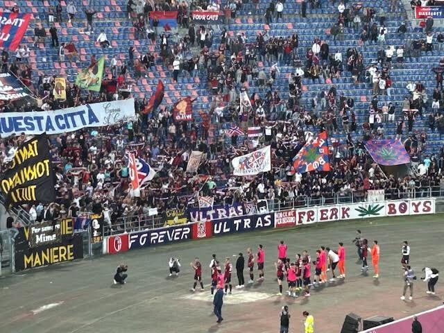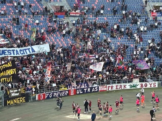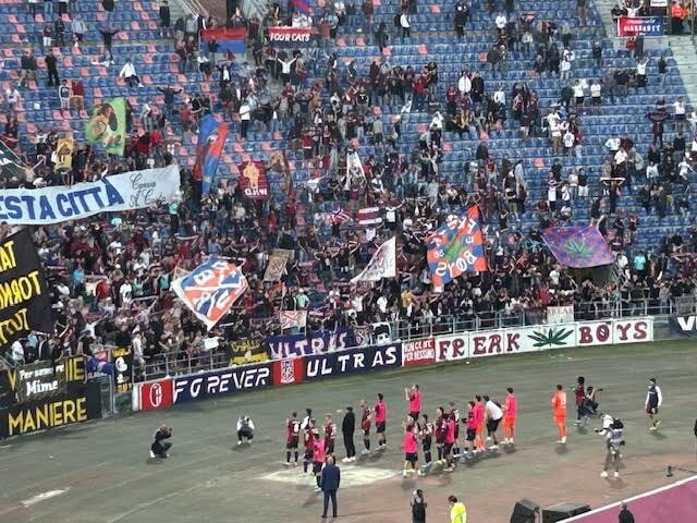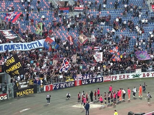 Al Dall'Ara fischi all'intervallo e a fine partita mentre c'è la canzone di Lucio Dalla. Tutta la squadra davanti ai tifosi