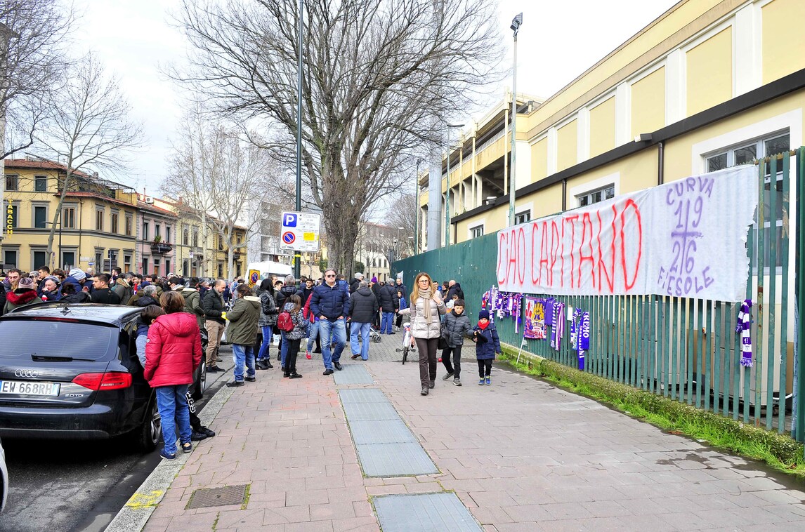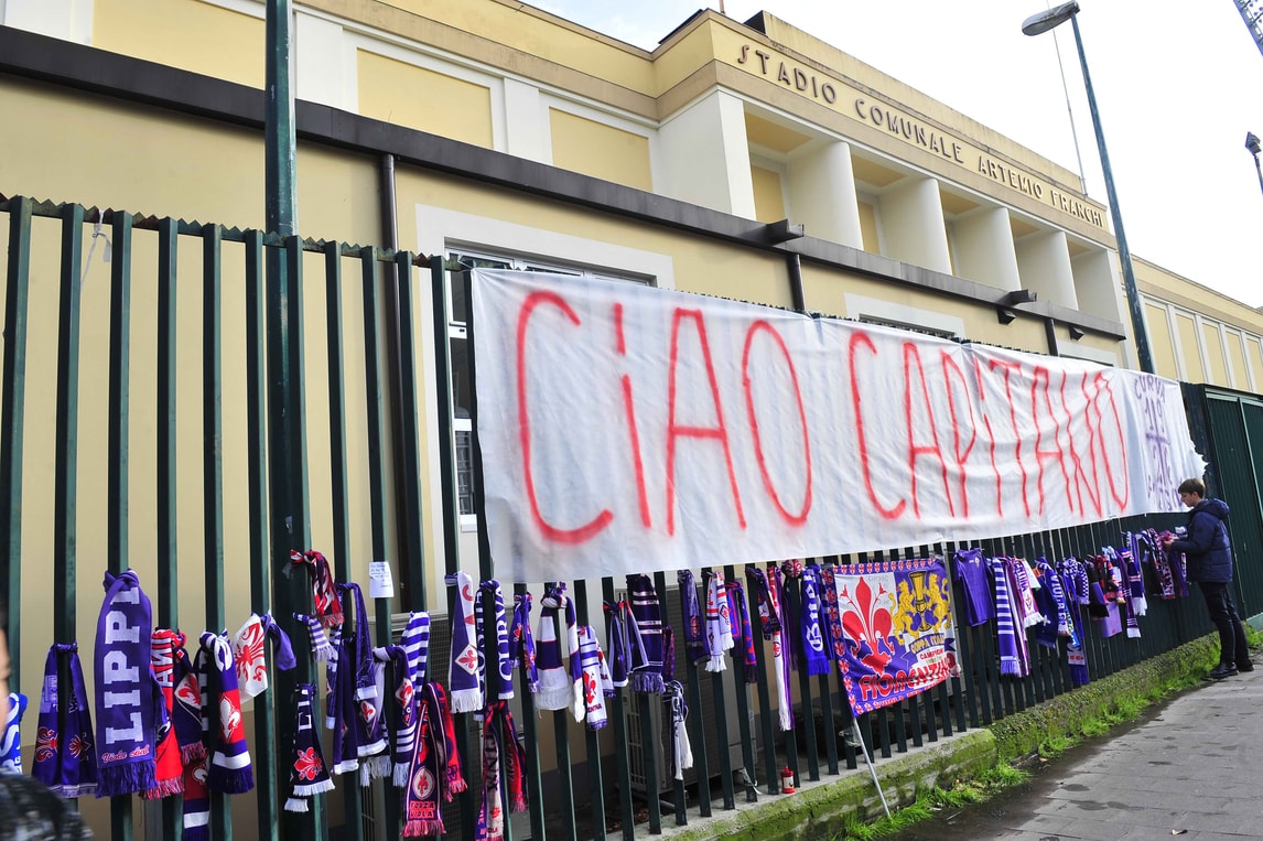Sciarpe, fiori e messaggi davanti allo Stadio Franchi per ricordare il capitano scomparso