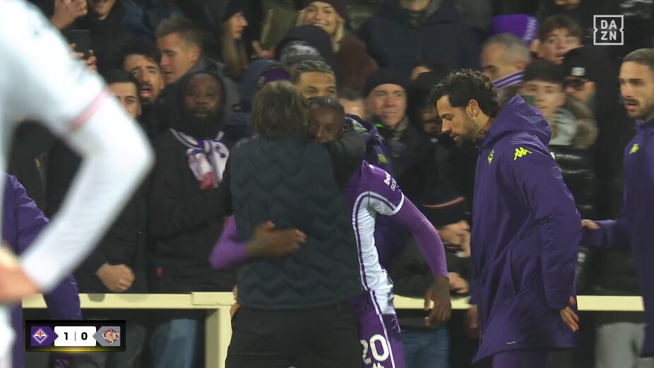 Segna Kean e Vanoli impazzisce di gioia: le immagini del lungo abbraccio