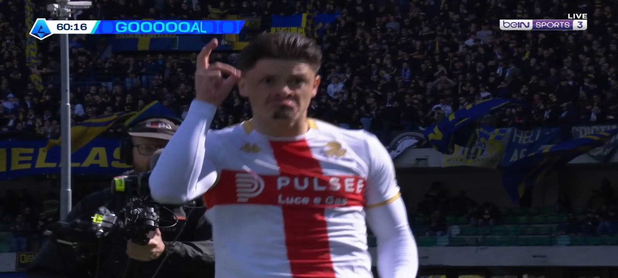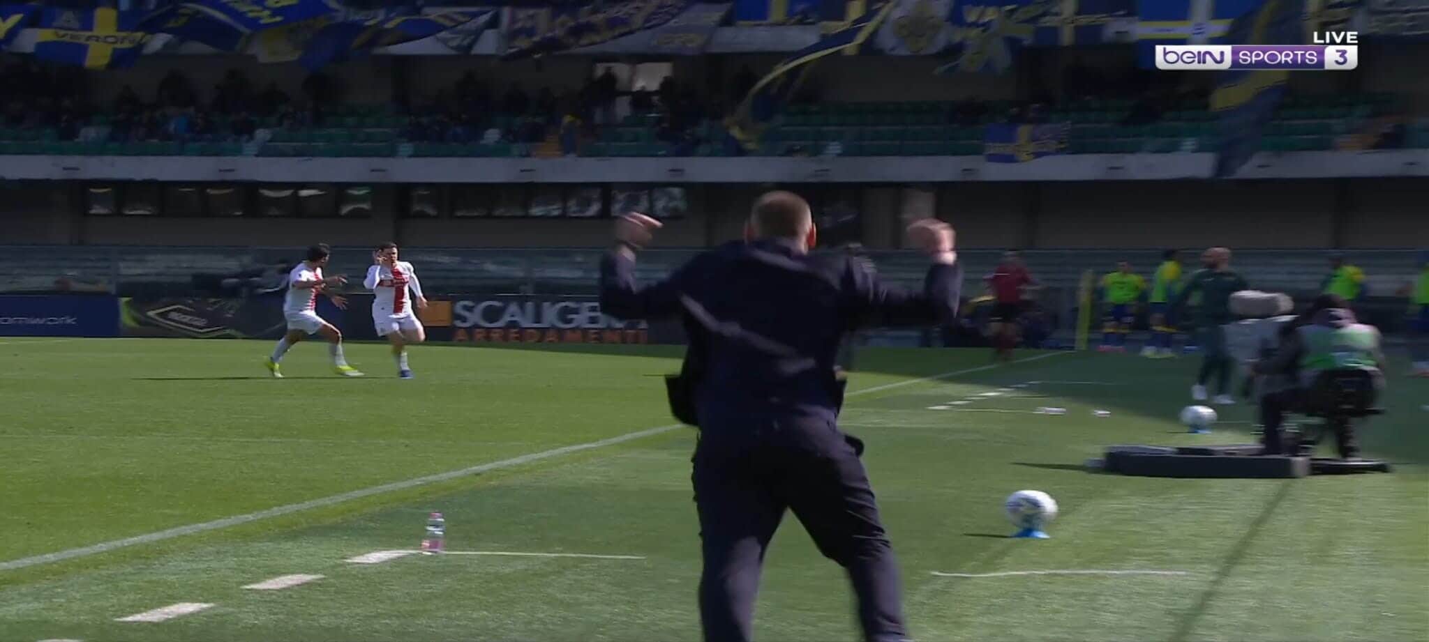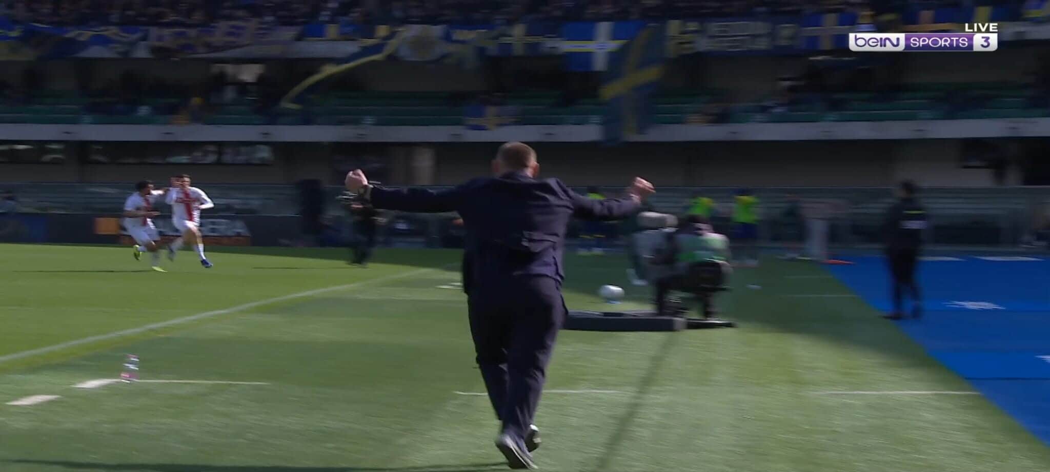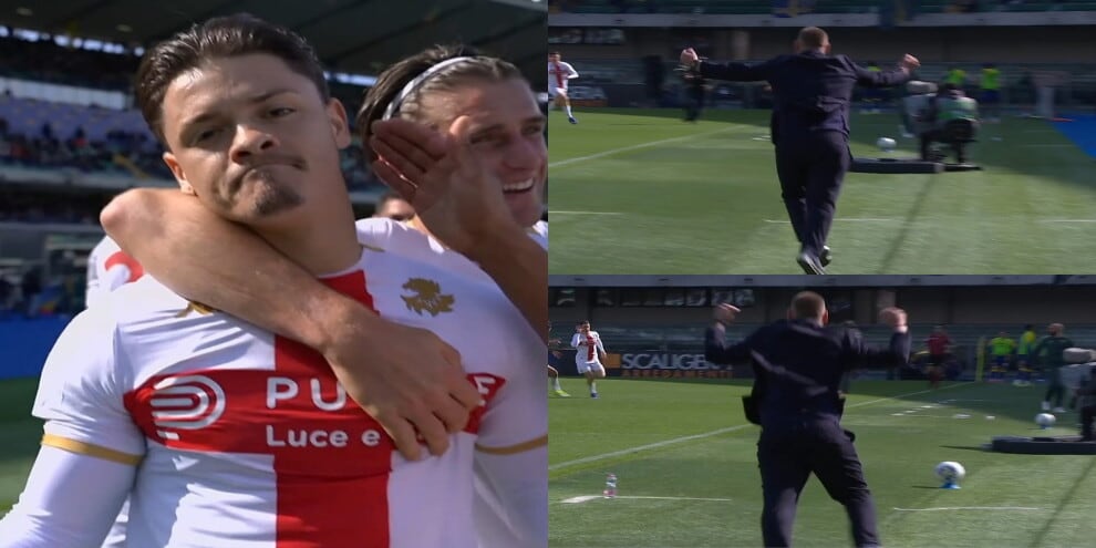 Nello scontro diretto per la salvezza contro il Verona, il portoghese del Genoa ha segnato una rete stupenda dalla lunga distanza con il pallone finito sotto la traversa. Le telecamere hanno pescato la grandissima gioia dell'allenatore dei rossoblù che si è messo a saltare e correre a bordocampo
