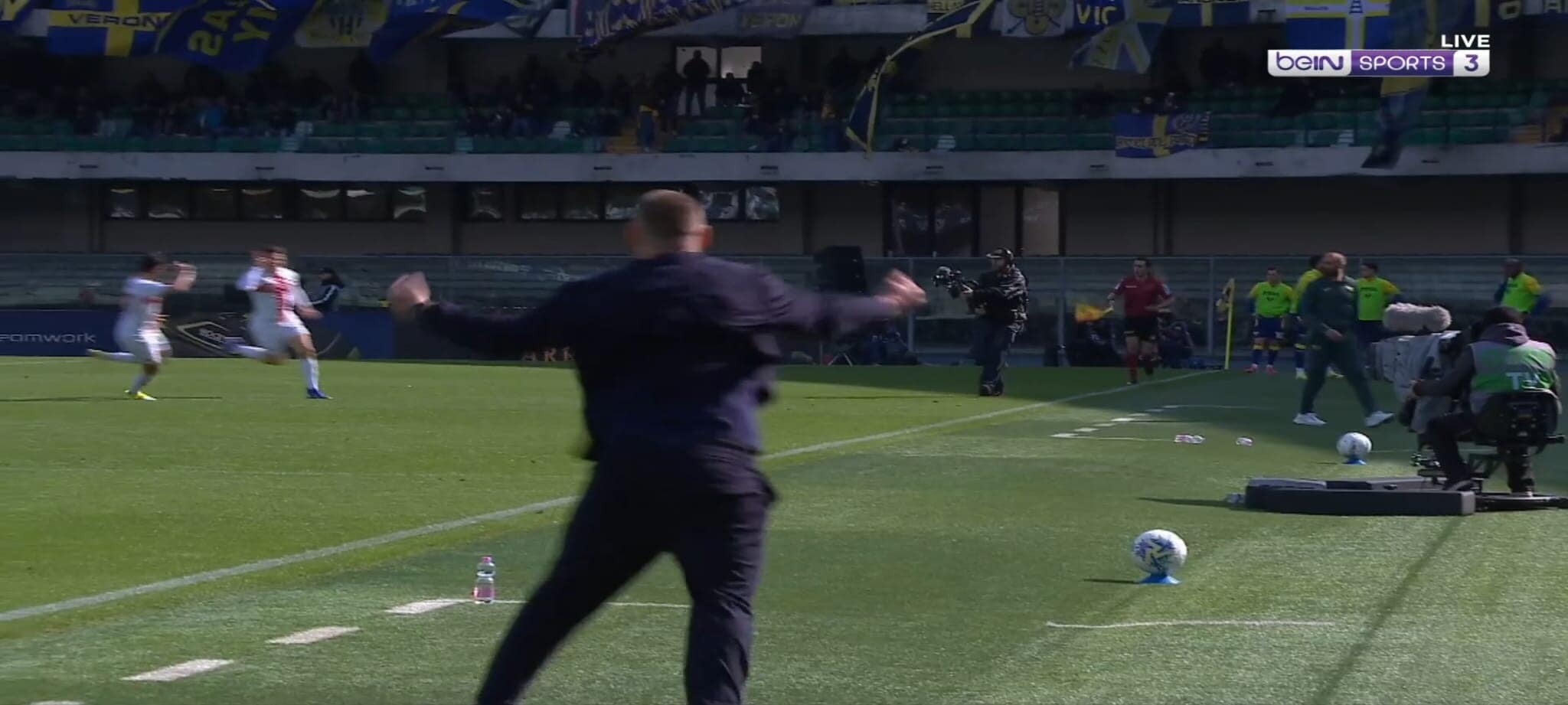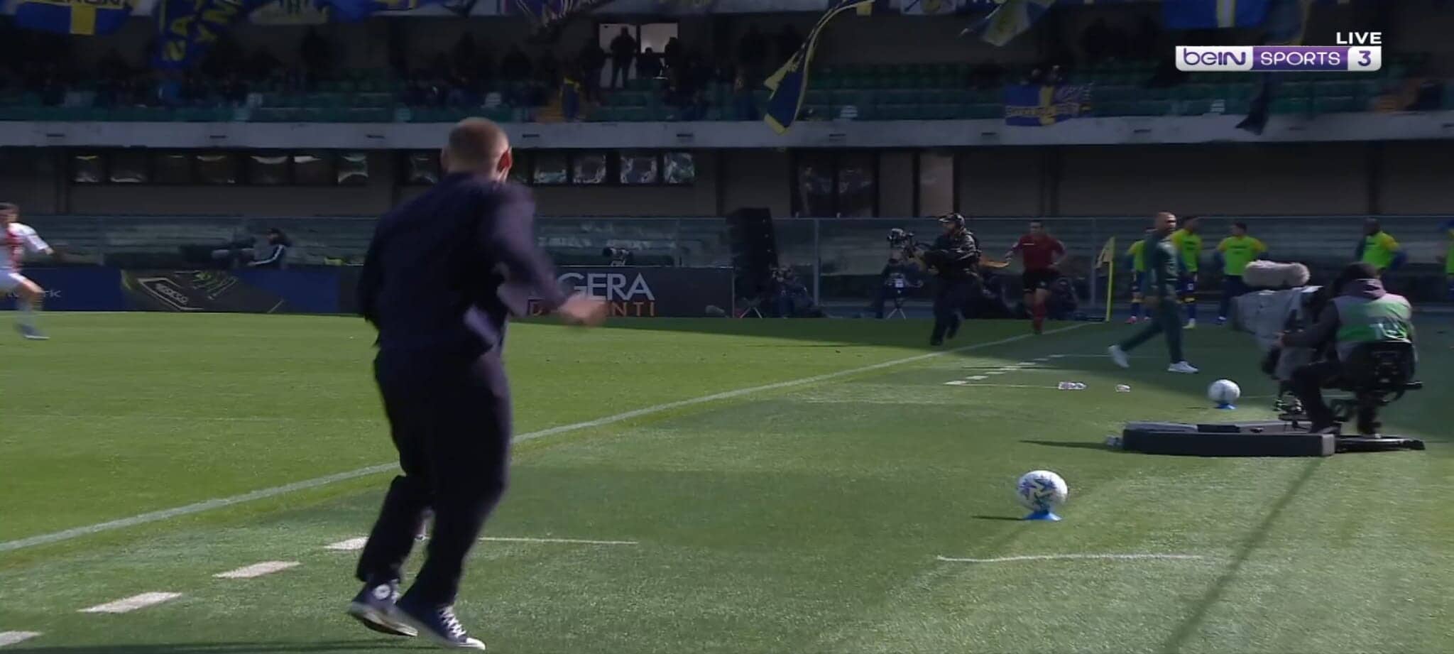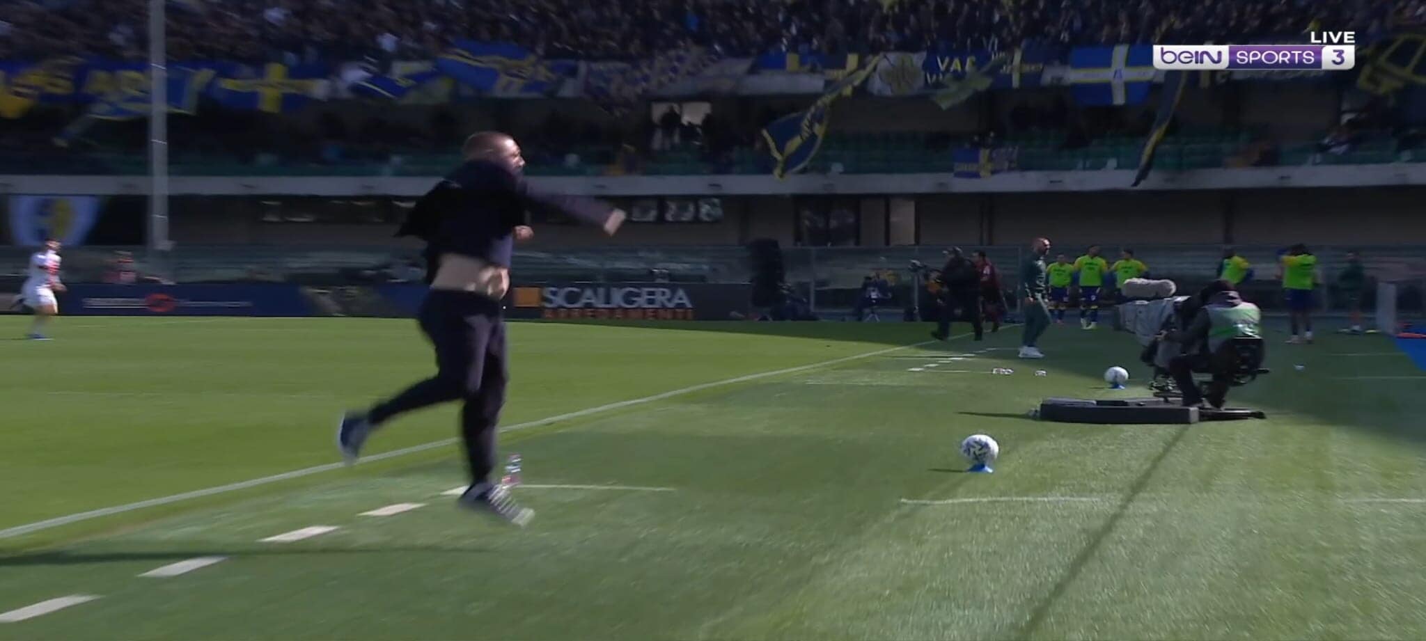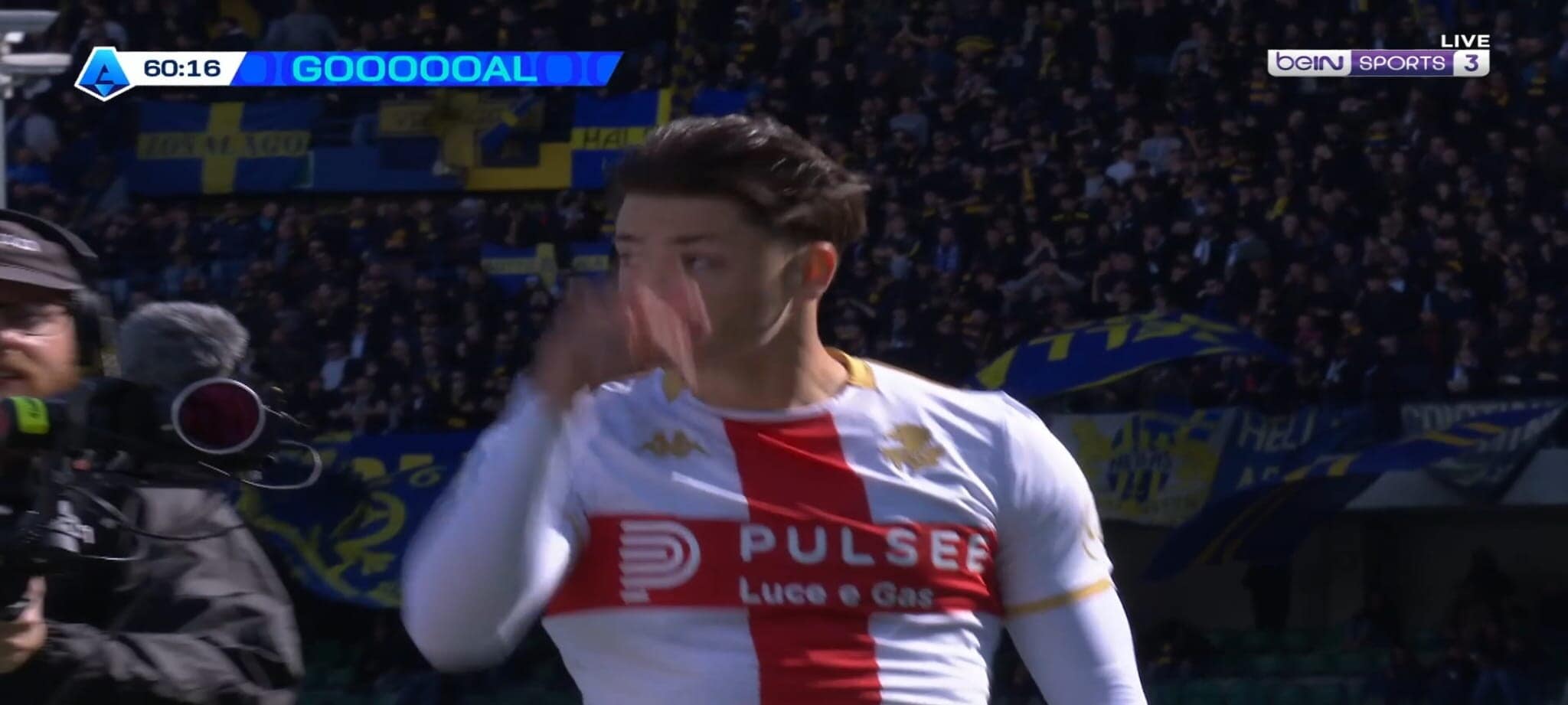 Nello scontro diretto per la salvezza contro il Verona, il portoghese del Genoa ha segnato una rete stupenda dalla lunga distanza con il pallone finito sotto la traversa. Le telecamere hanno pescato la grandissima gioia dell'allenatore dei rossoblù che si è messo a saltare e correre a bordocampo