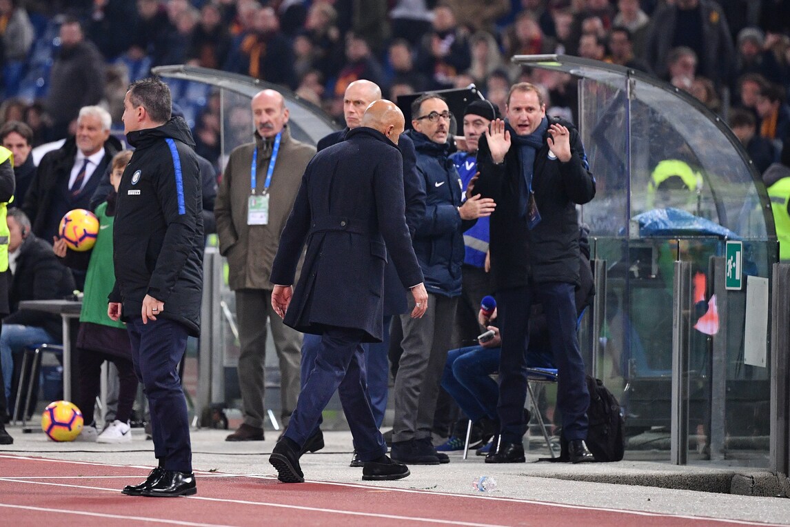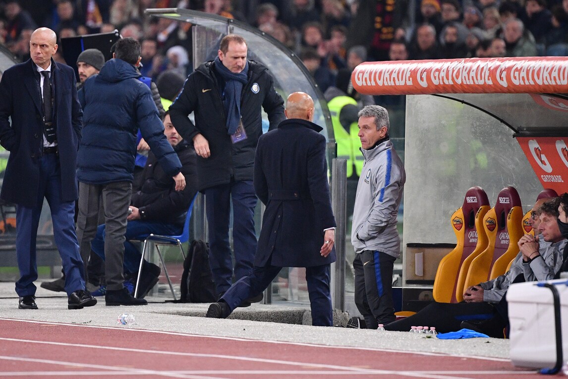 L'allenatore dell'Inter, grande ex della sfida con la Roma, beccato dai tifosi e poi allontanato dall'arbitro Rocchi nel finale per proteste