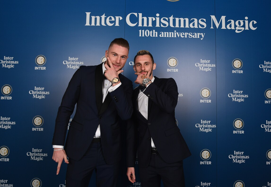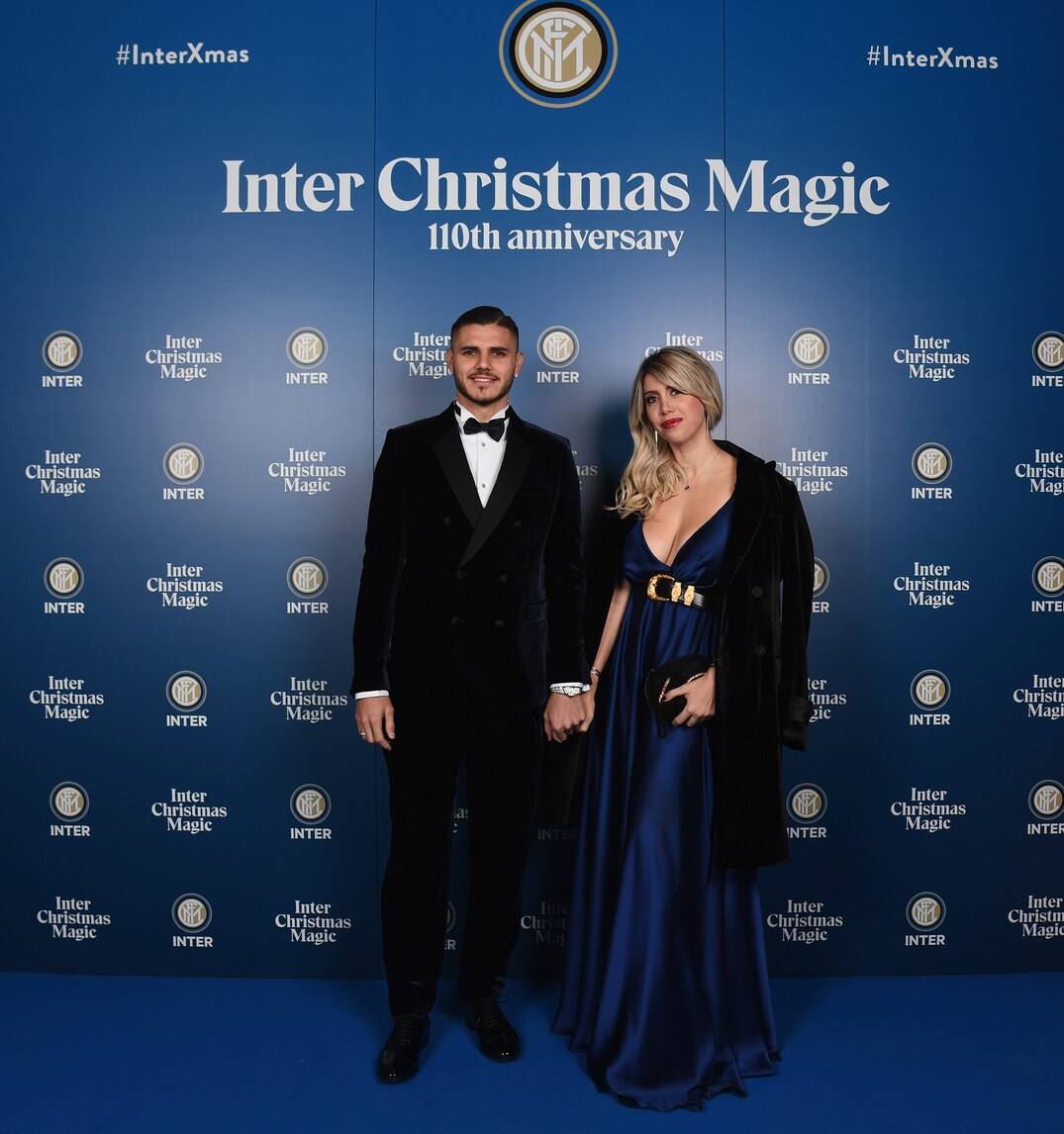 Sorrisi e pose ironiche alla classica cena natalizia del club nerazzurro: protagonista assoluta la moglie del capitano Icardi