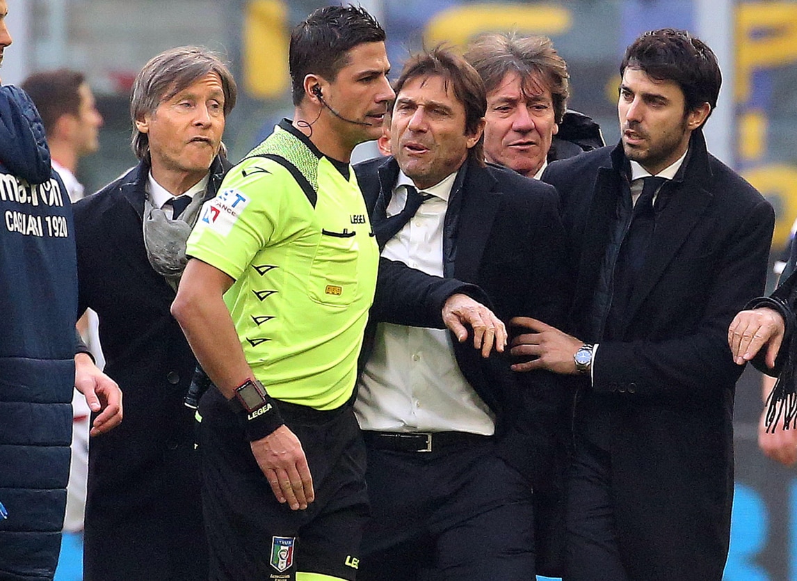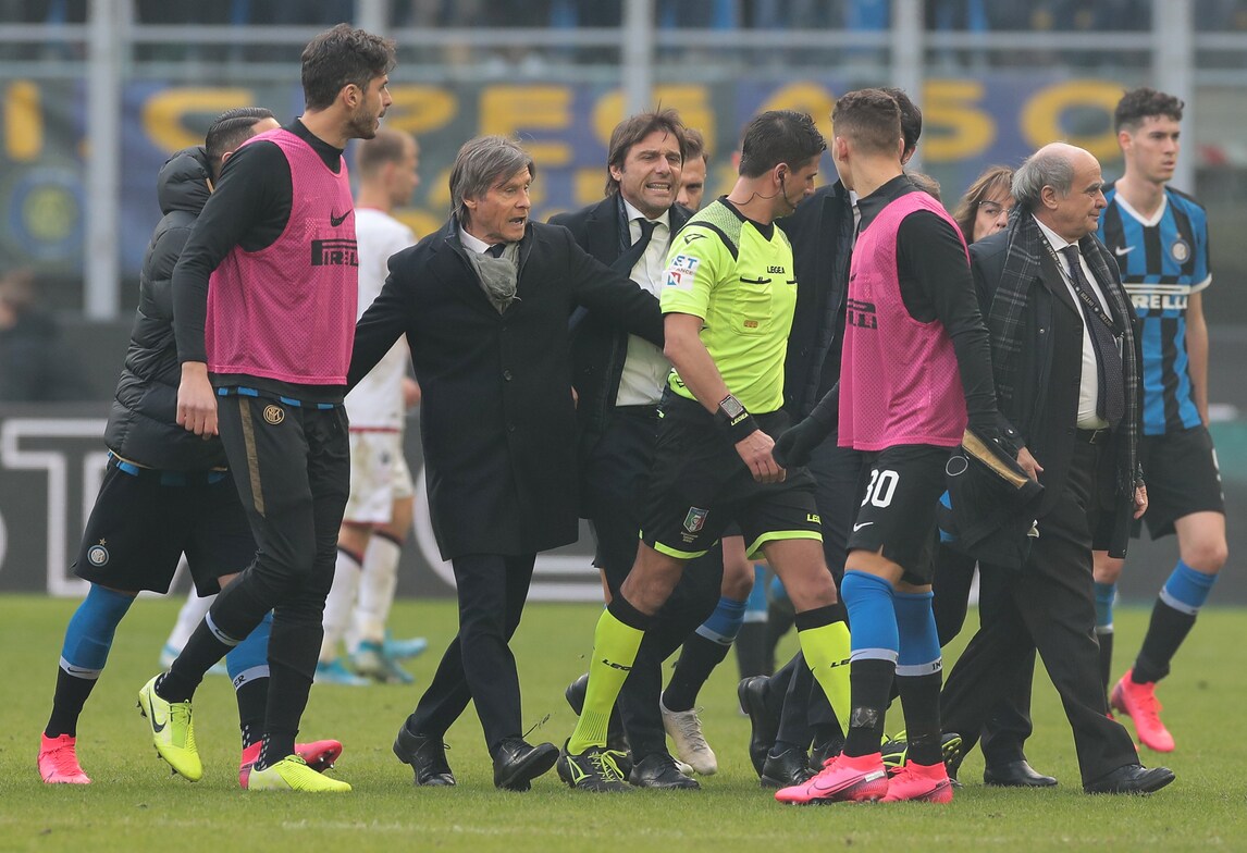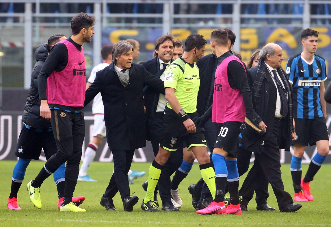 Dopo il triplice fischio il tecnico nerazzurro va a protestare con il direttore di gara, che al 94' ha espulso Lautaro Martinez