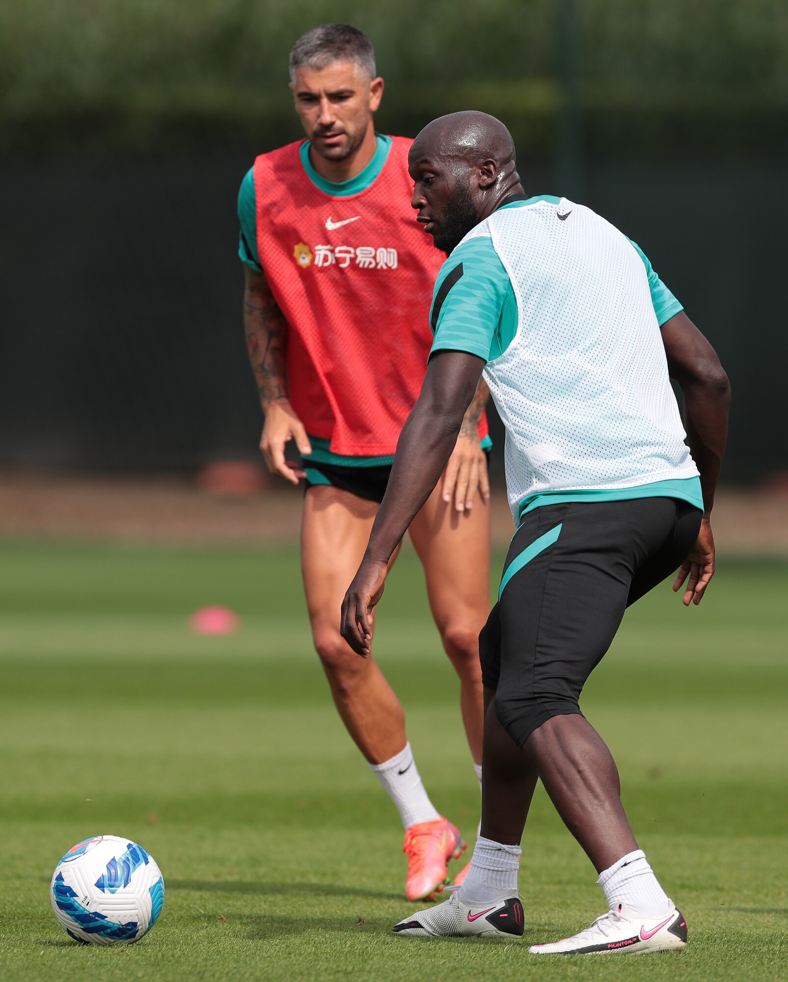 Il tecnico nerazzurro parla con Romelu, che poi si scatena in allenamento