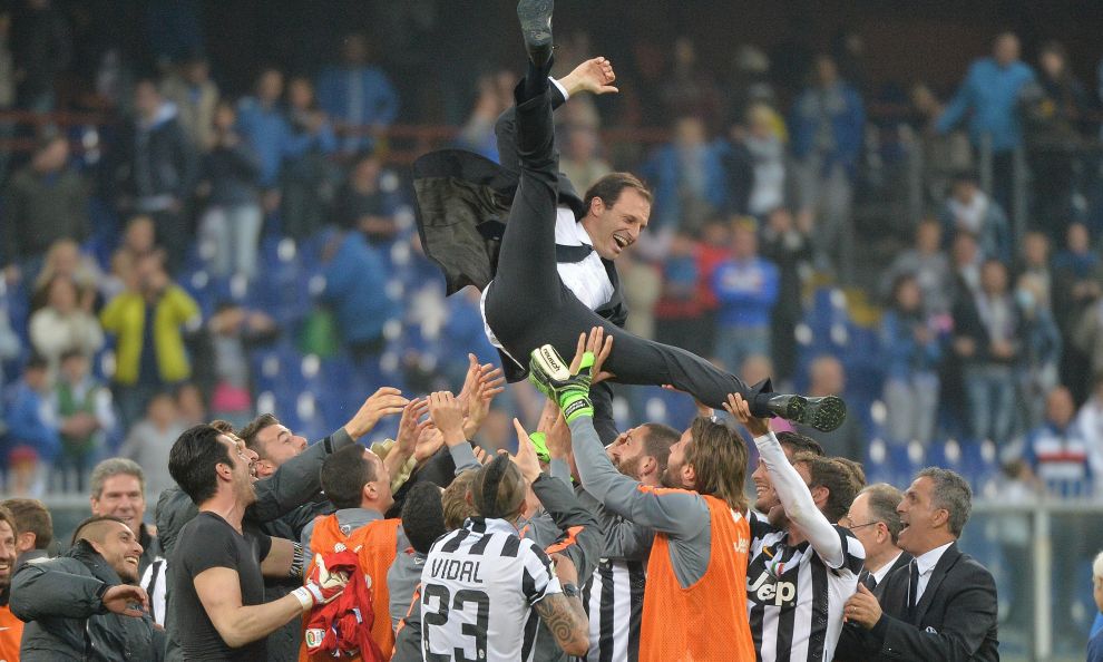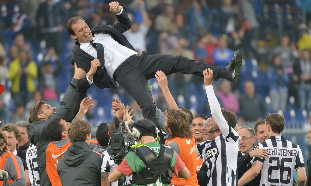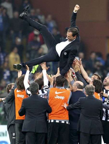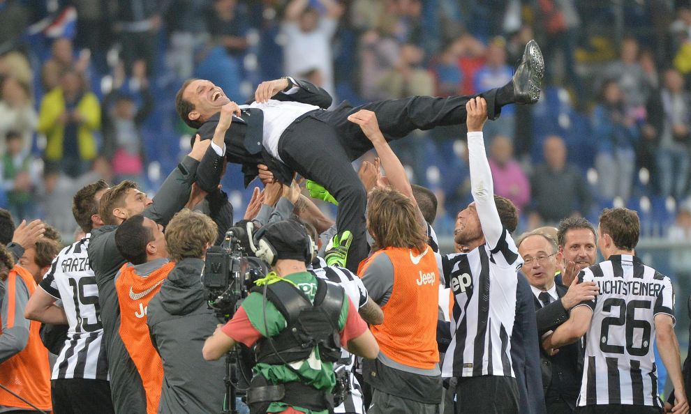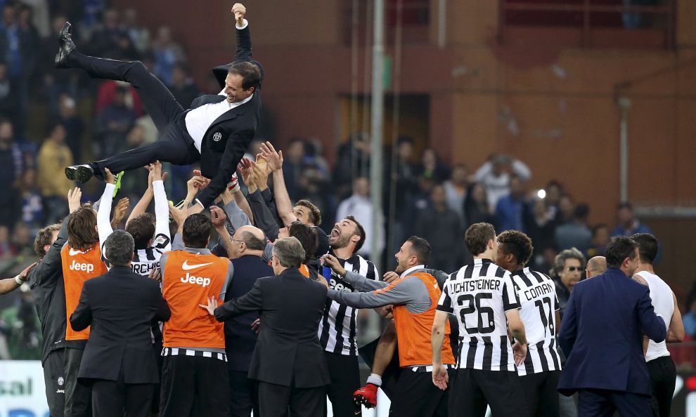 FOTO Juventus, che festa per lo scudetto e Allegri... vola!