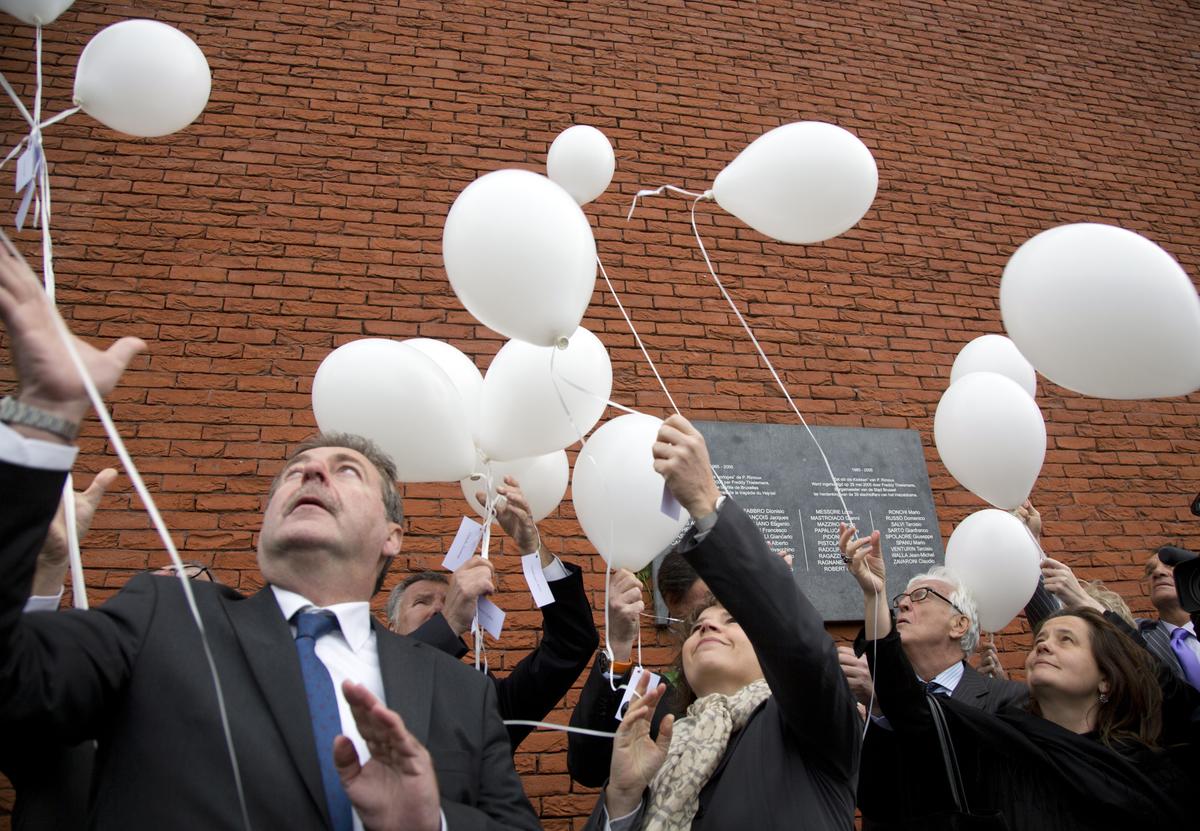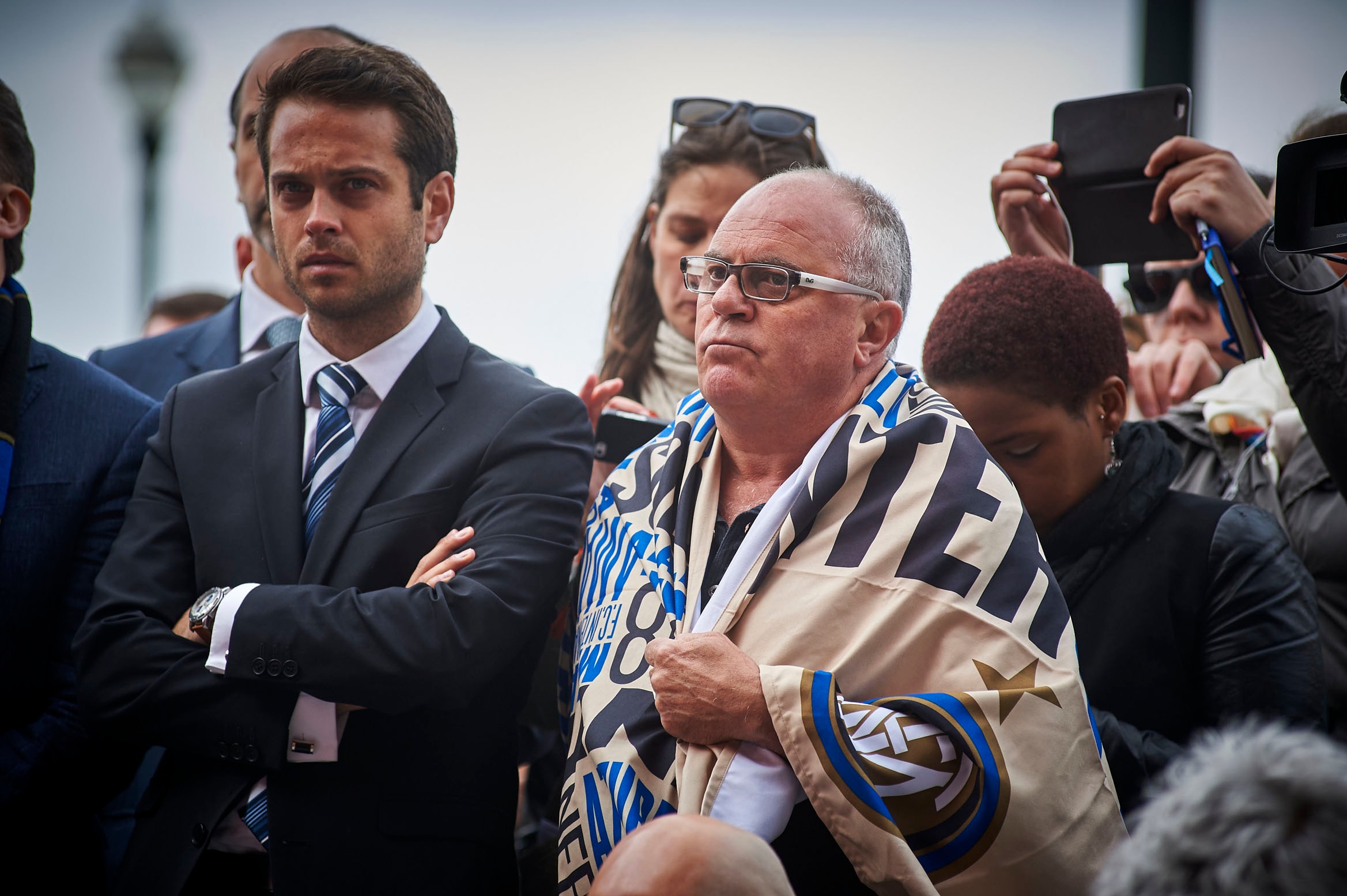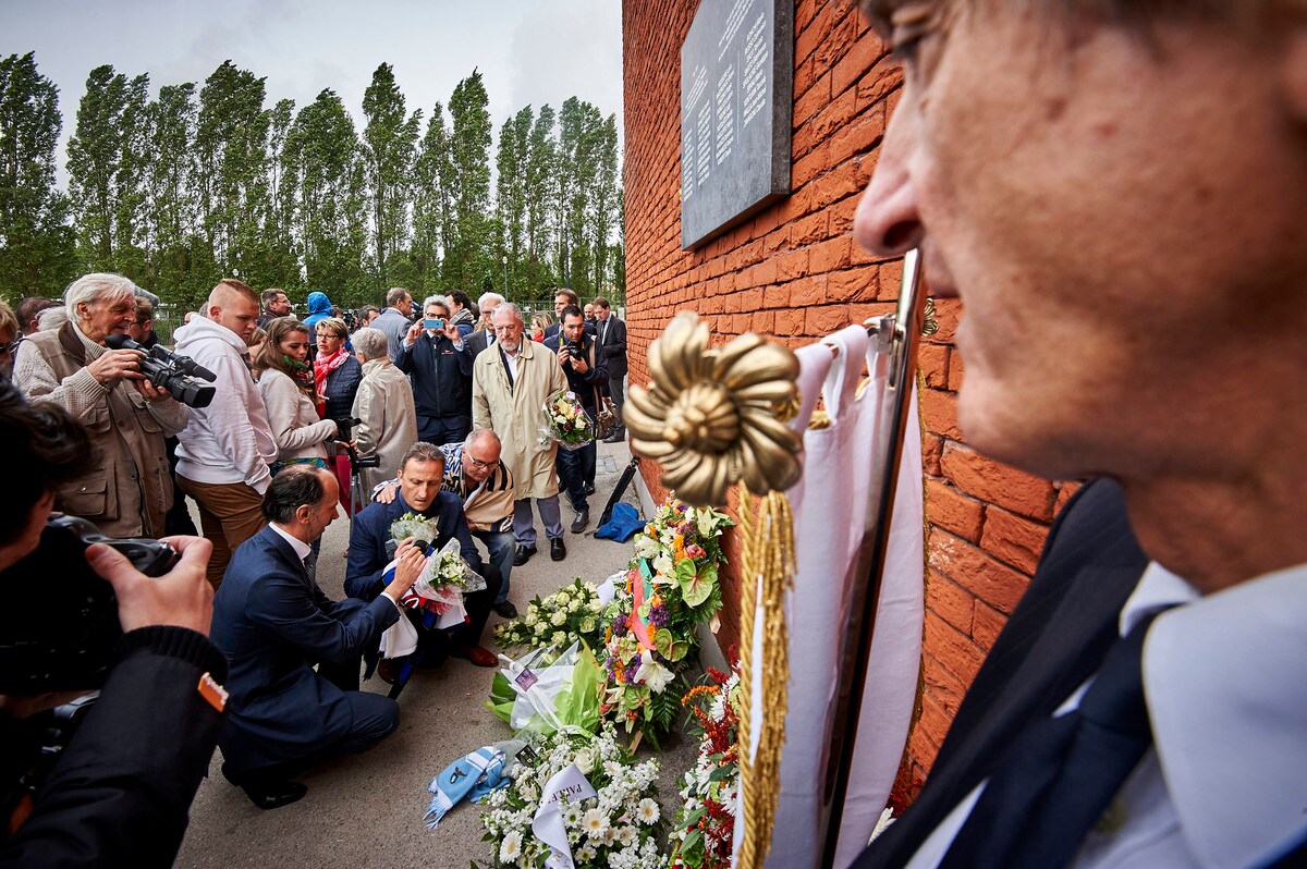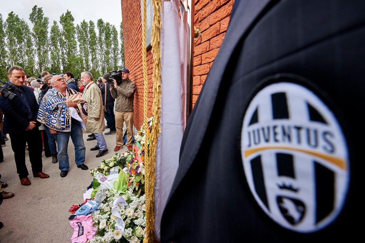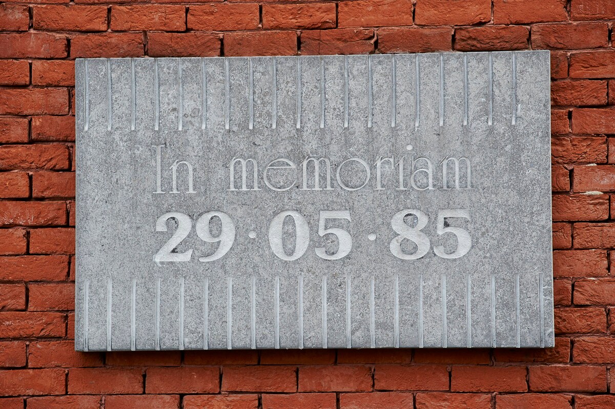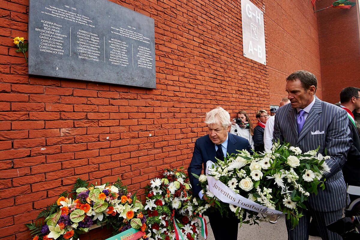 La cerimonia dinanzi al monumento eretto in memoria della strage del 29 maggio 1985, all’esterno dello stadio