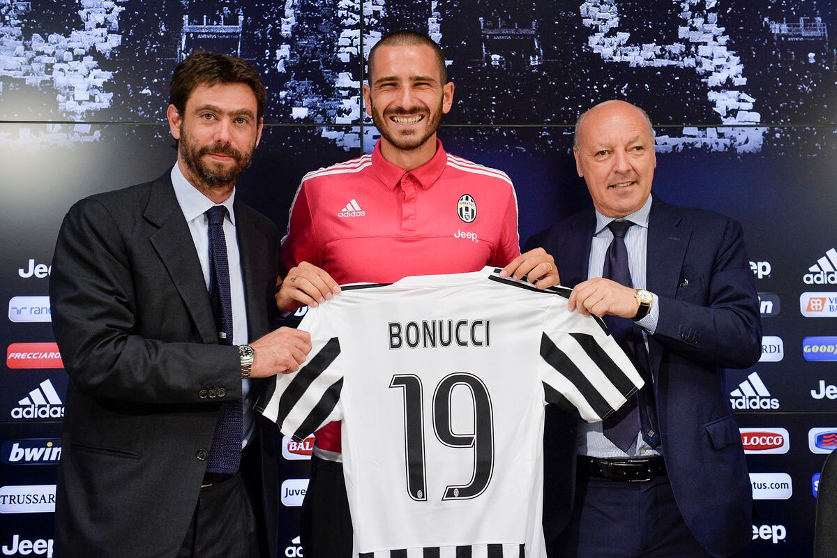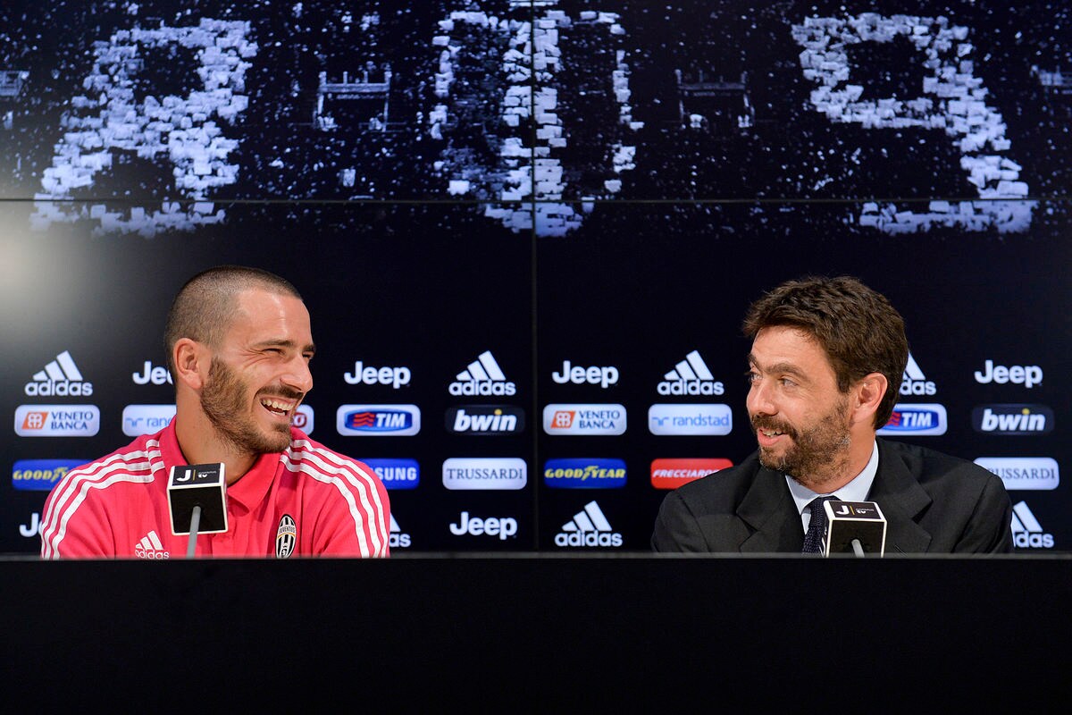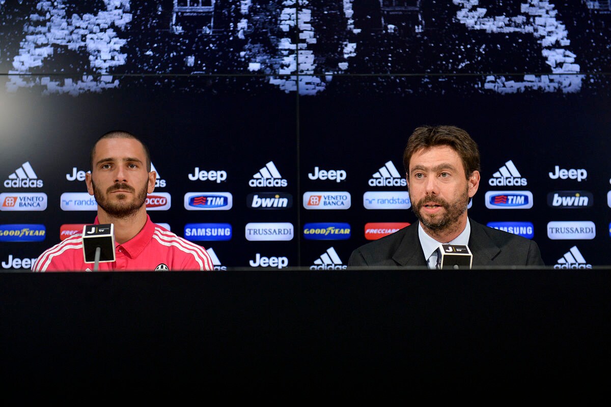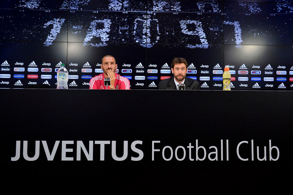 Il difensore bianconero rinnova e parla in conferenza stampa con Agnelli