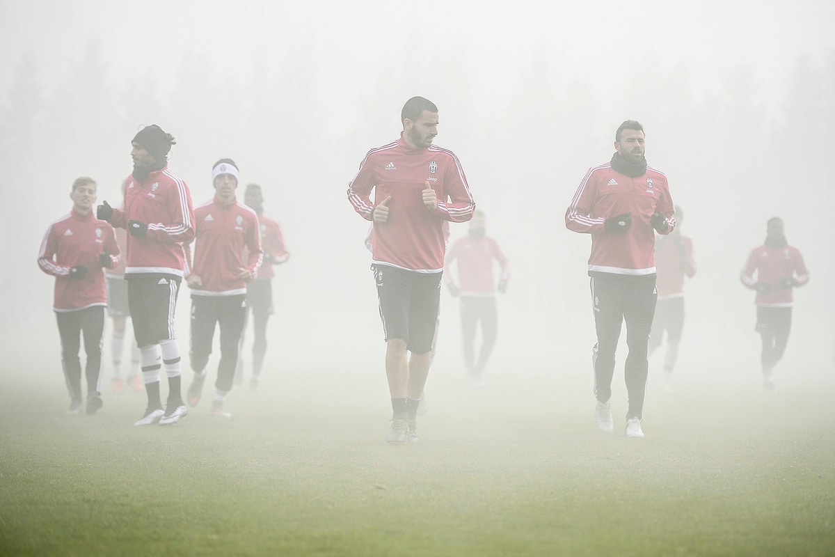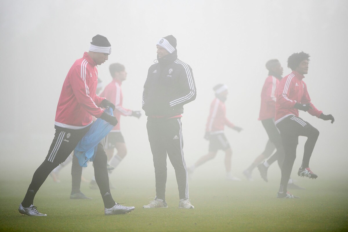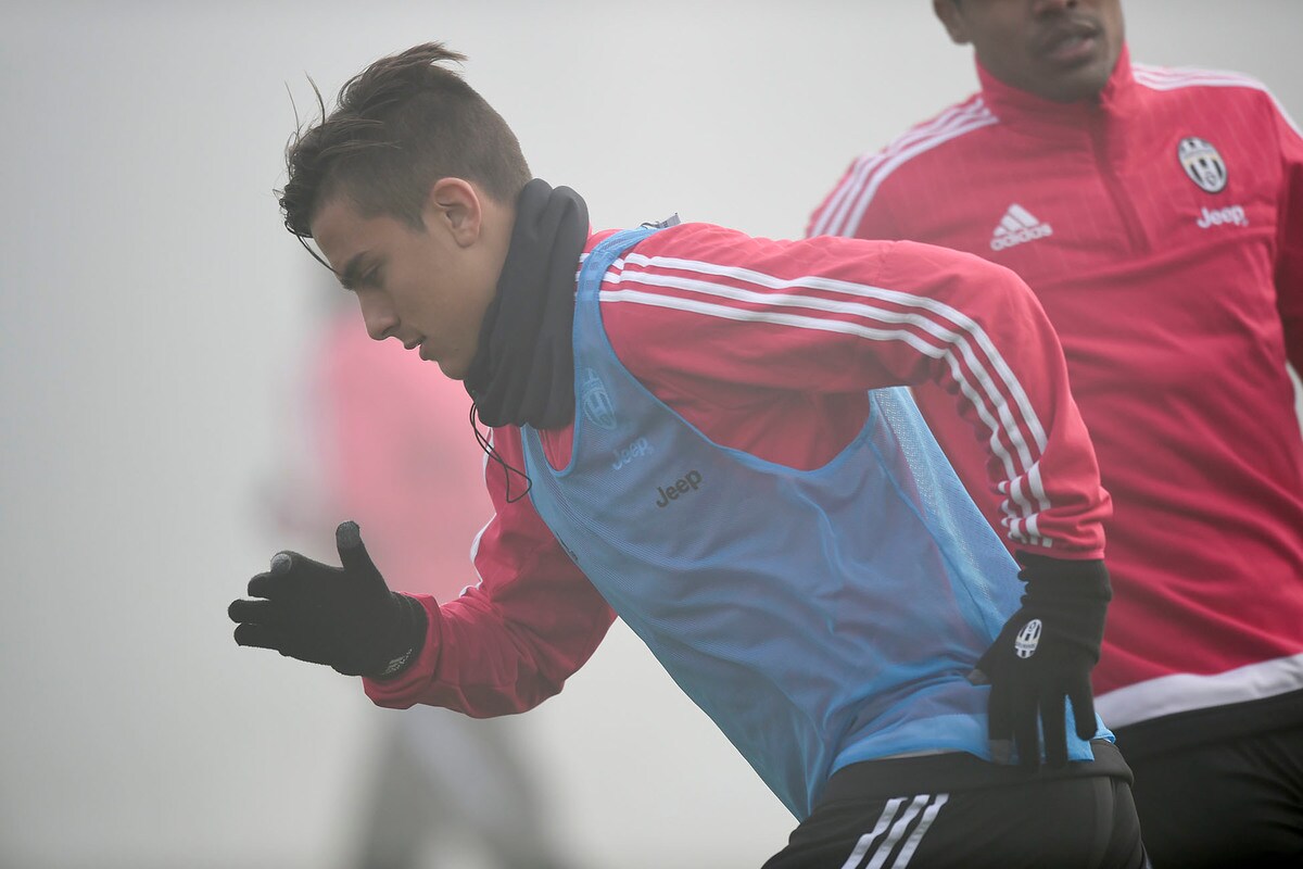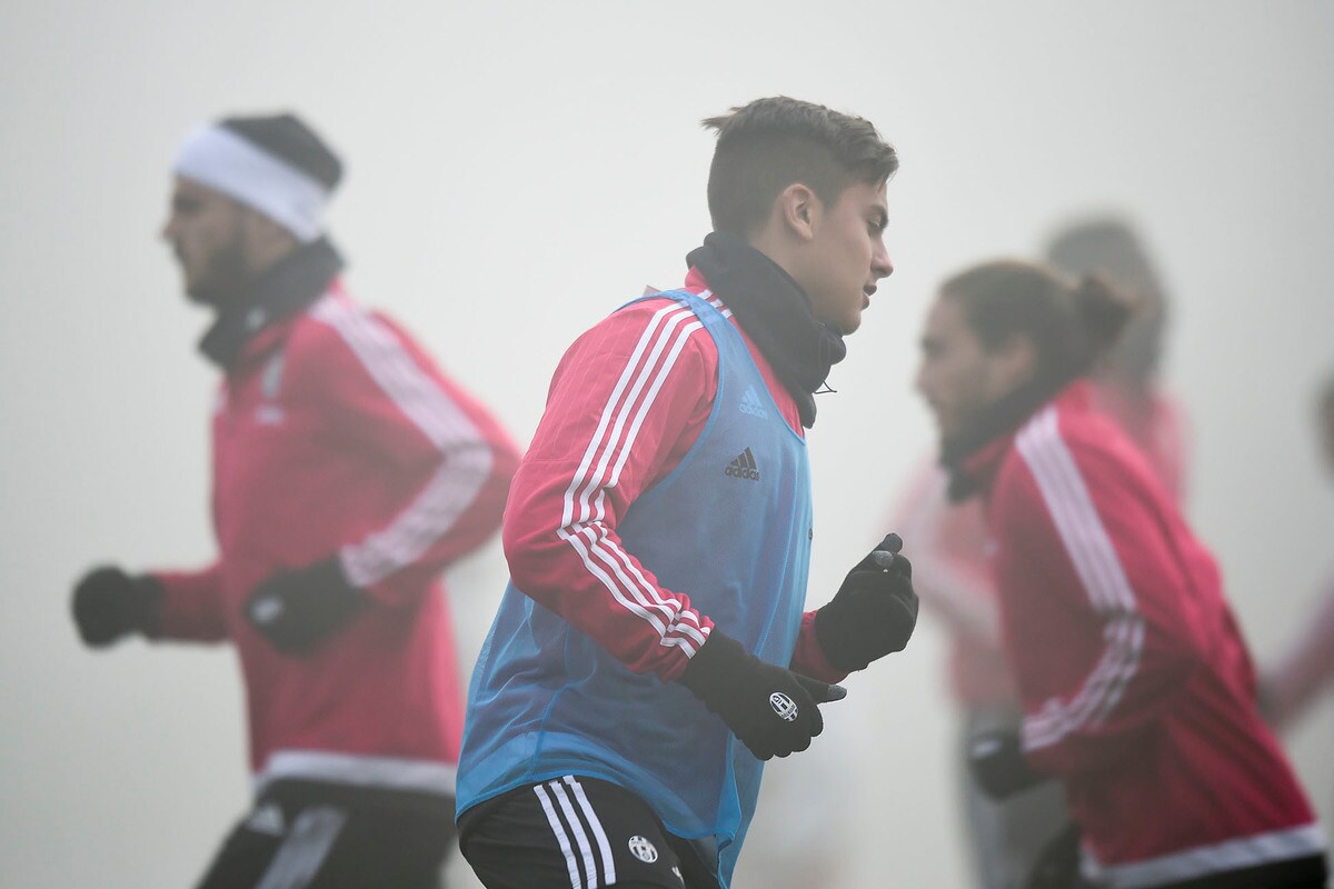 I giocatori bianconeri in campo a Vinovo per l'allenamento