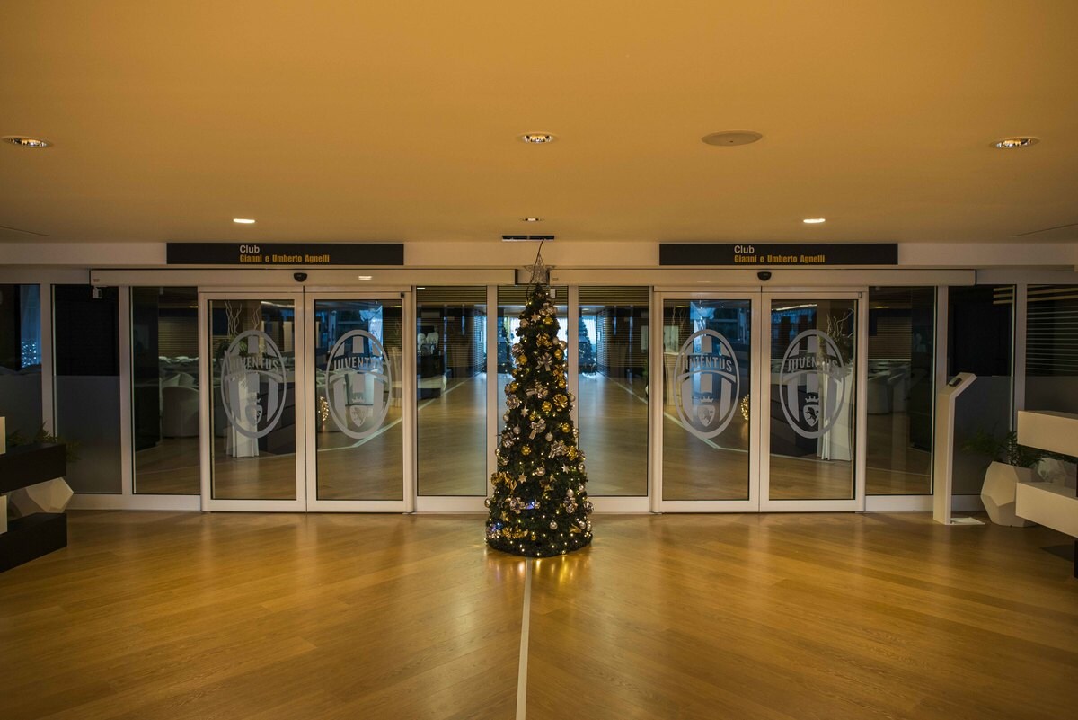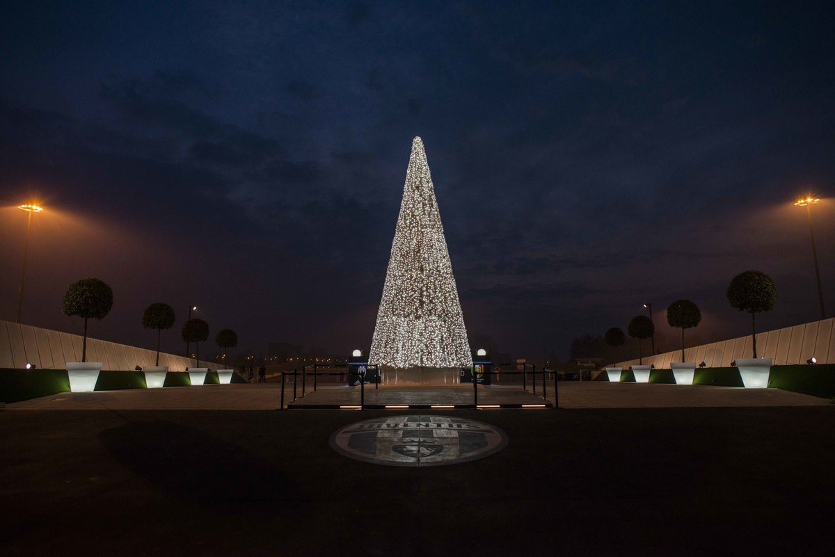 Di fronte all’atrio è stato acceso l’albero bianconero. Con otto metri d’altezza e 90mila lucine, è la prima sorpresa riservata ai tifosi per le feste