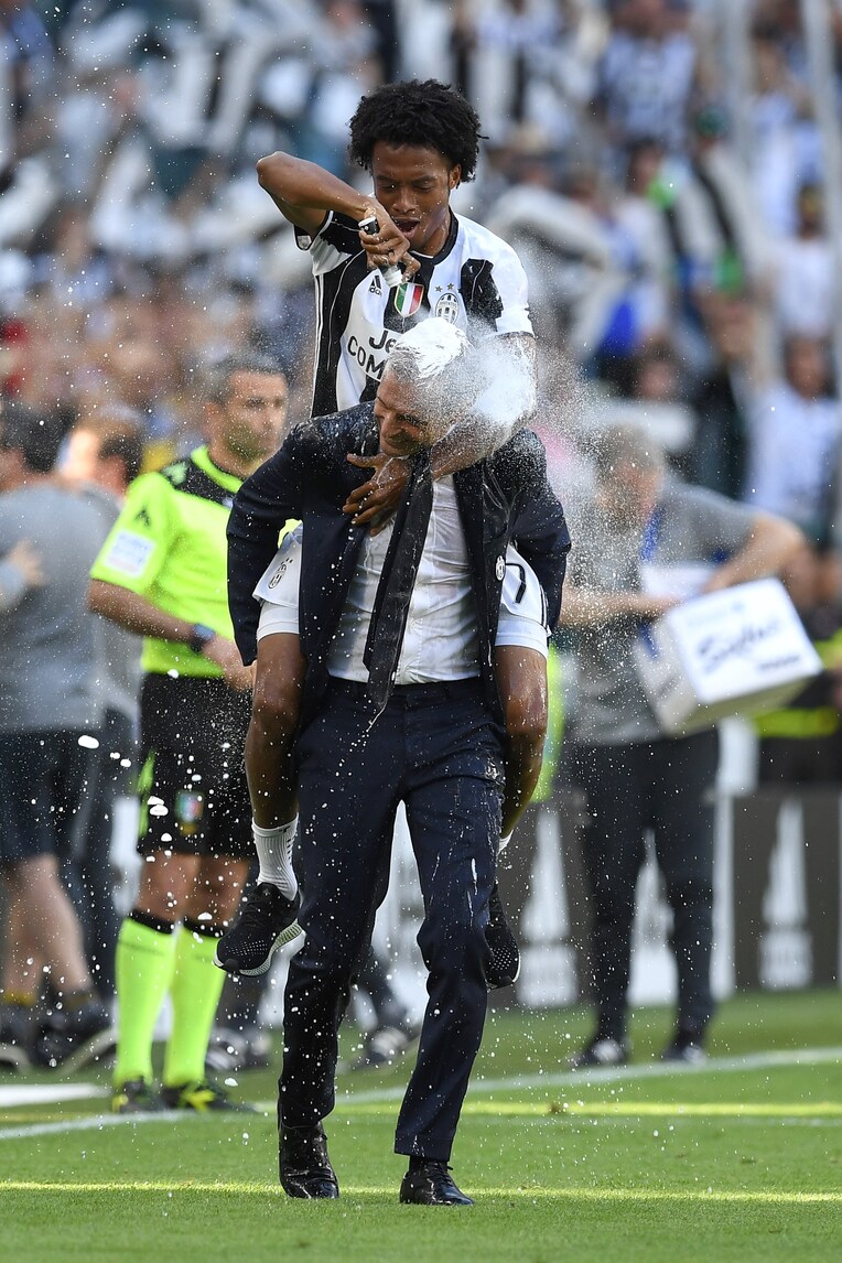 Le immagini della festa dell'allenatore della Juve per il suo terzo scudetto consecutivo a Torino