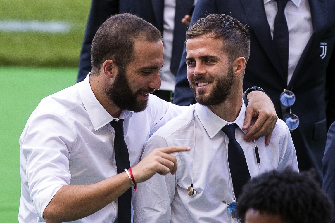 Juventus, Higuain scherza con Pjanic all'Olimpico
