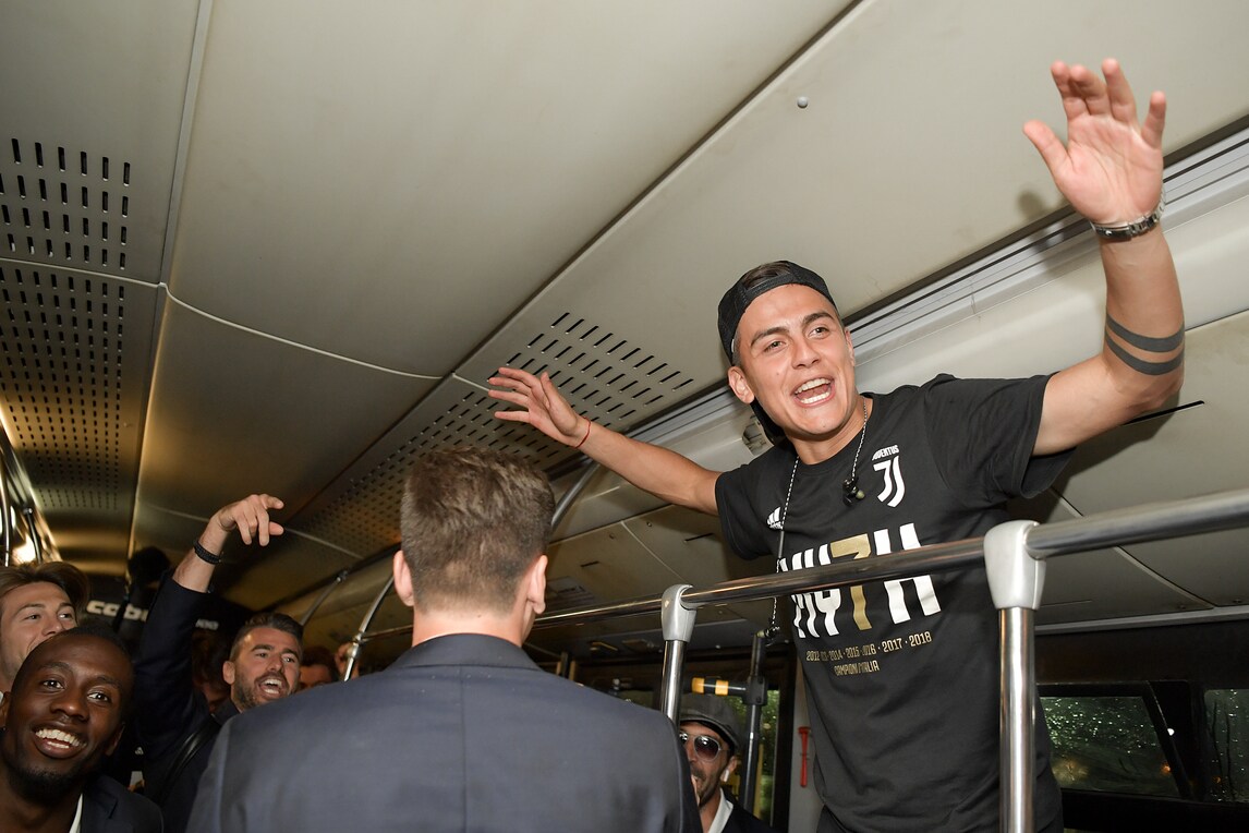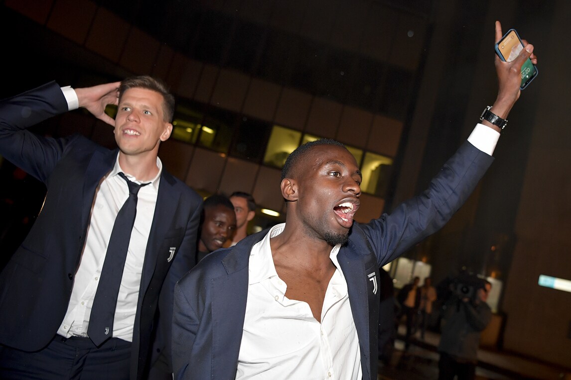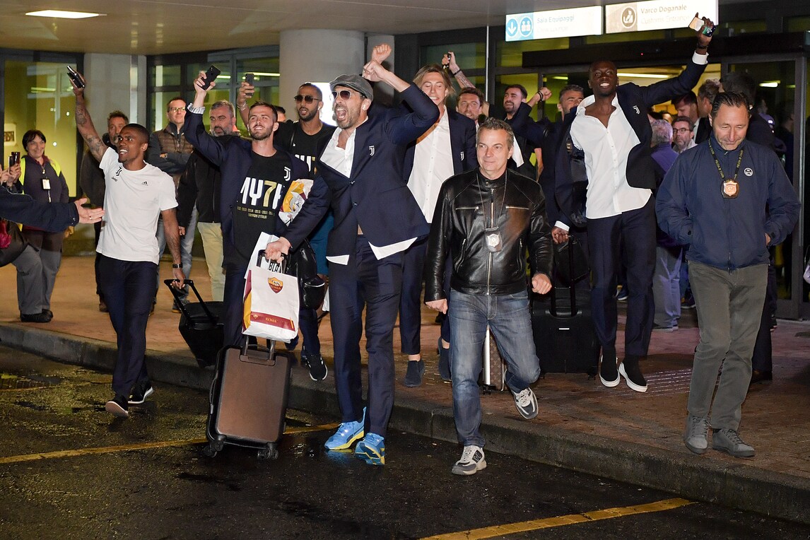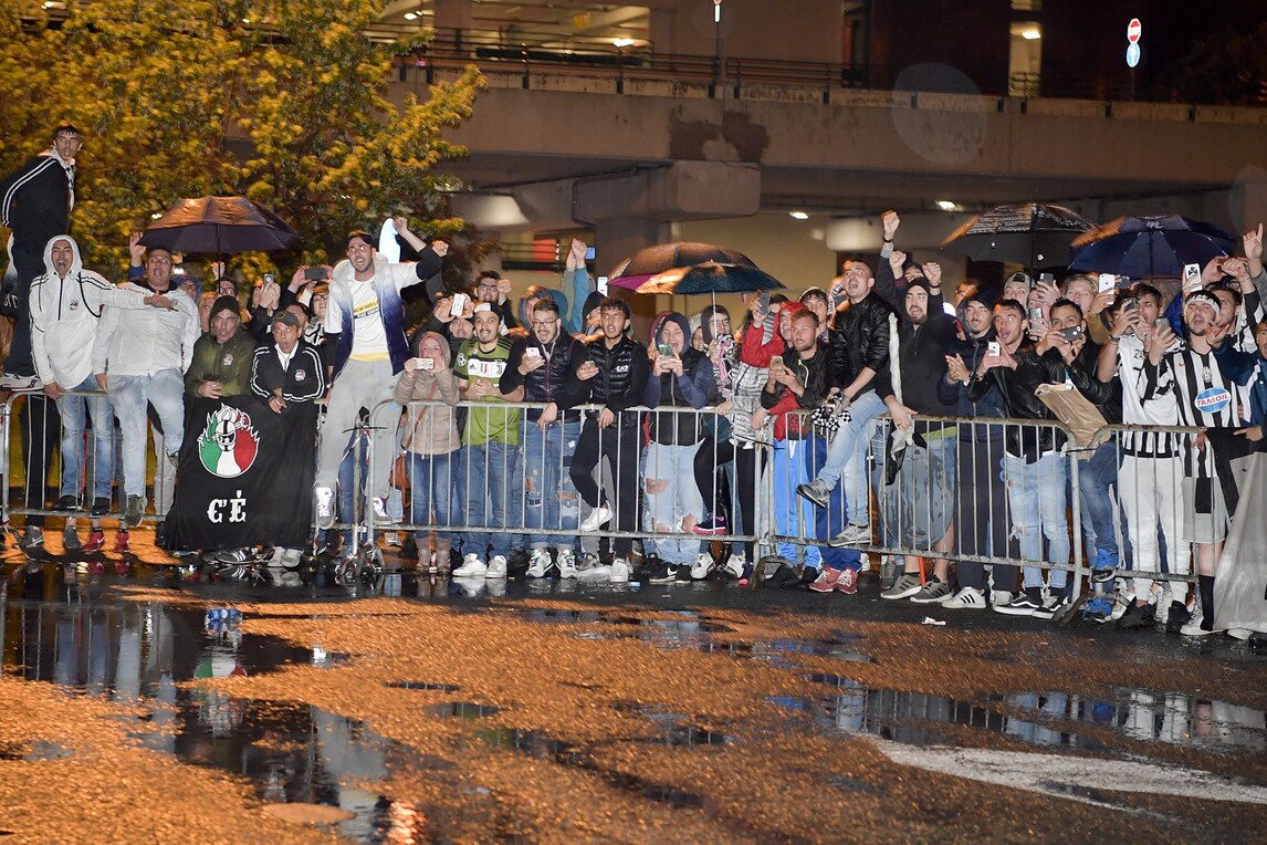 Pioggia e freddo fuori stagione non hanno fermato i tifosi, che hanno atteso l'arrivo della squadra a Torino Caselle in piena notte. I bianconeri sono usciti a piedi dall'aeroporto per un momento di festa per il 34° scudetto