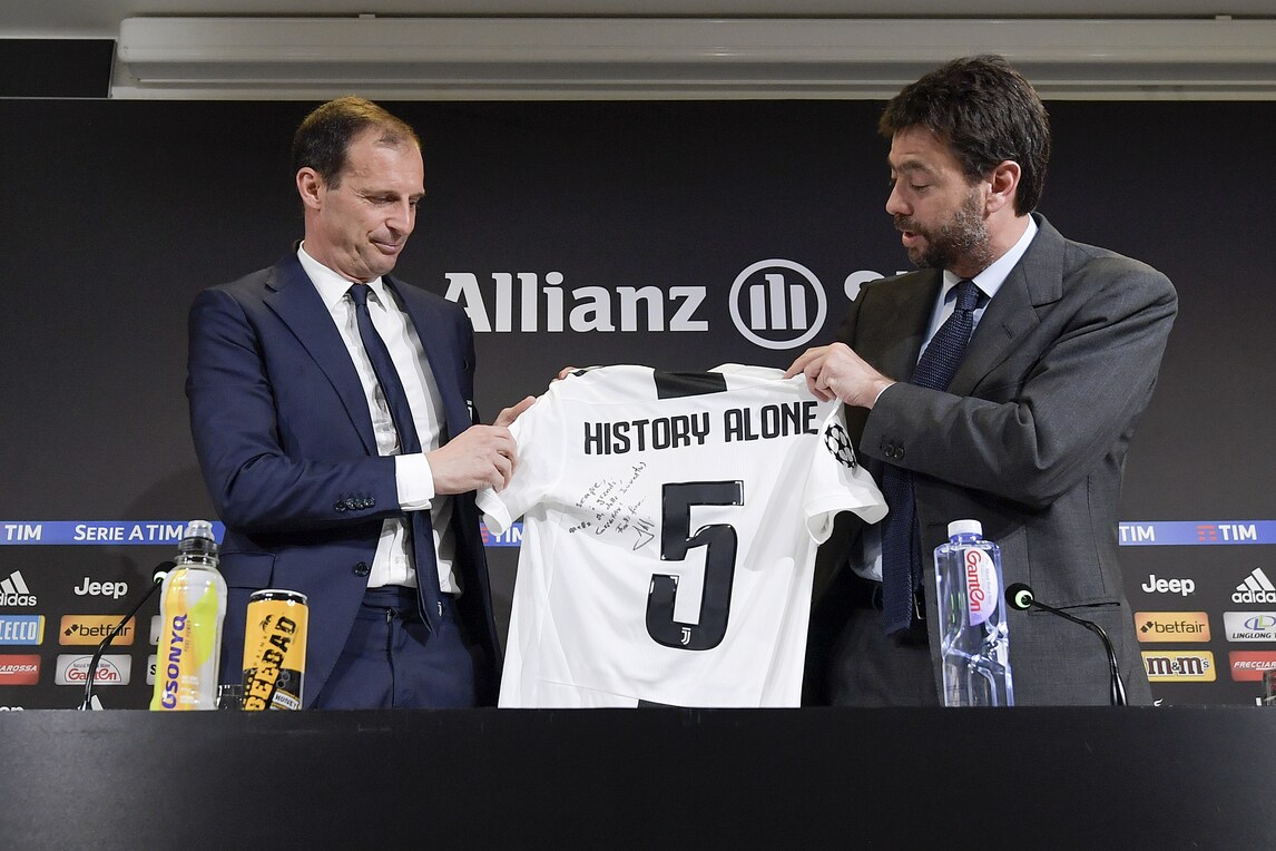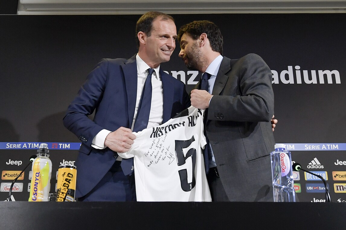 Il tecnico toscano non ha retto all'emozione durante l'incontro con la stampa assieme al presidente Andrea Agnelli
