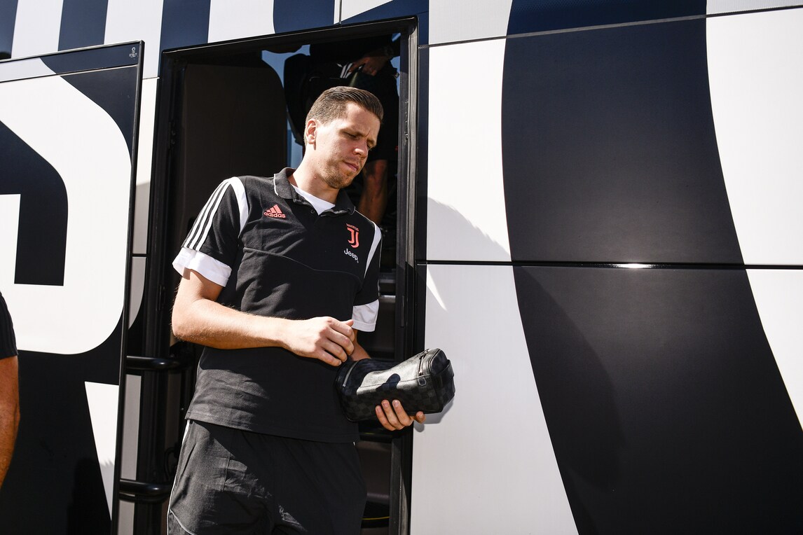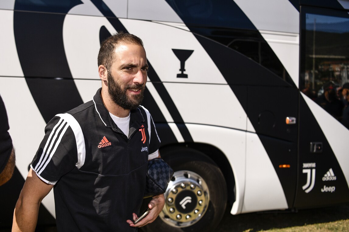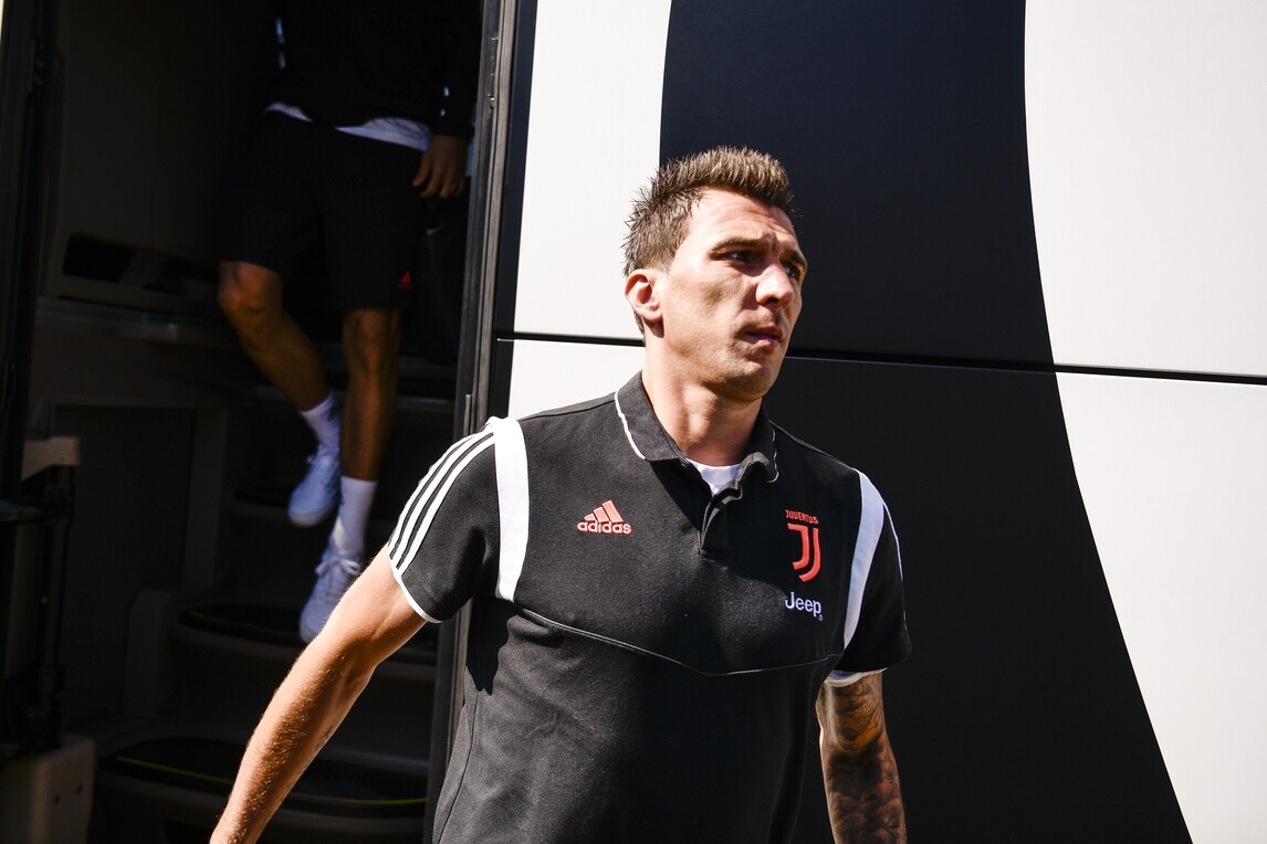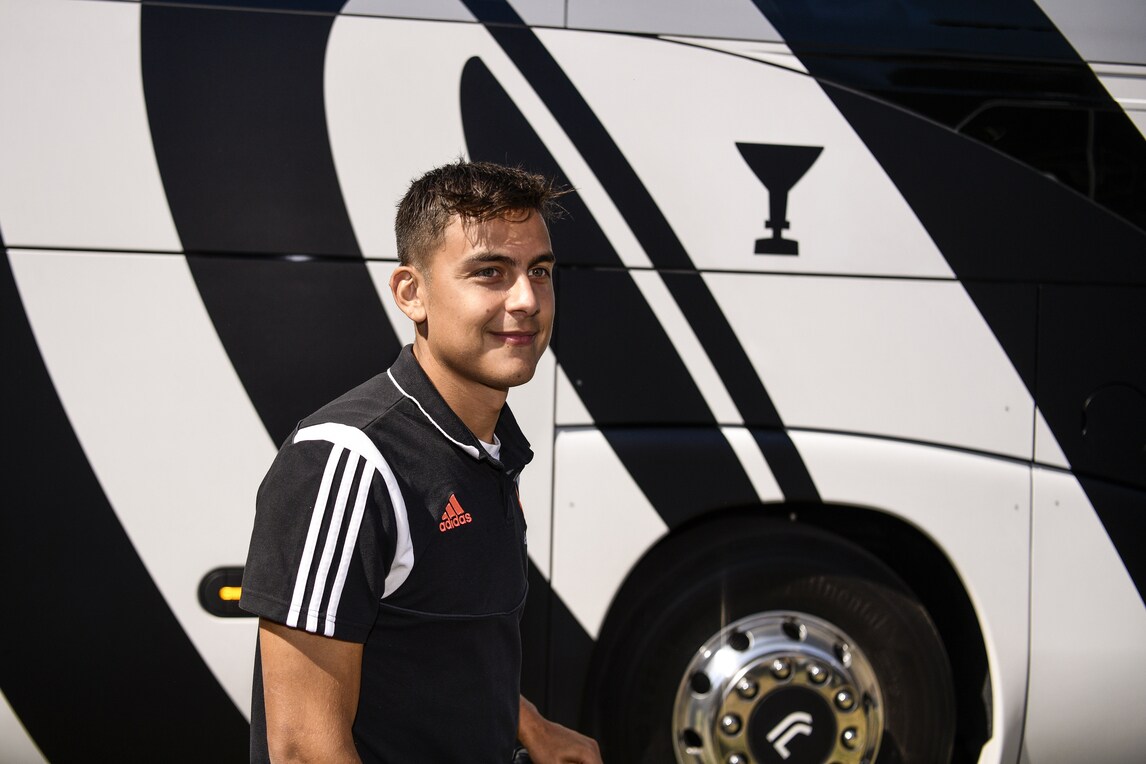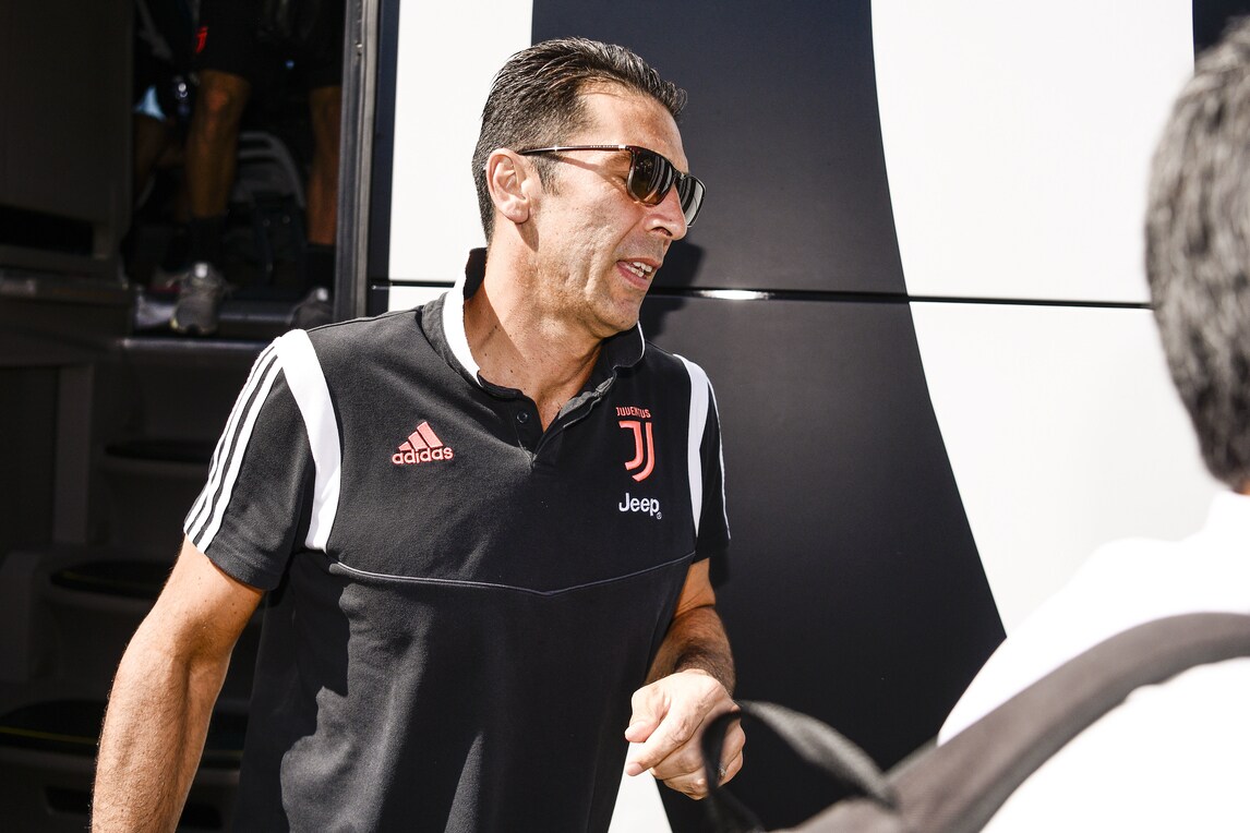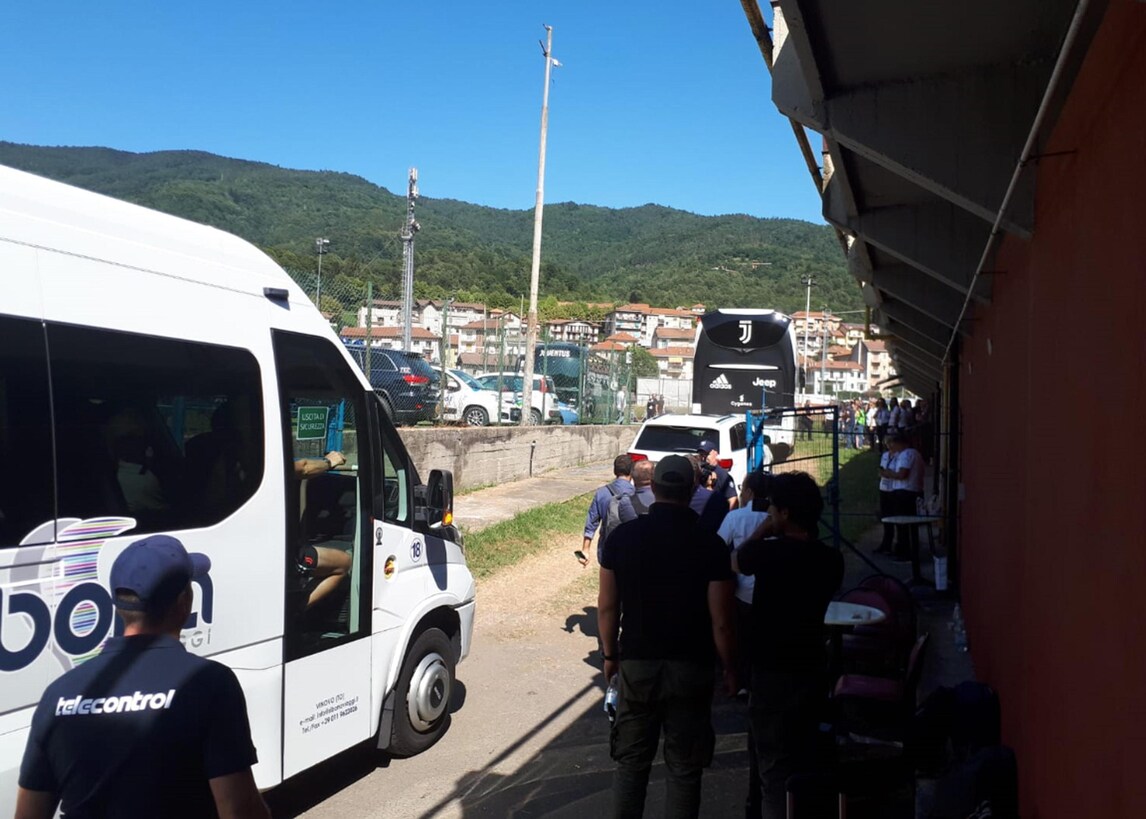 I campioni bianconeri scendono dal pullman prima della classica amichevole in famiglia