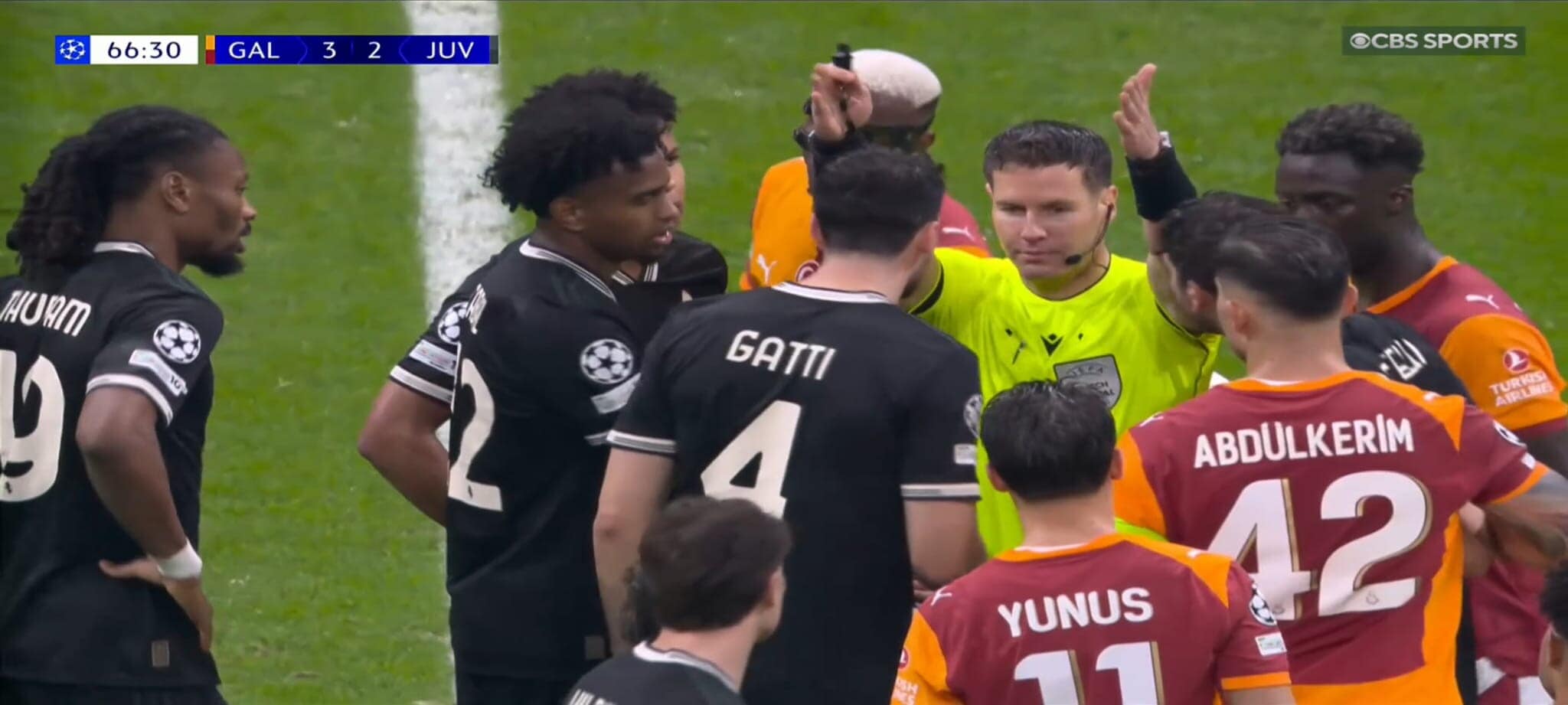 Due gialli in 20 minuti: la fotosequenza della serata folle di Cabal in Galatasaray-Juve