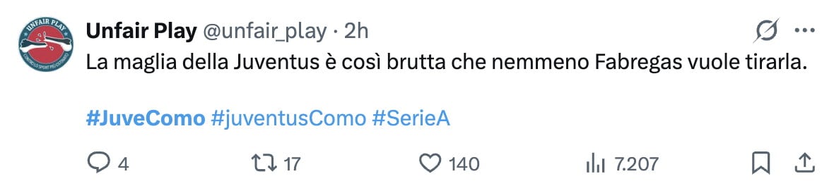 Tanti fotomontaggi spuntati in giro per il web dopo l'inattesa sconfitta interna della squadra bianconera contro i lariani di Fabregas