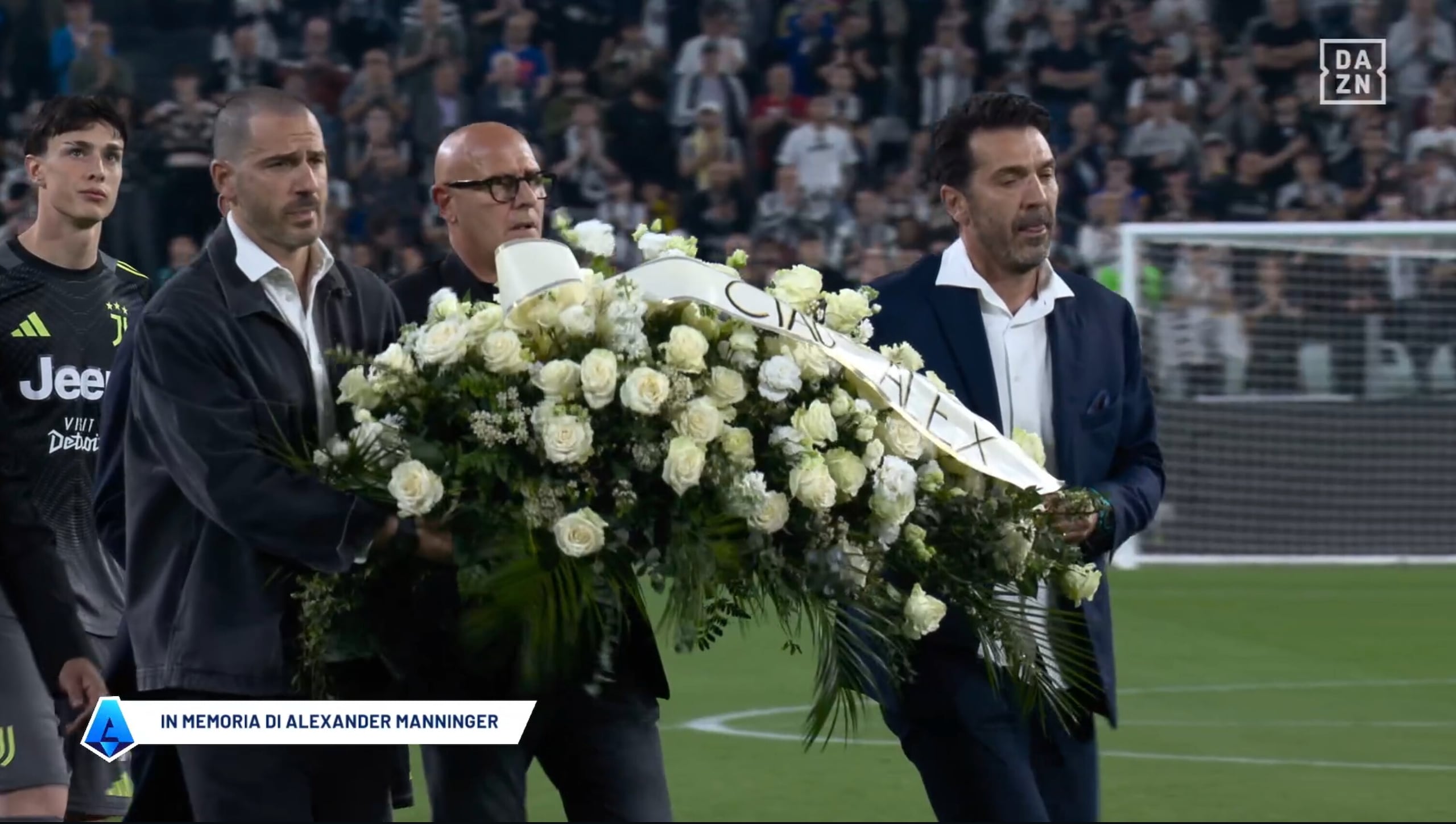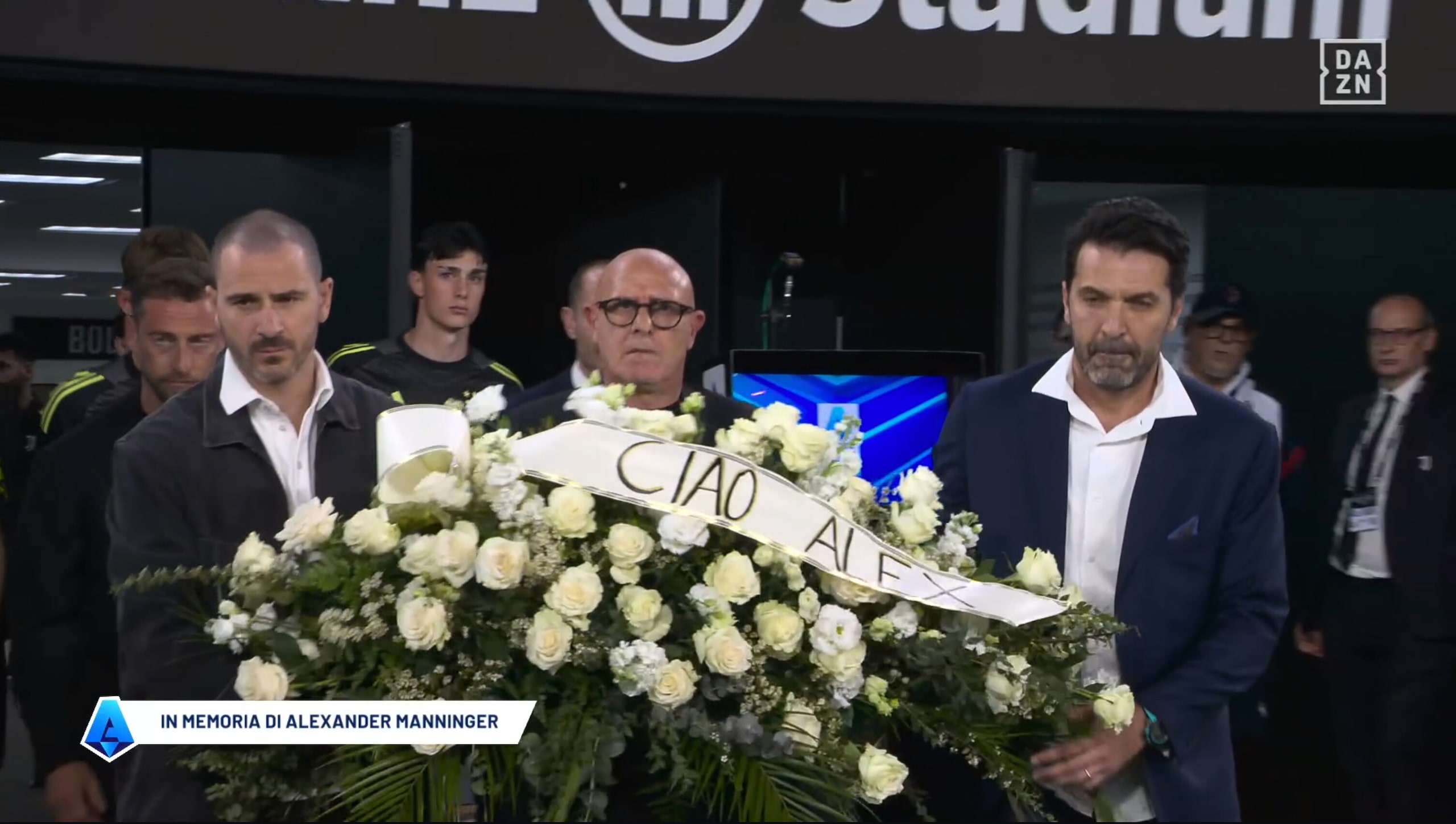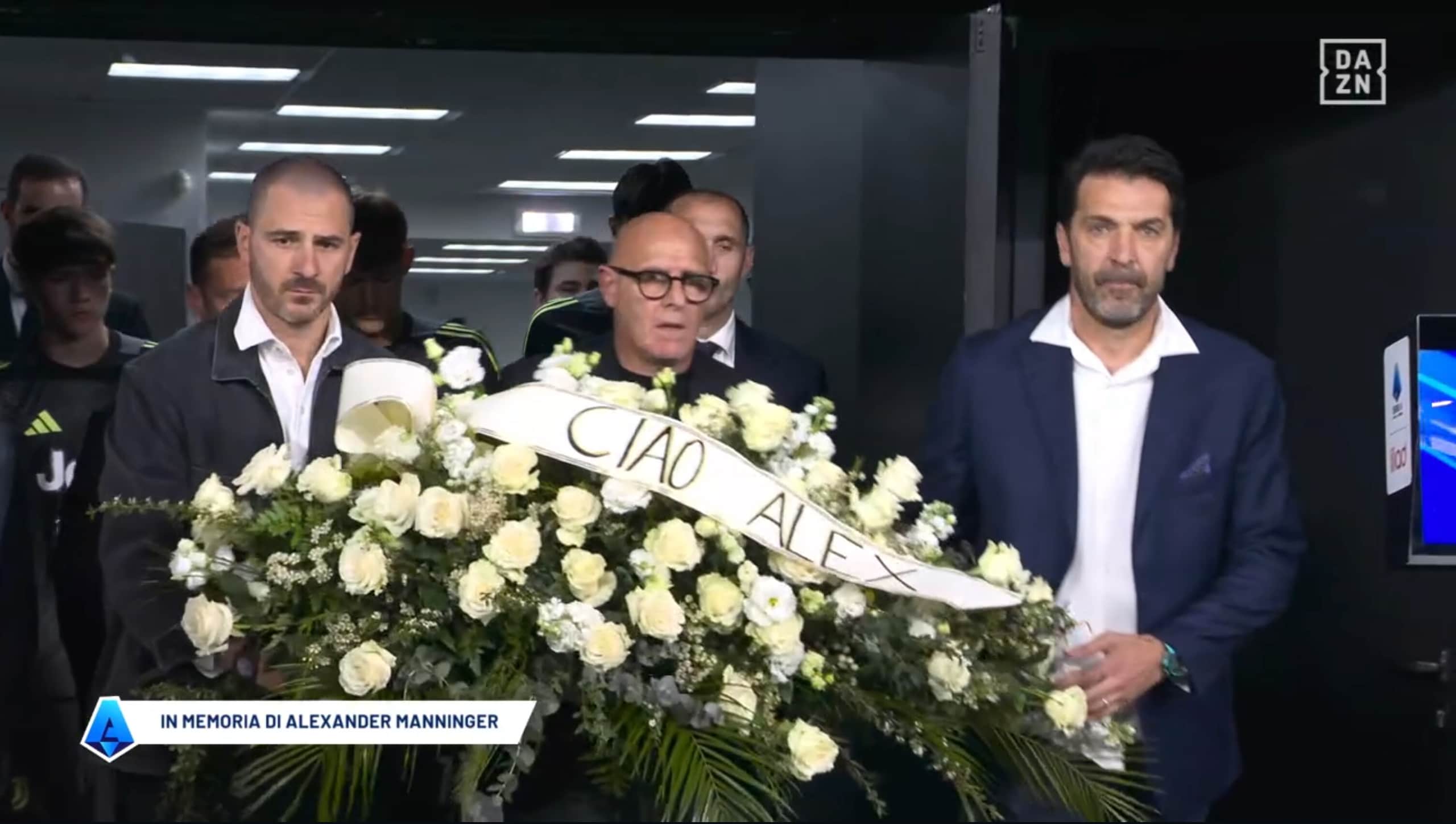 Buffon e Bonucci in lacrime durante il ricordo di Manninger prima di Juve-Bologna
