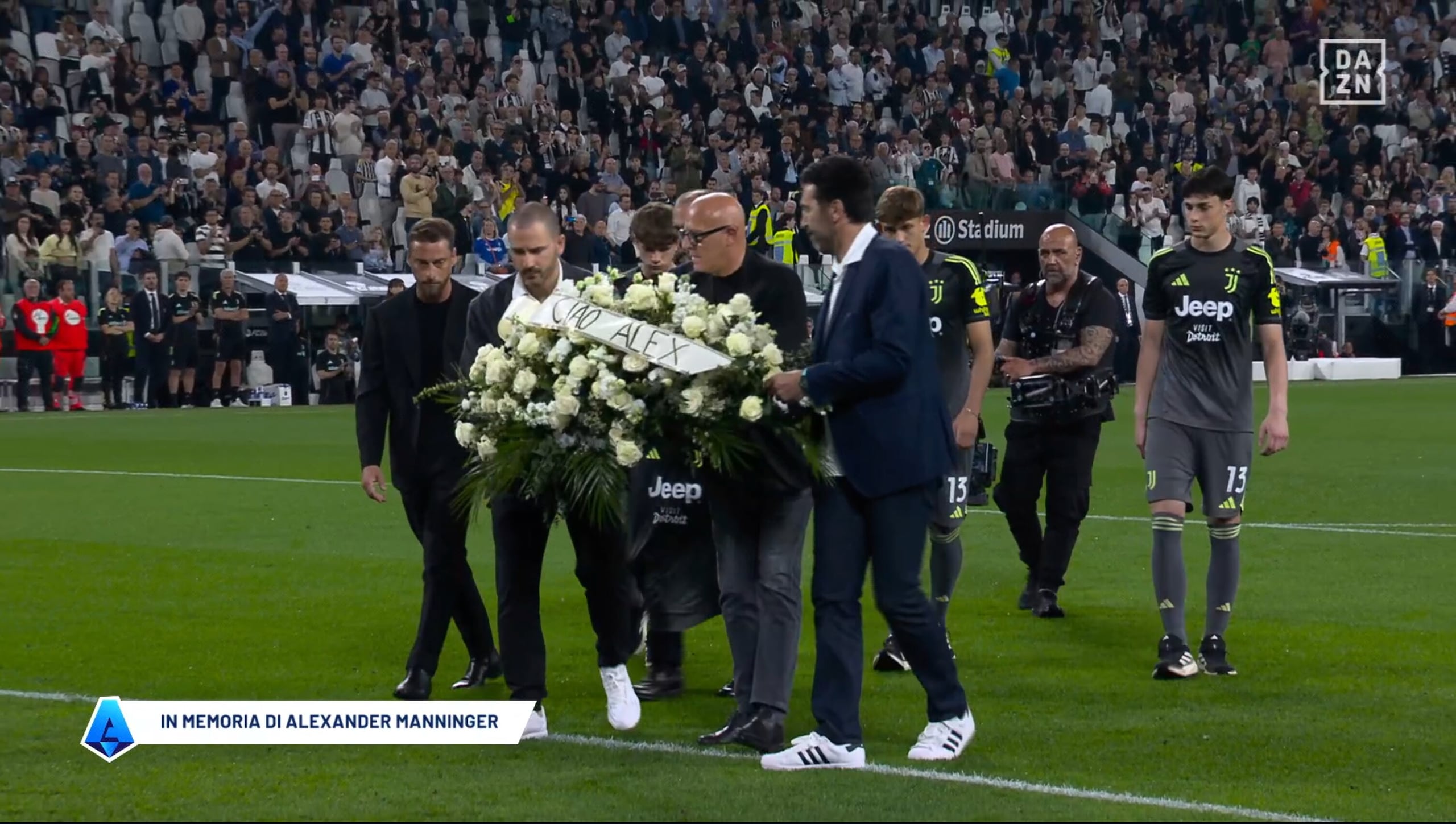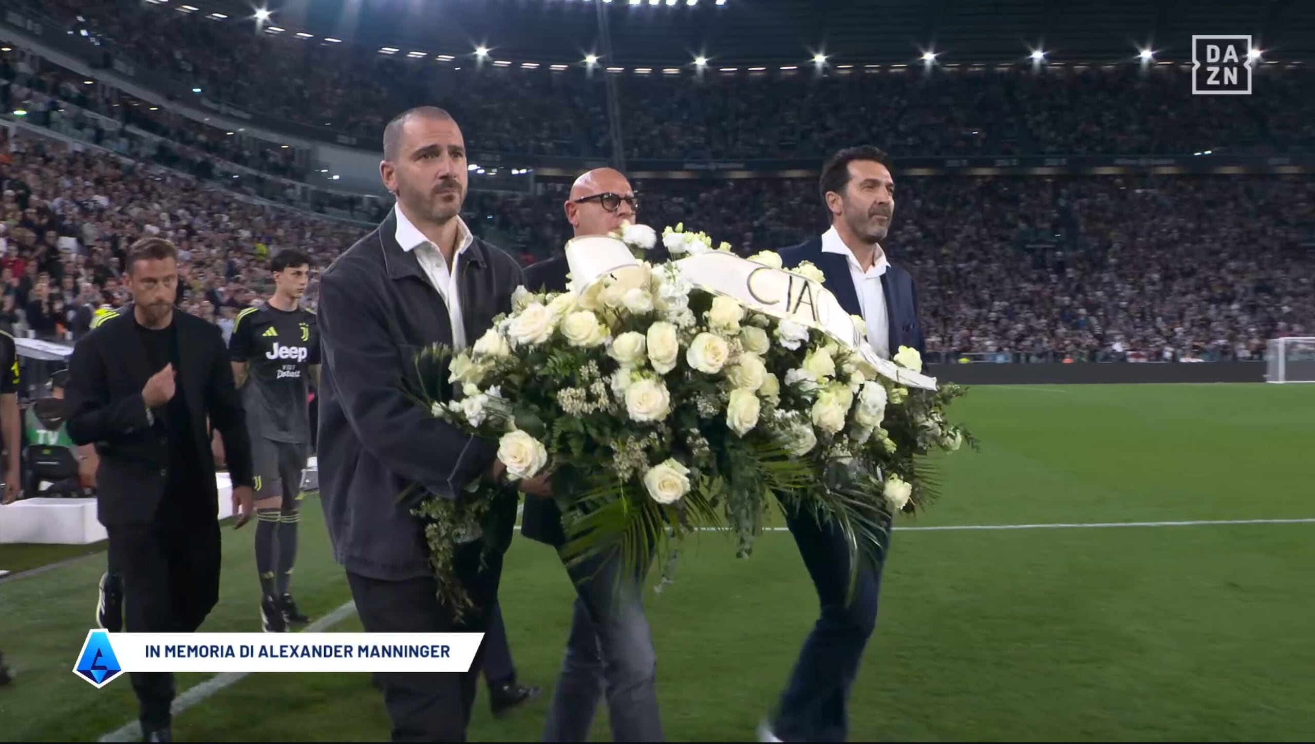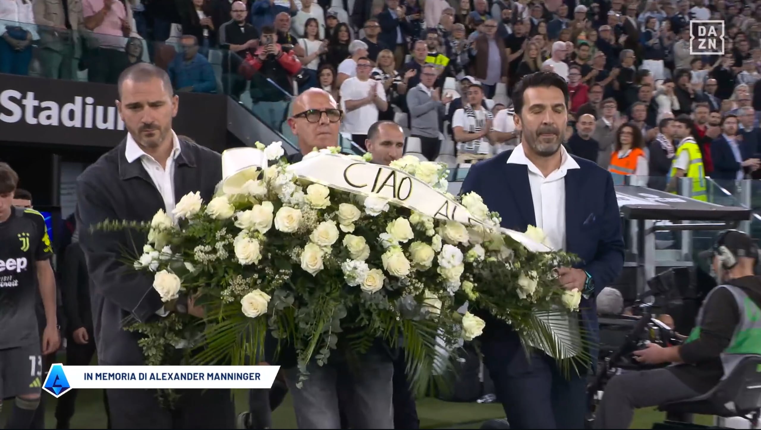 Buffon e Bonucci in lacrime durante il ricordo di Manninger prima di Juve-Bologna