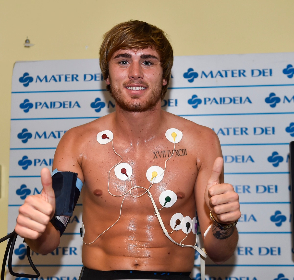 Il neo acquisto biancoceleste Patric alla clinica Paideia di Roma per le visite mediche di rito.