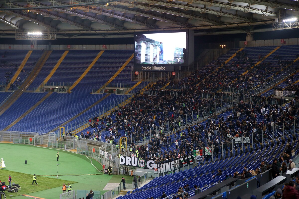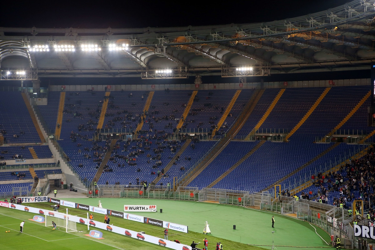 Curve e tribune semideserte dell'Olimpico per la sfida di Serie A