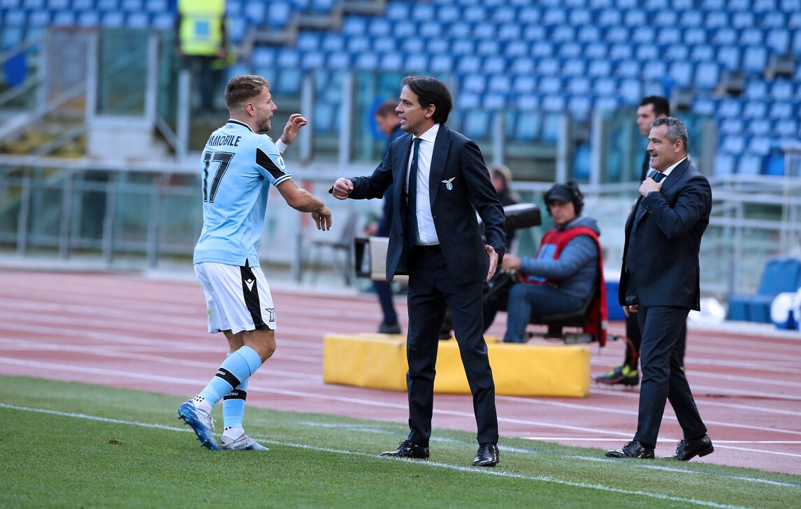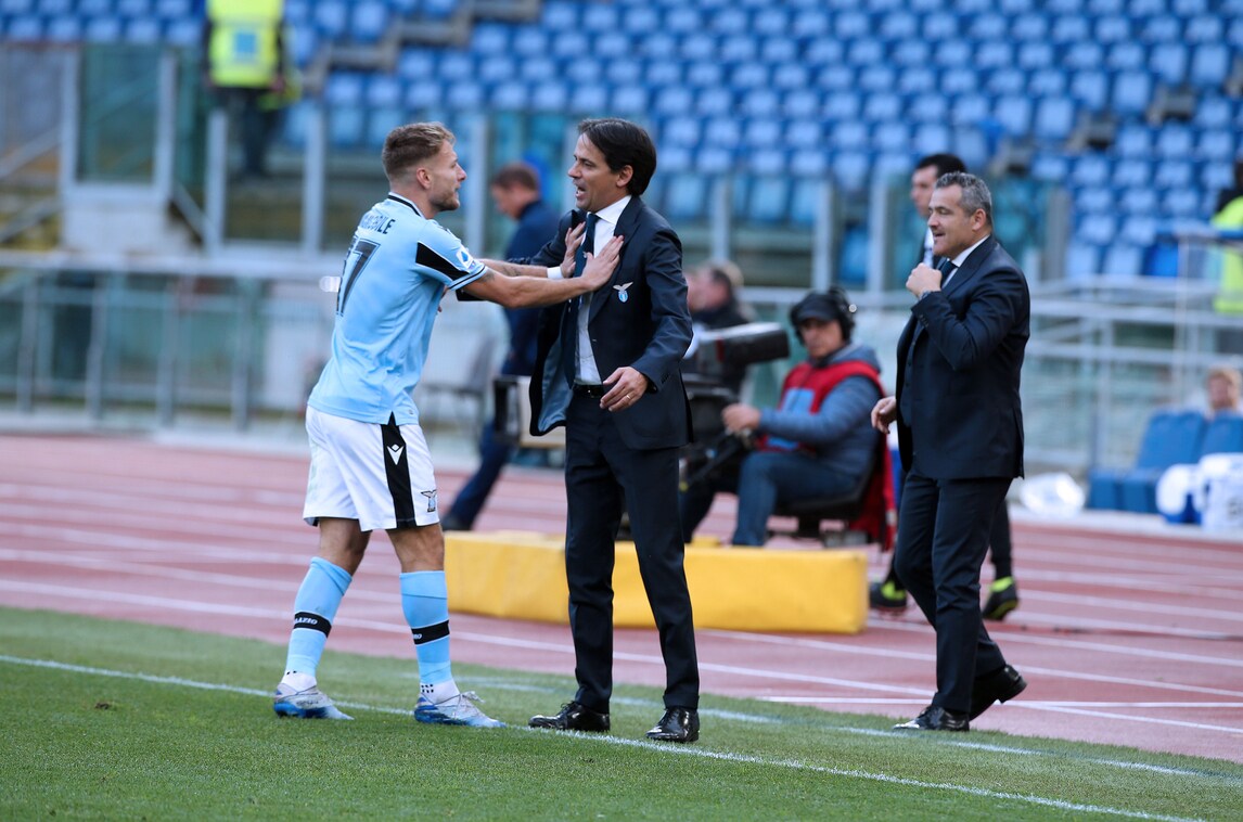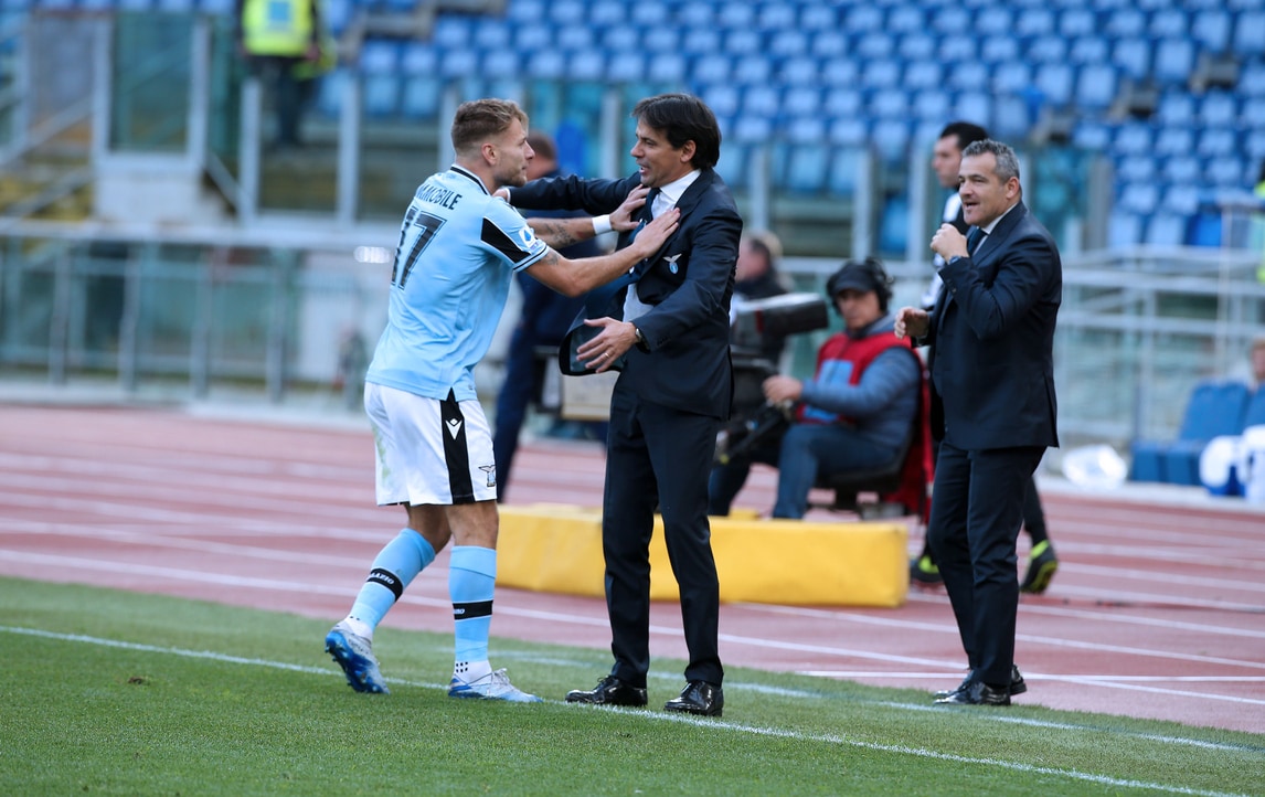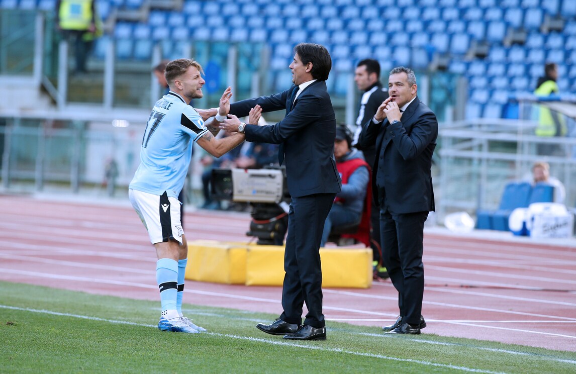 Il curioso festeggiamento dell'attaccante della Lazio con il suo allenatore dopo la rete del 3-0 alla Spal