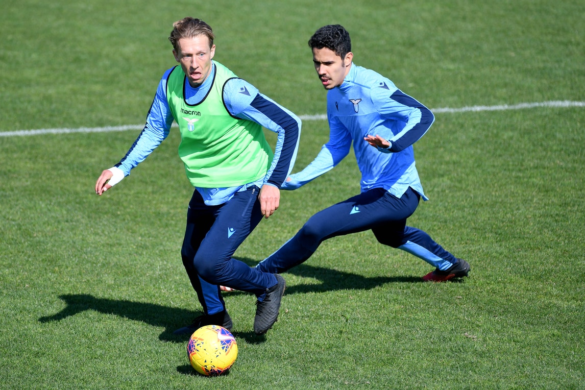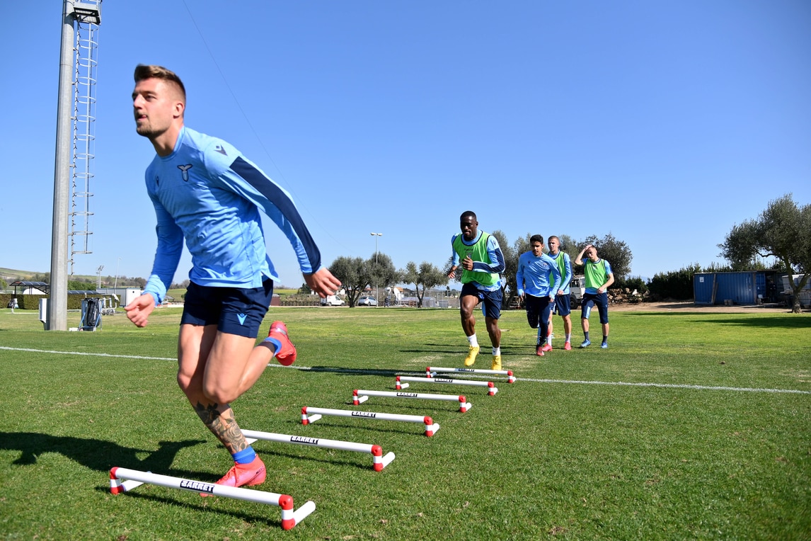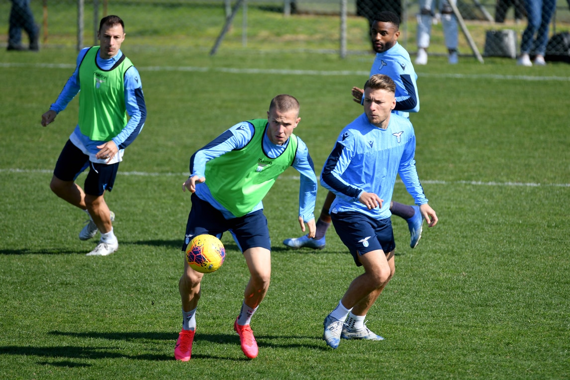 La squadra biancoceleste prepara la sfida di domenica alle 12:30 in casa del Genoa all'insegna del lavoro e della serenità: le immagini