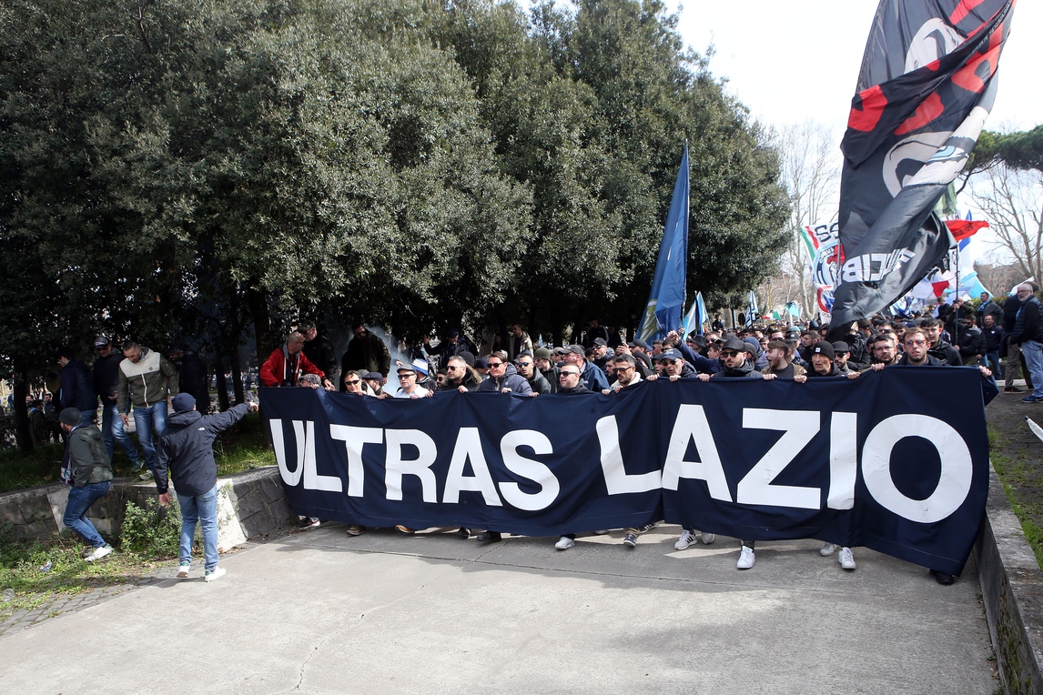 Prima della partita con il Bologna i tifosi hanno camminato verso lo stadio Olimpico con uno striscione che riportava il nuovo nome