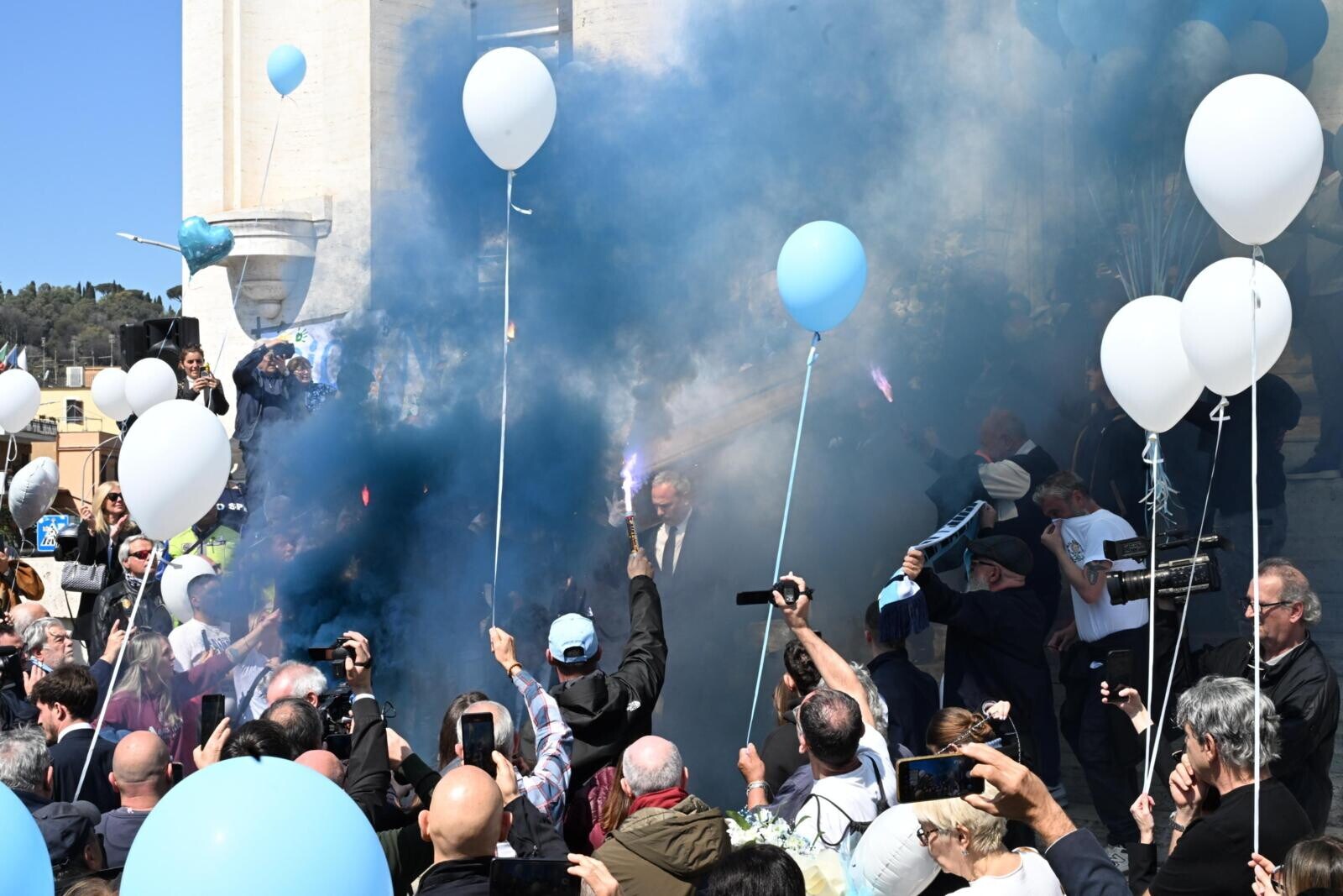 I tifosi della Lazio commossi, la Roma ha mandato una corona: tutte le immagini dell'ultimo saluto a Ponte Milvio