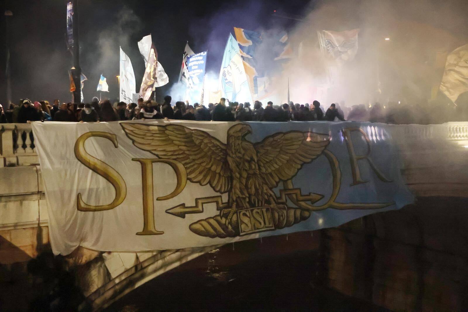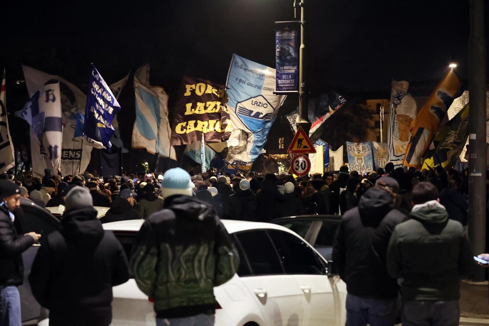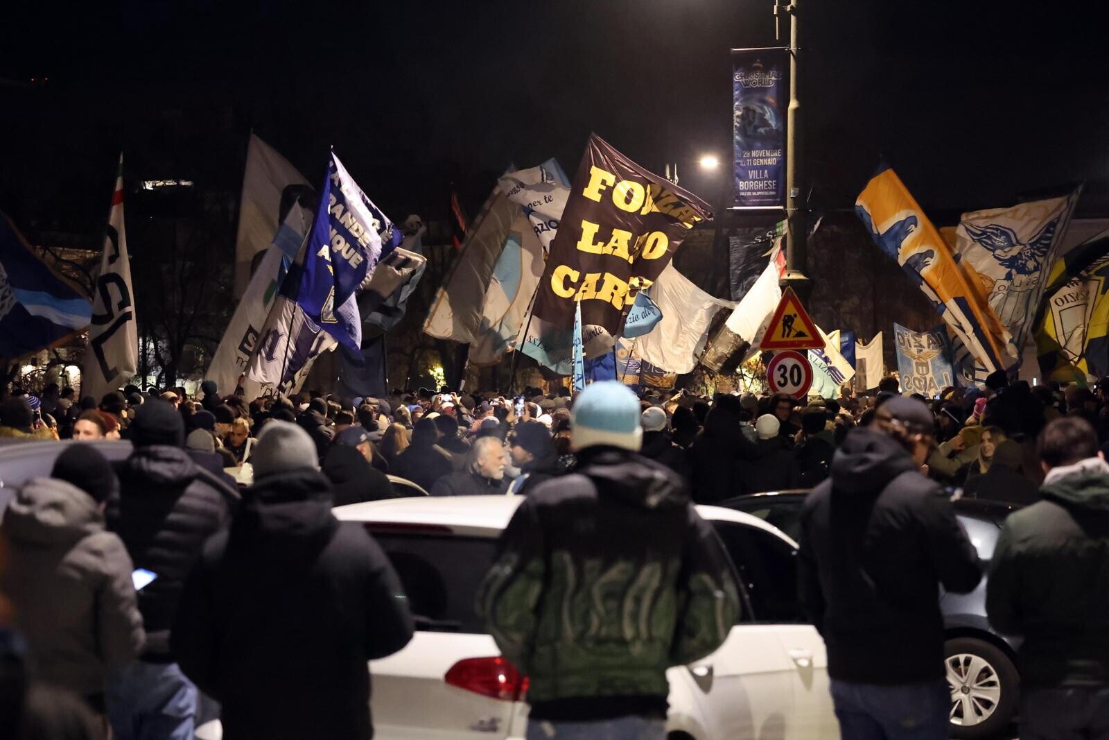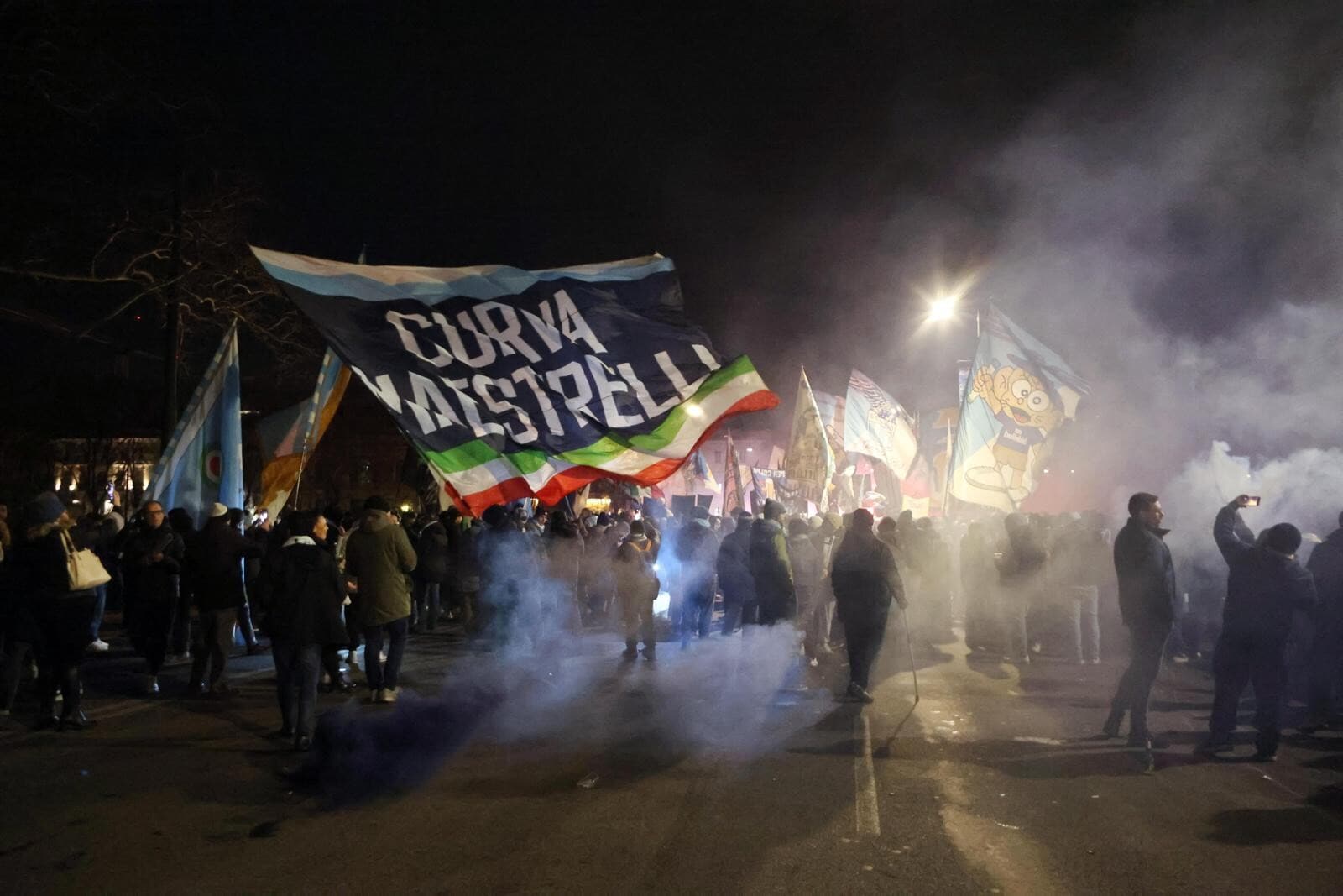 Un tripudio di cori, bandiere e fumogeni accende i festeggiamenti biancocelesti per il compleanno del club, fondato il 9 gennaio del 1900