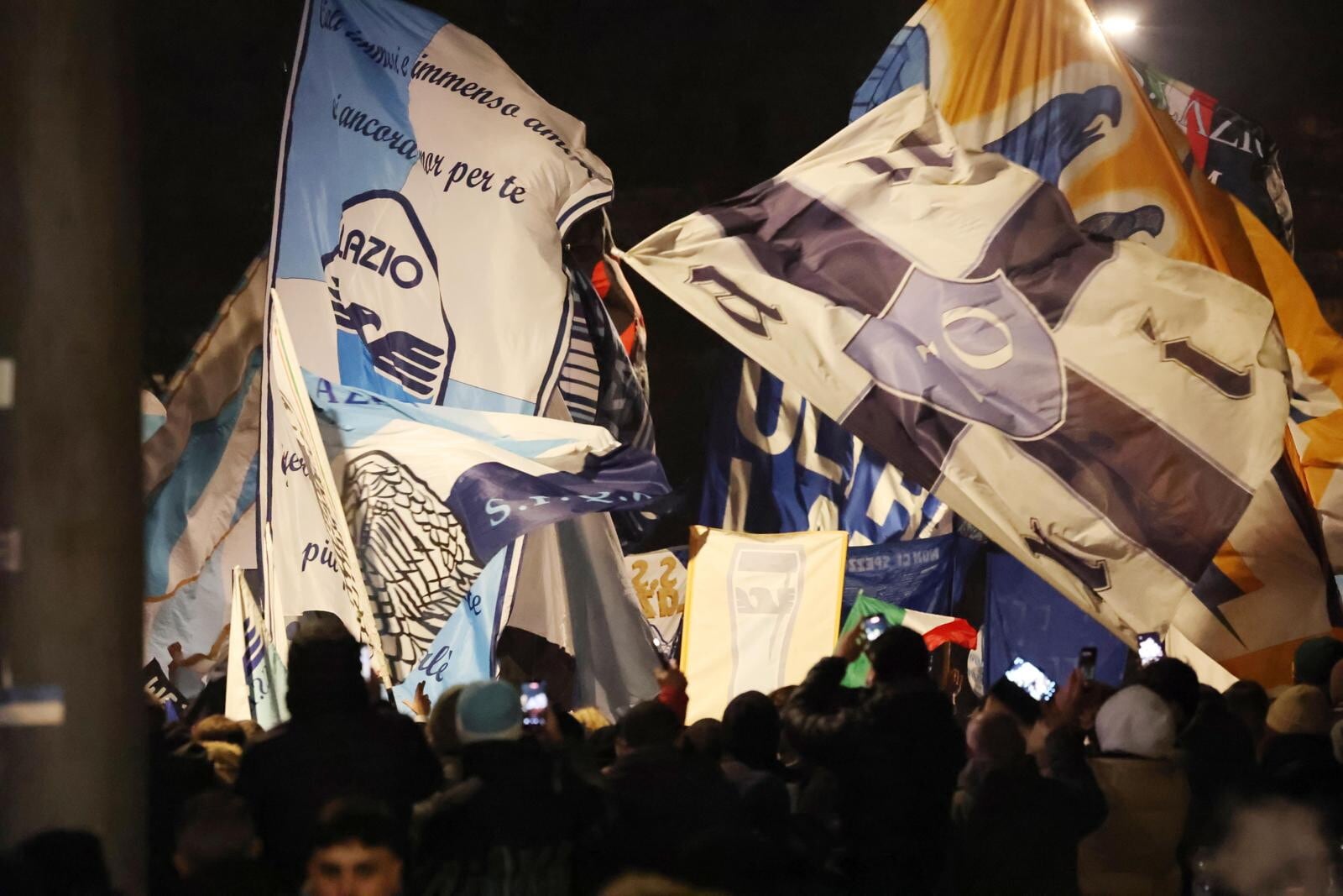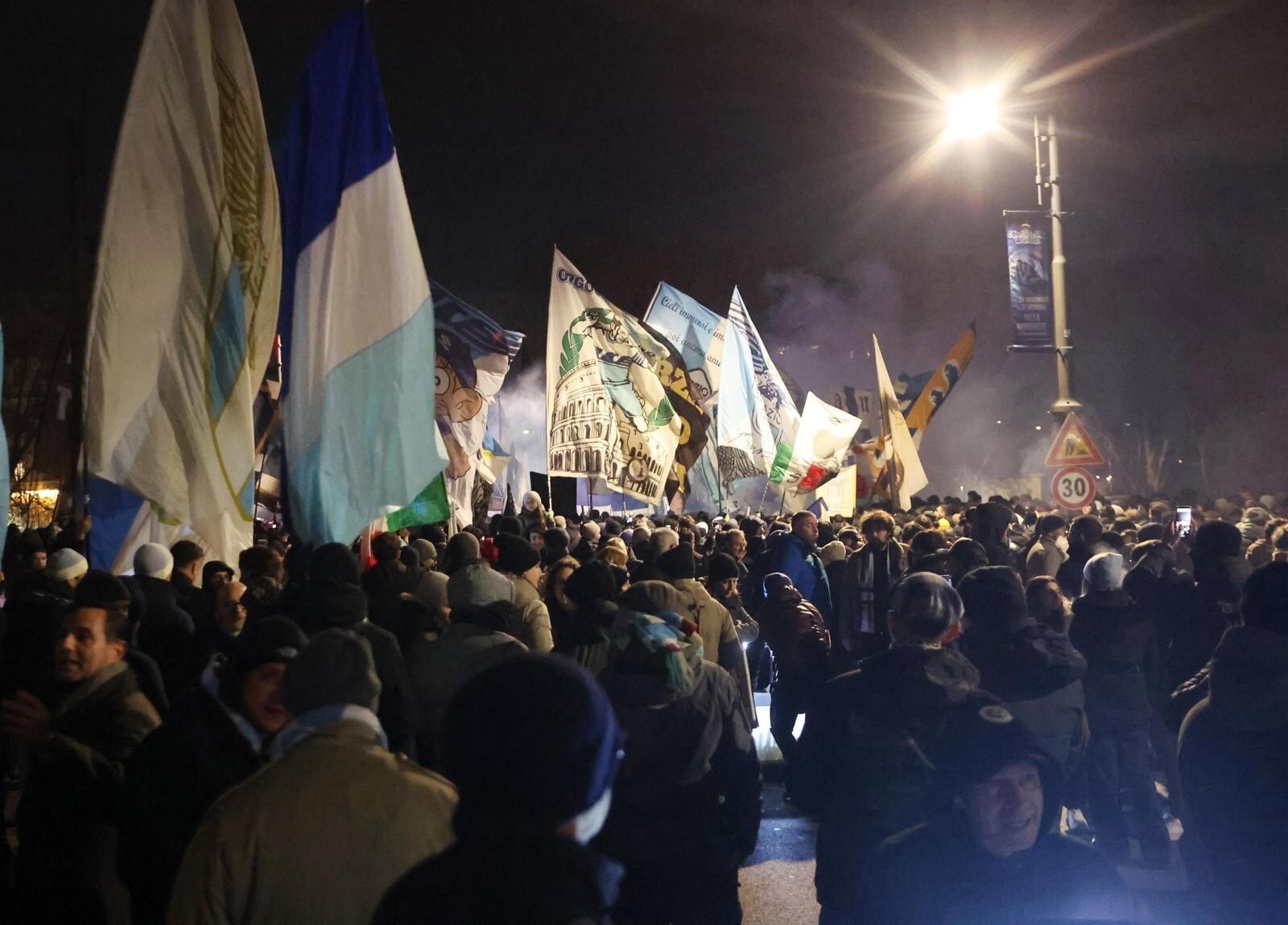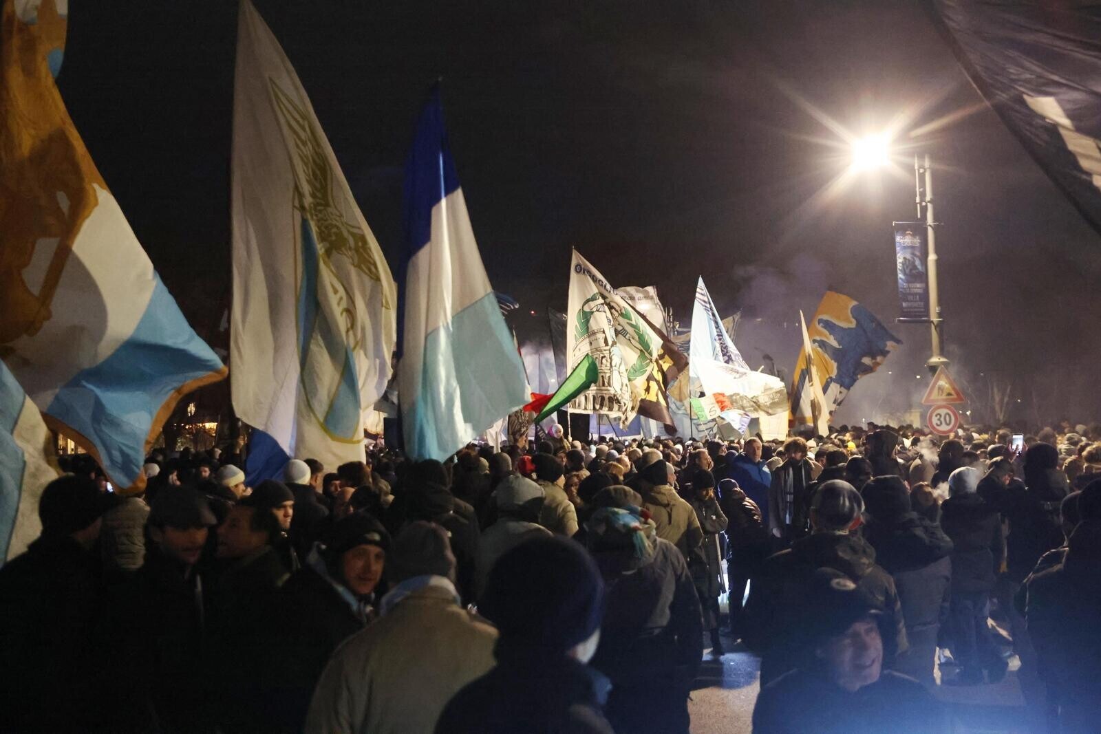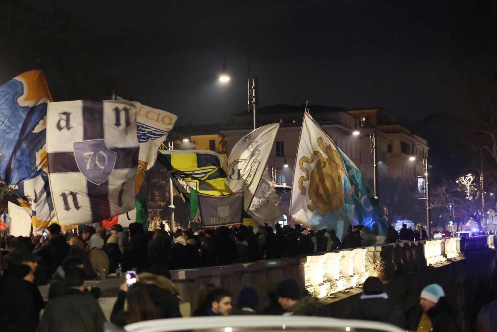 Un tripudio di cori, bandiere e fumogeni accende i festeggiamenti biancocelesti per il compleanno del club, fondato il 9 gennaio del 1900