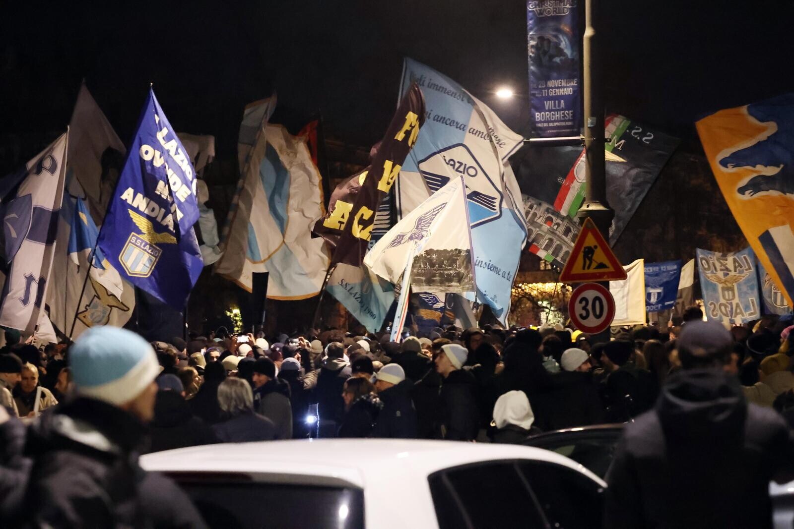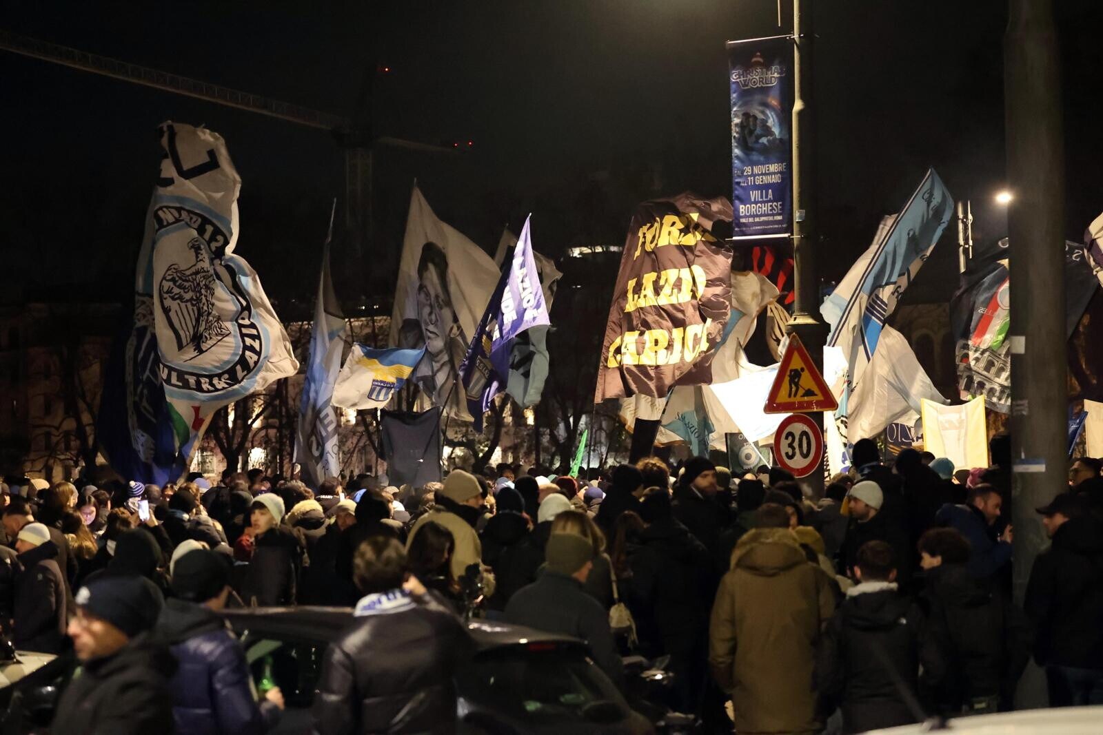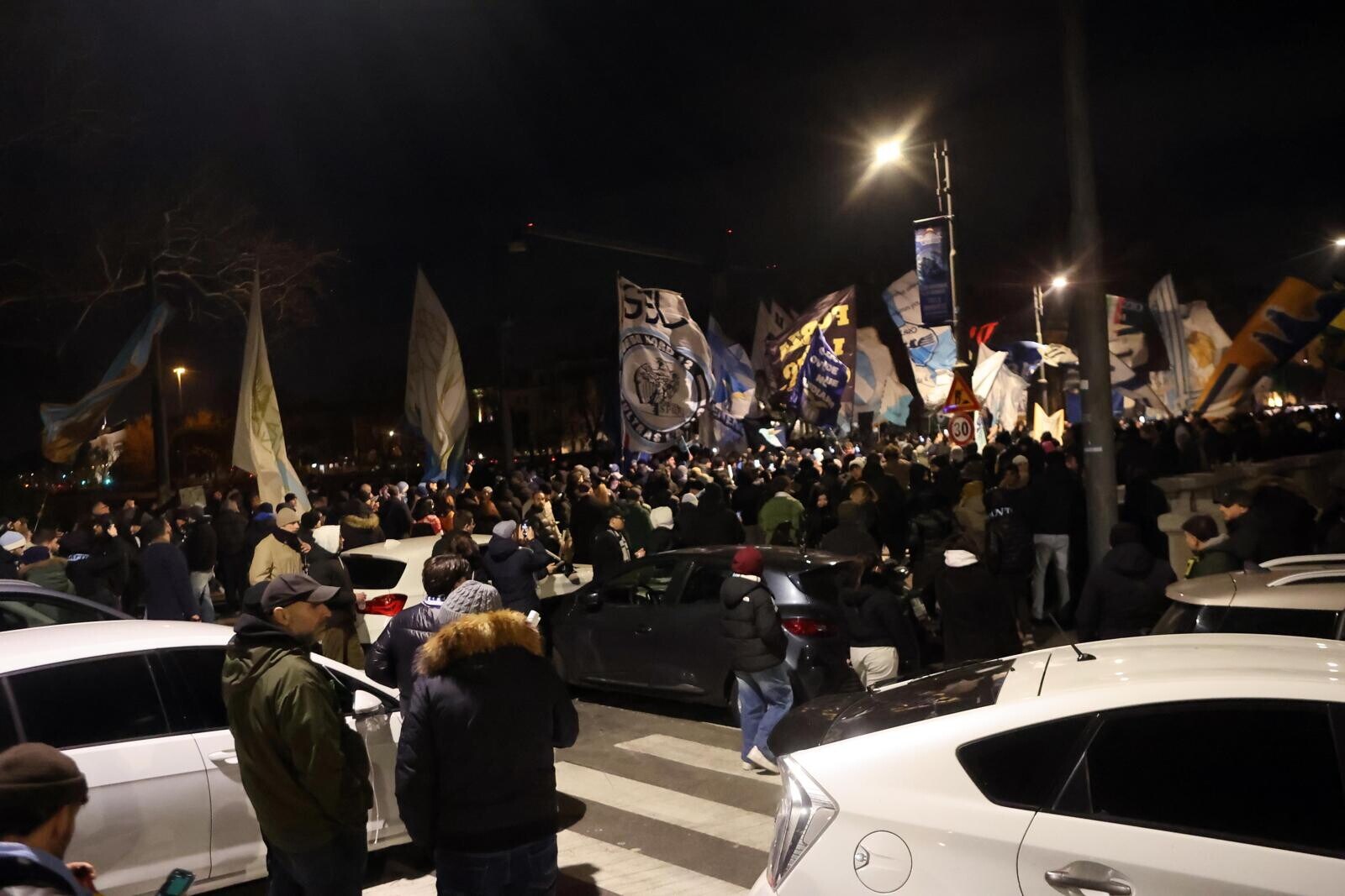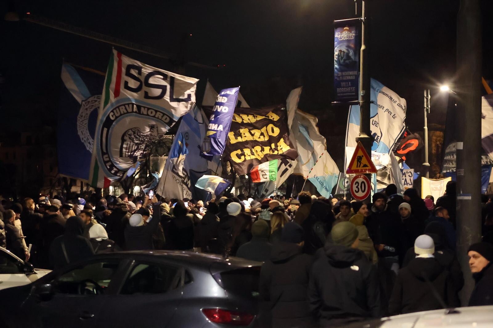 Un tripudio di cori, bandiere e fumogeni accende i festeggiamenti biancocelesti per il compleanno del club, fondato il 9 gennaio del 1900