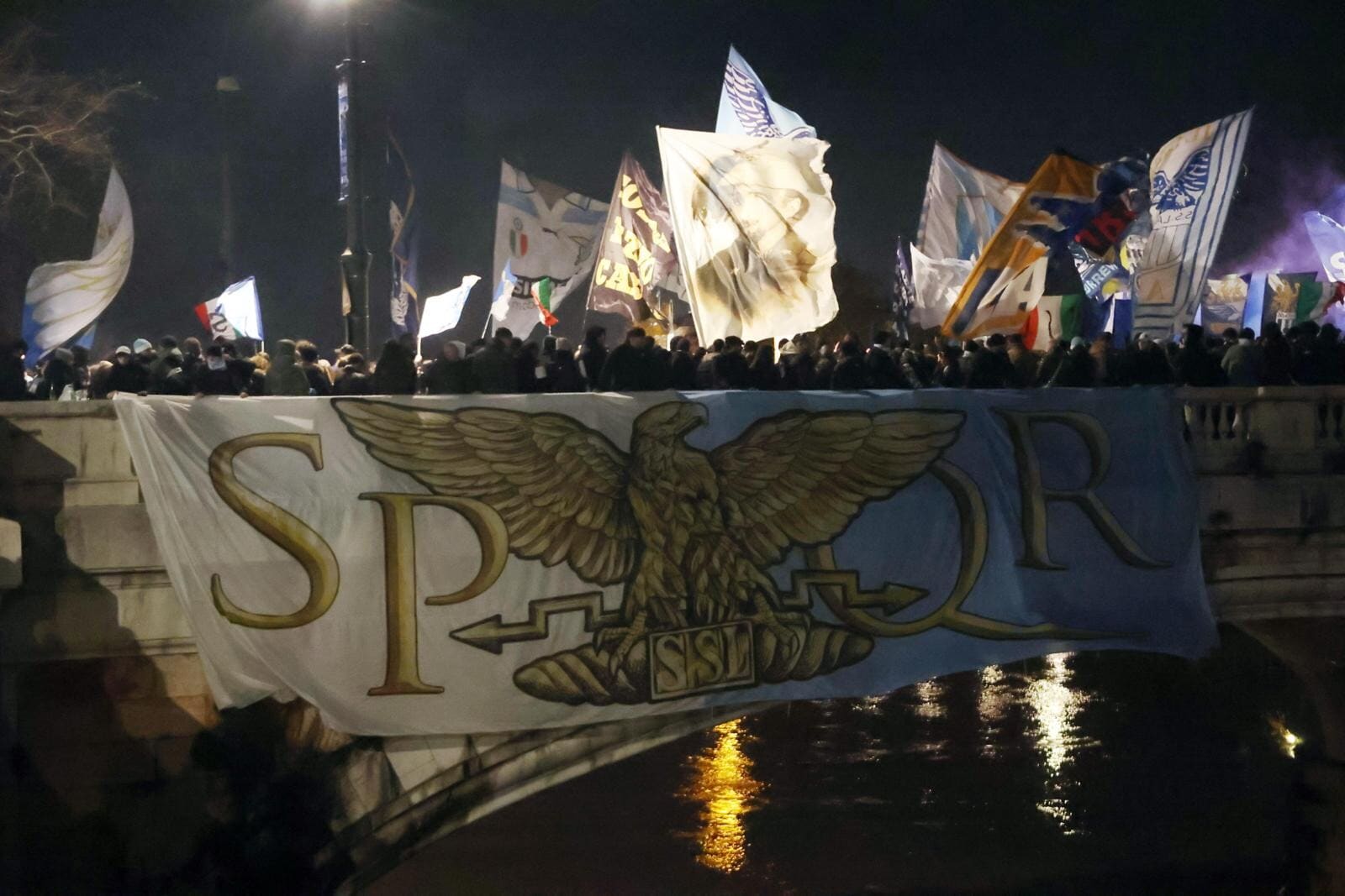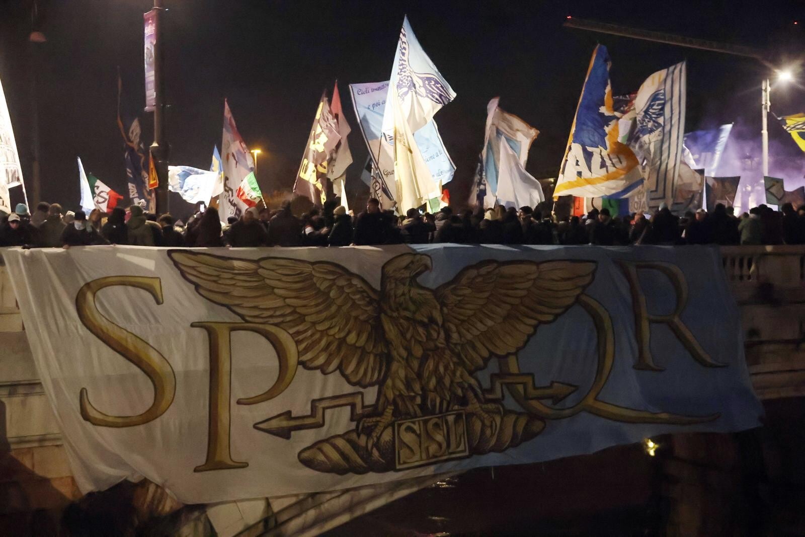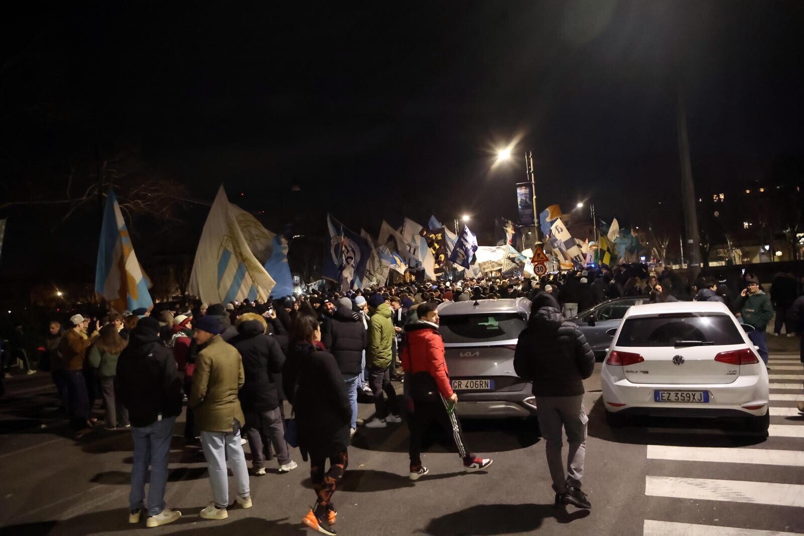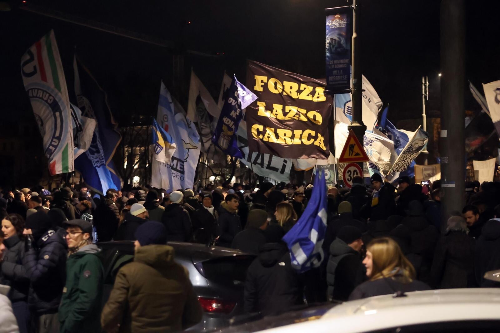 Un tripudio di cori, bandiere e fumogeni accende i festeggiamenti biancocelesti per il compleanno del club, fondato il 9 gennaio del 1900