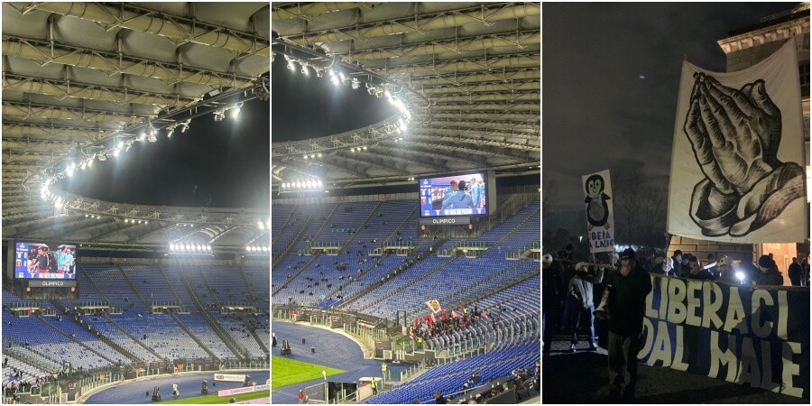 Silenzio che fa rumore, Curva Nord vuota in occasione del match contro il Genoa, protesta a Ponte Milvio. E alcuni media stranieri sottolineano: "Sembra di essere tornati ai tempi del Covid"